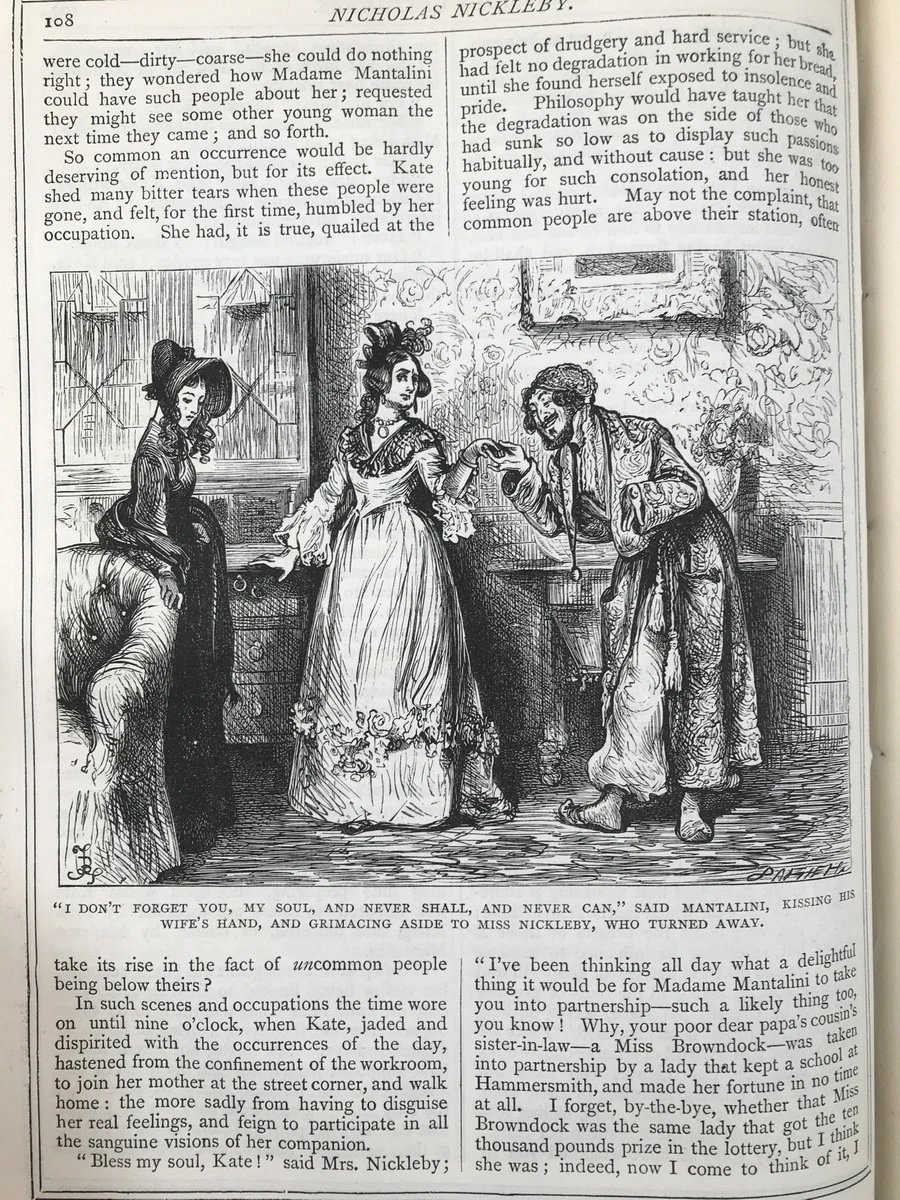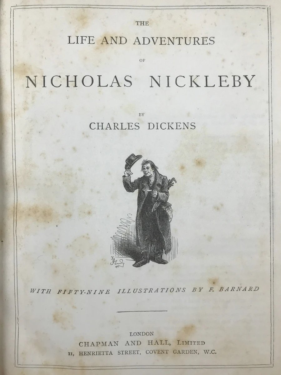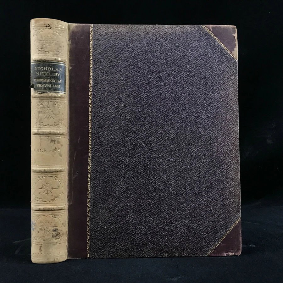 约19世纪后期 狄更斯《尼古拉斯·尼克贝/非商业旅人》 85幅插图(含套色版画) 皮装16开