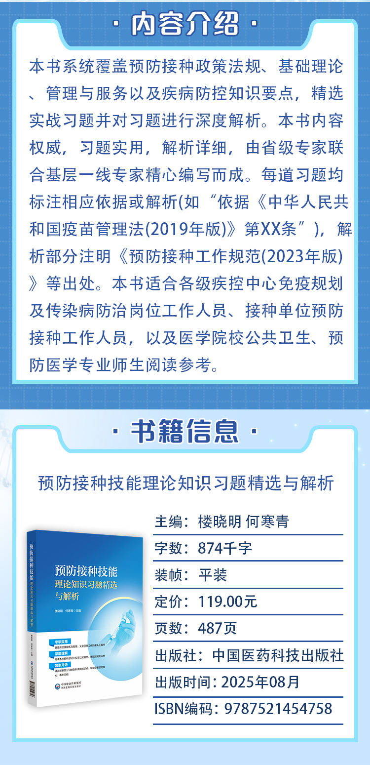 预防接种技能理论知识习题精选与解析 楼晓明 何寒青 适合各级疾控中心免疫规划及传染病防治岗位等工作人员 中国医药科技出版社