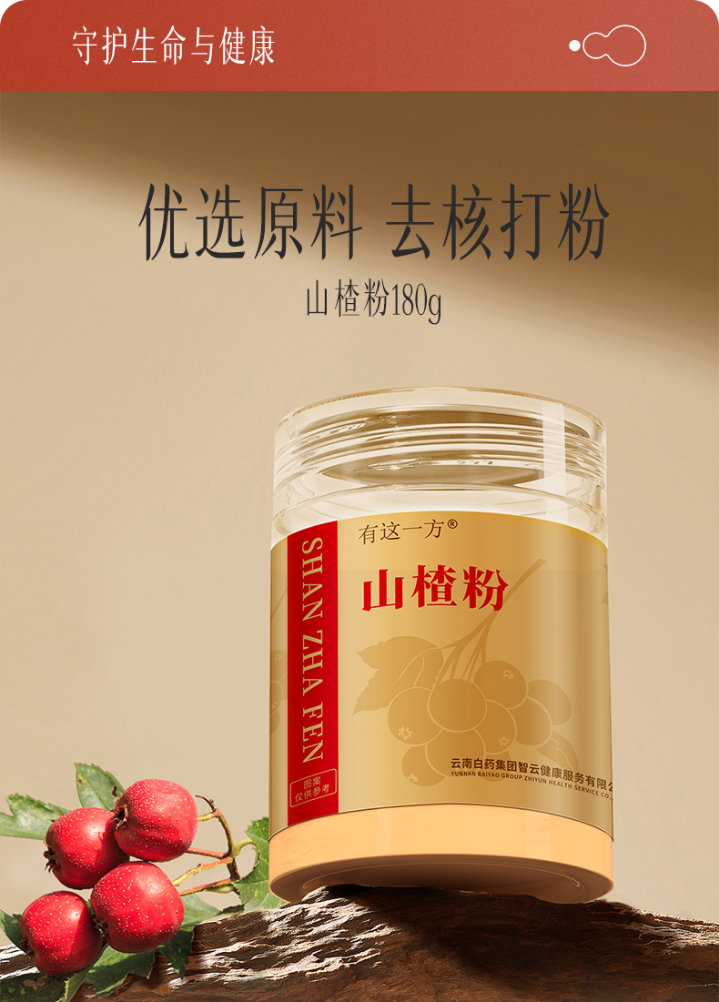 【官方正品】云南白药有这一方山楂粉180g纯山楂打粉中药材搭配三七丹参健胃消食行气散於