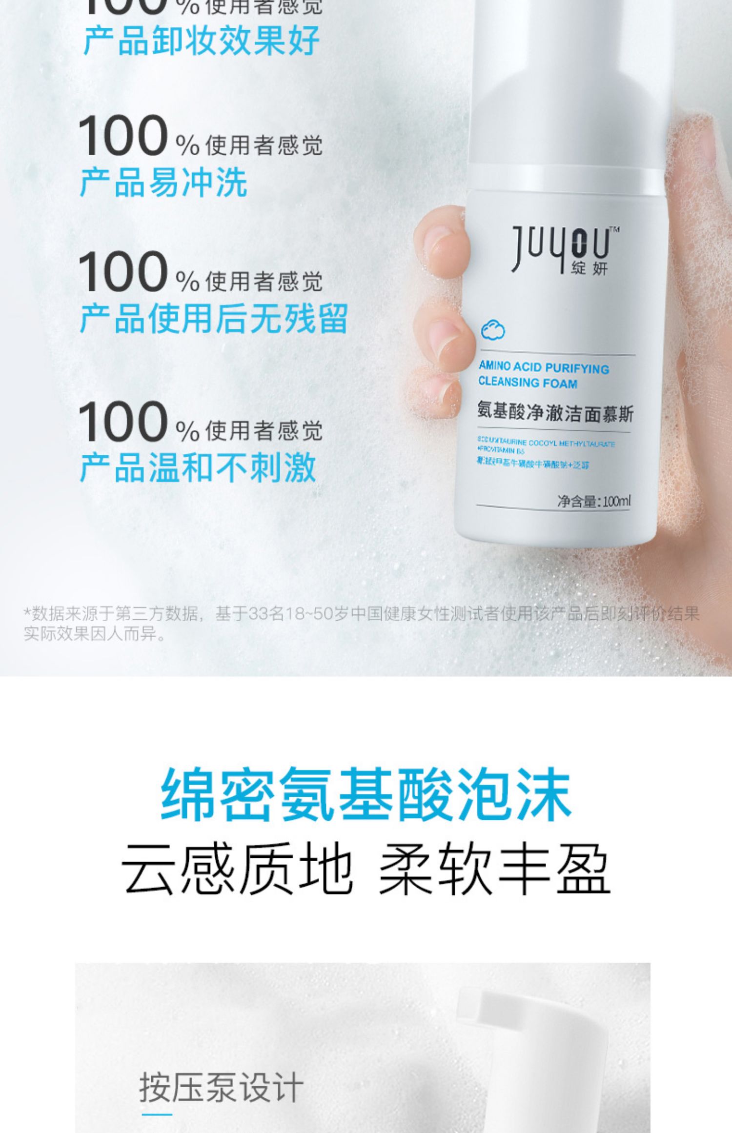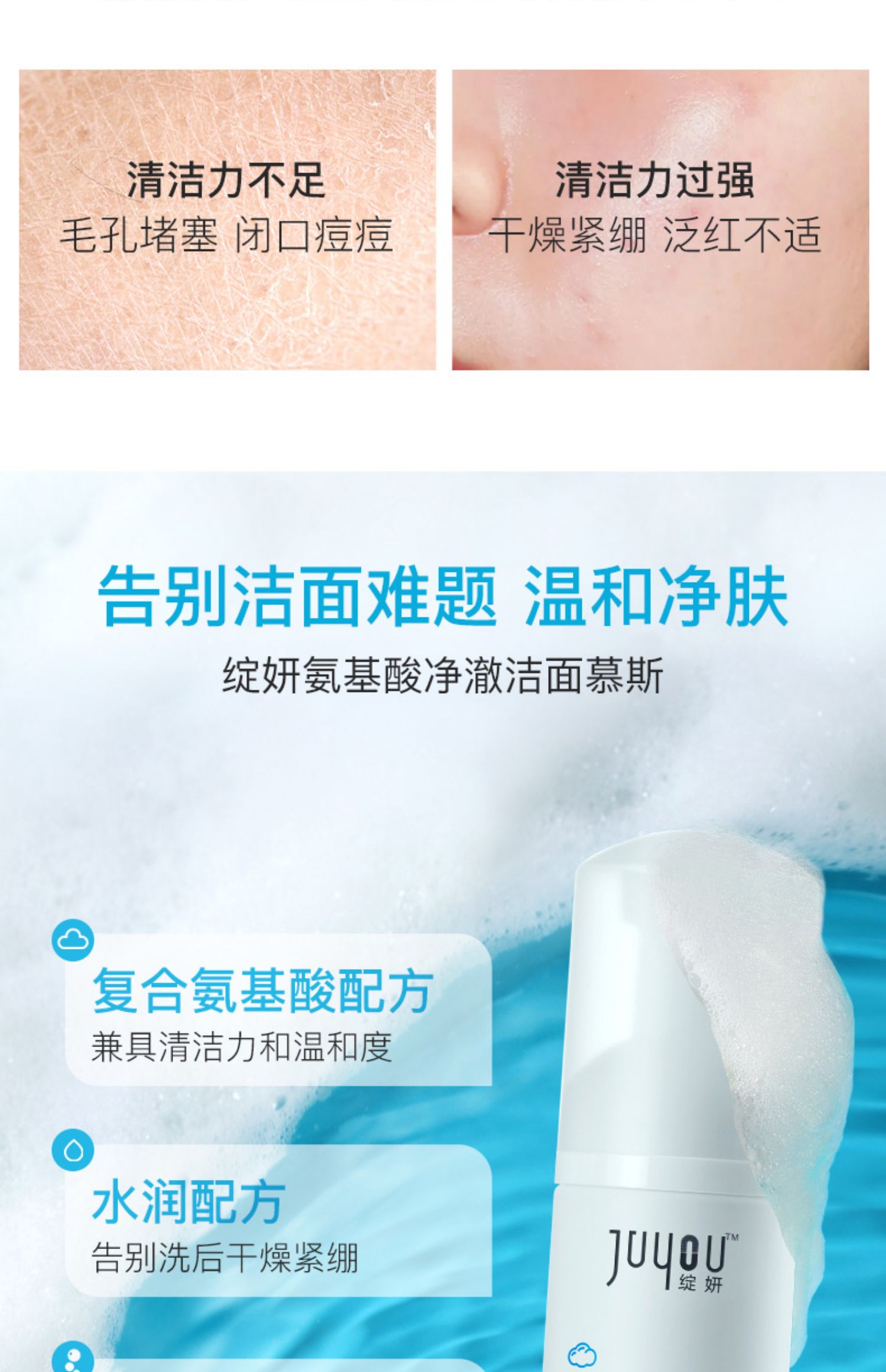 【YZ】绽妍洗面奶 氨基酸温和洁面泡沫肌洁面乳100ml 油皮干皮清洁