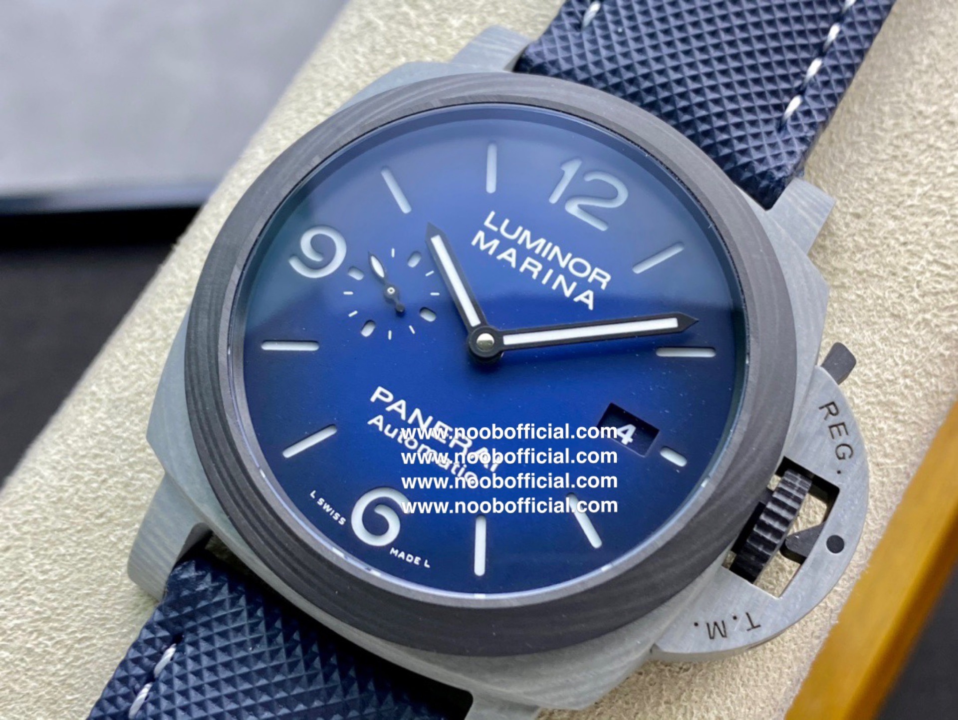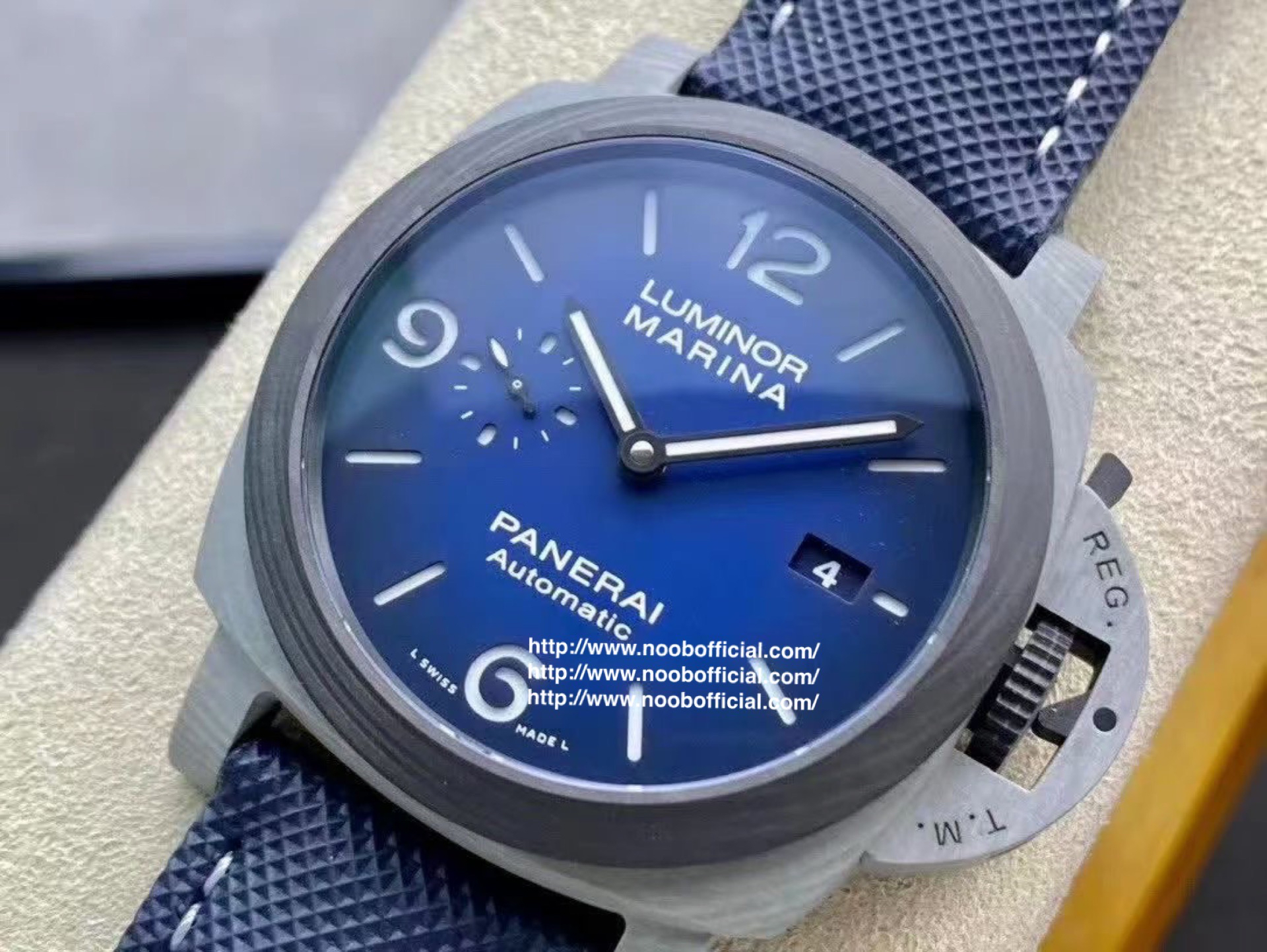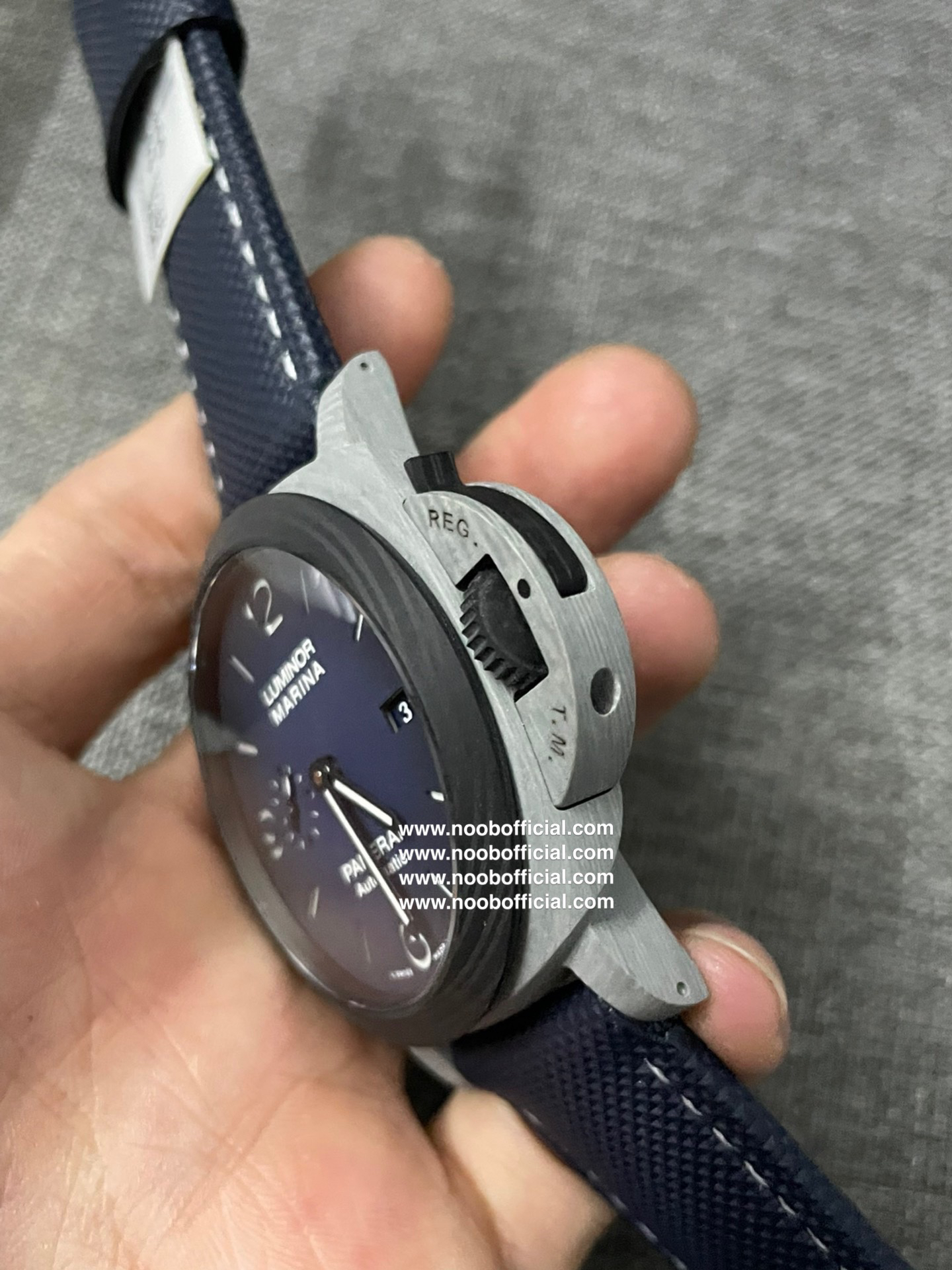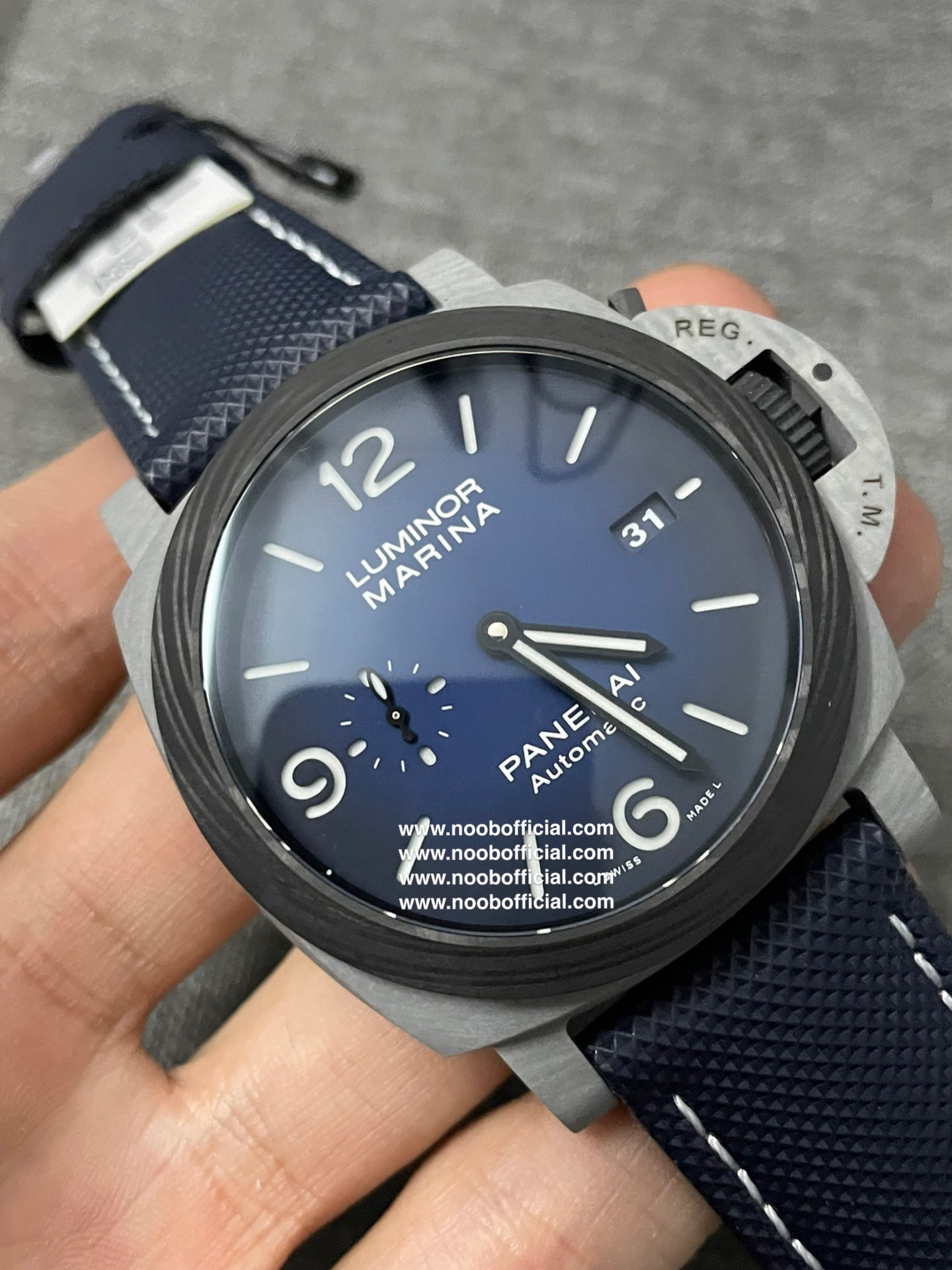 VS沛na海pam1663,44mm碳纤维横纹质地表壳,渐变“烟熏蓝”面盘,男士腕表,尼龙表带,自动机械机芯密底,整个手表基于正品original原版开模的super copy版本,做工精细打磨精良❕