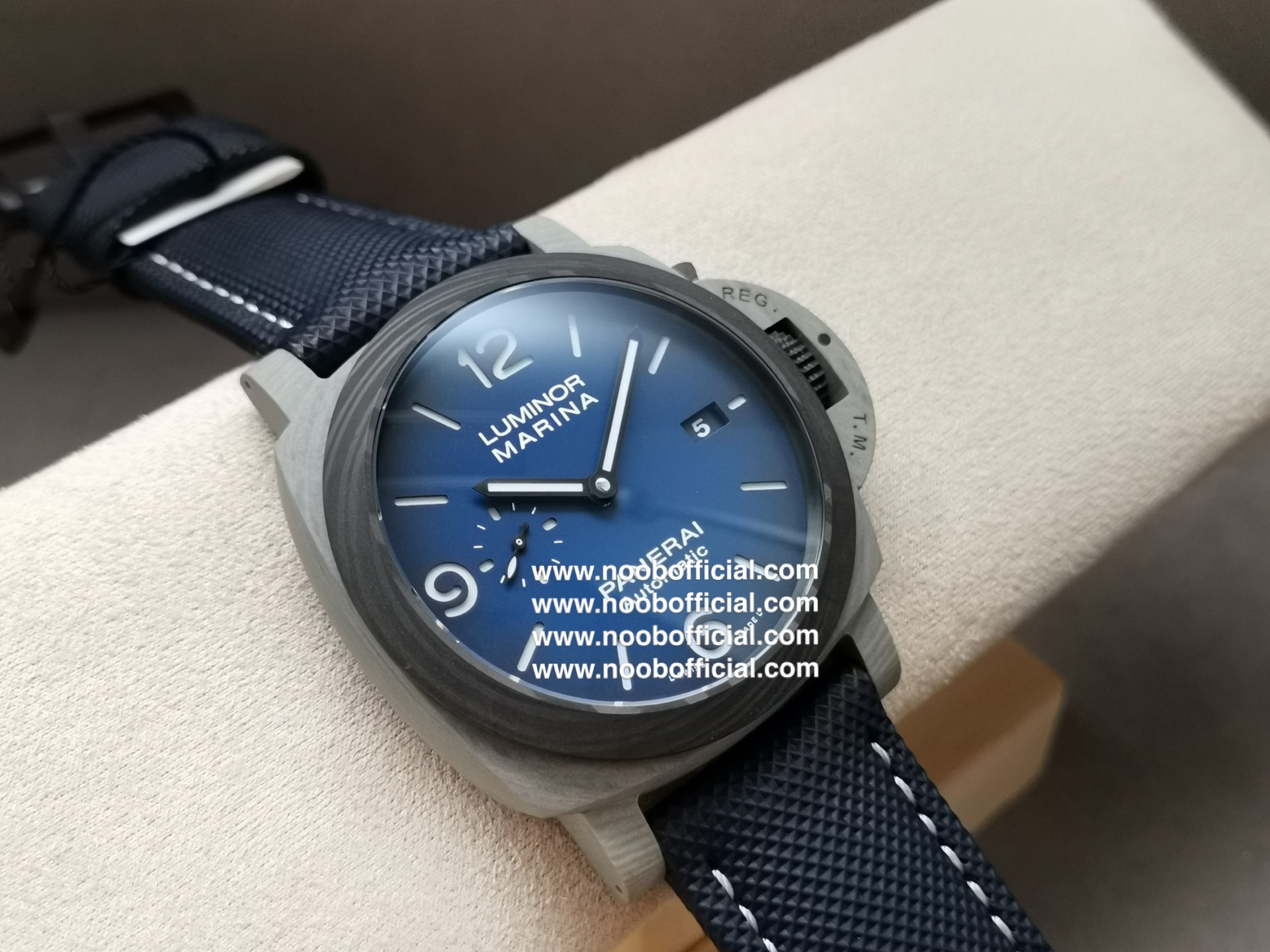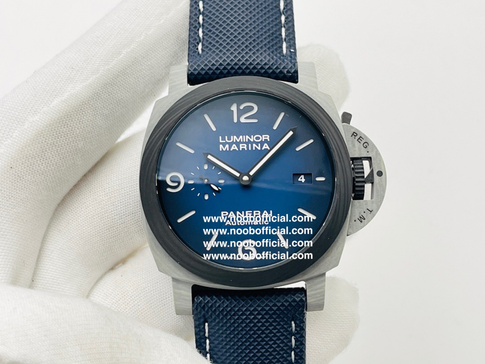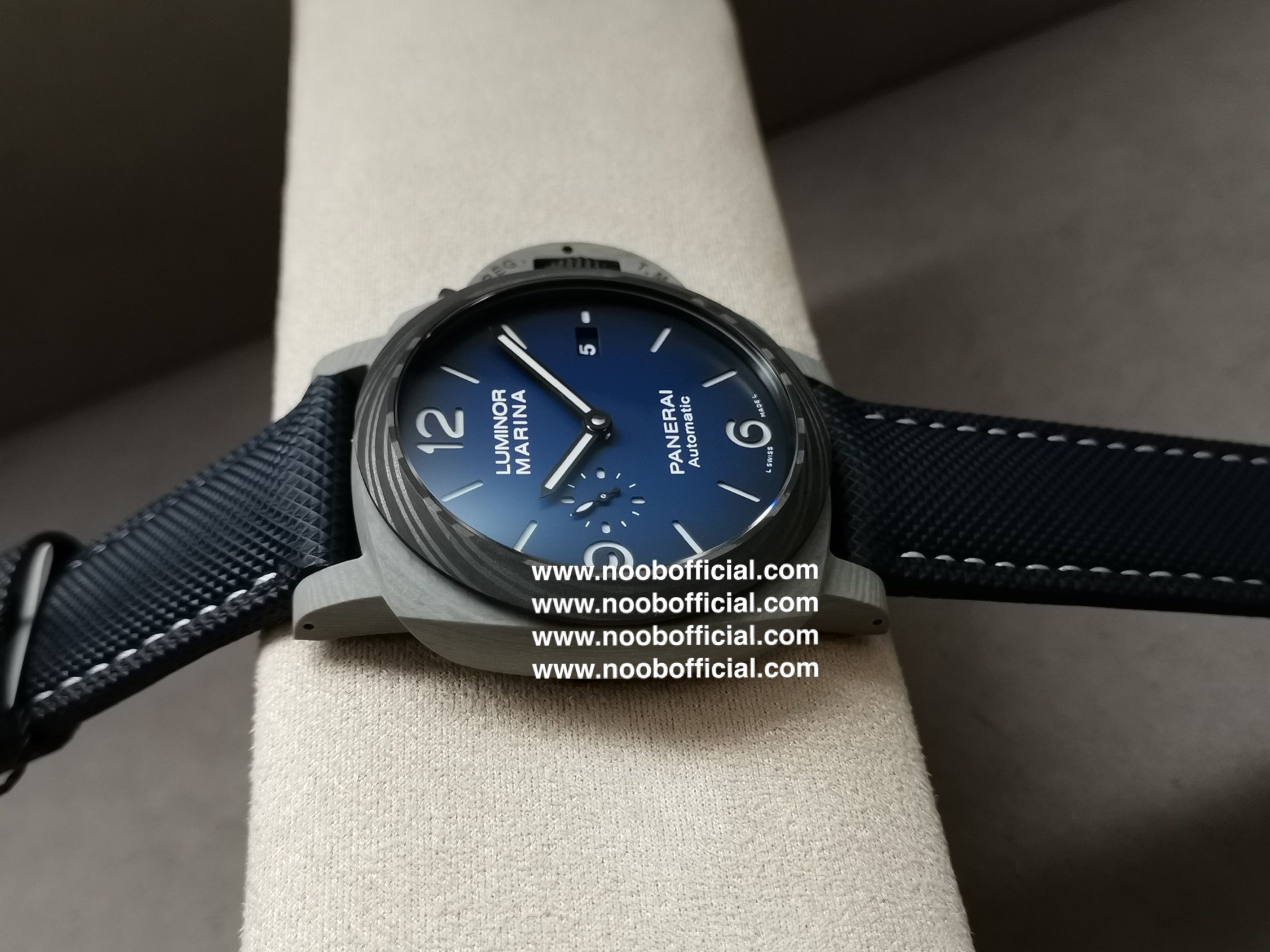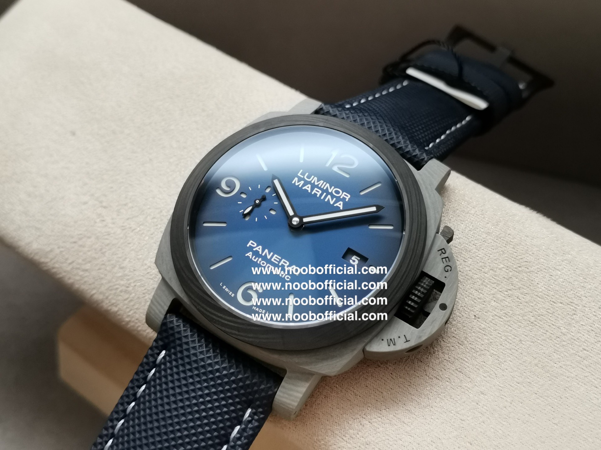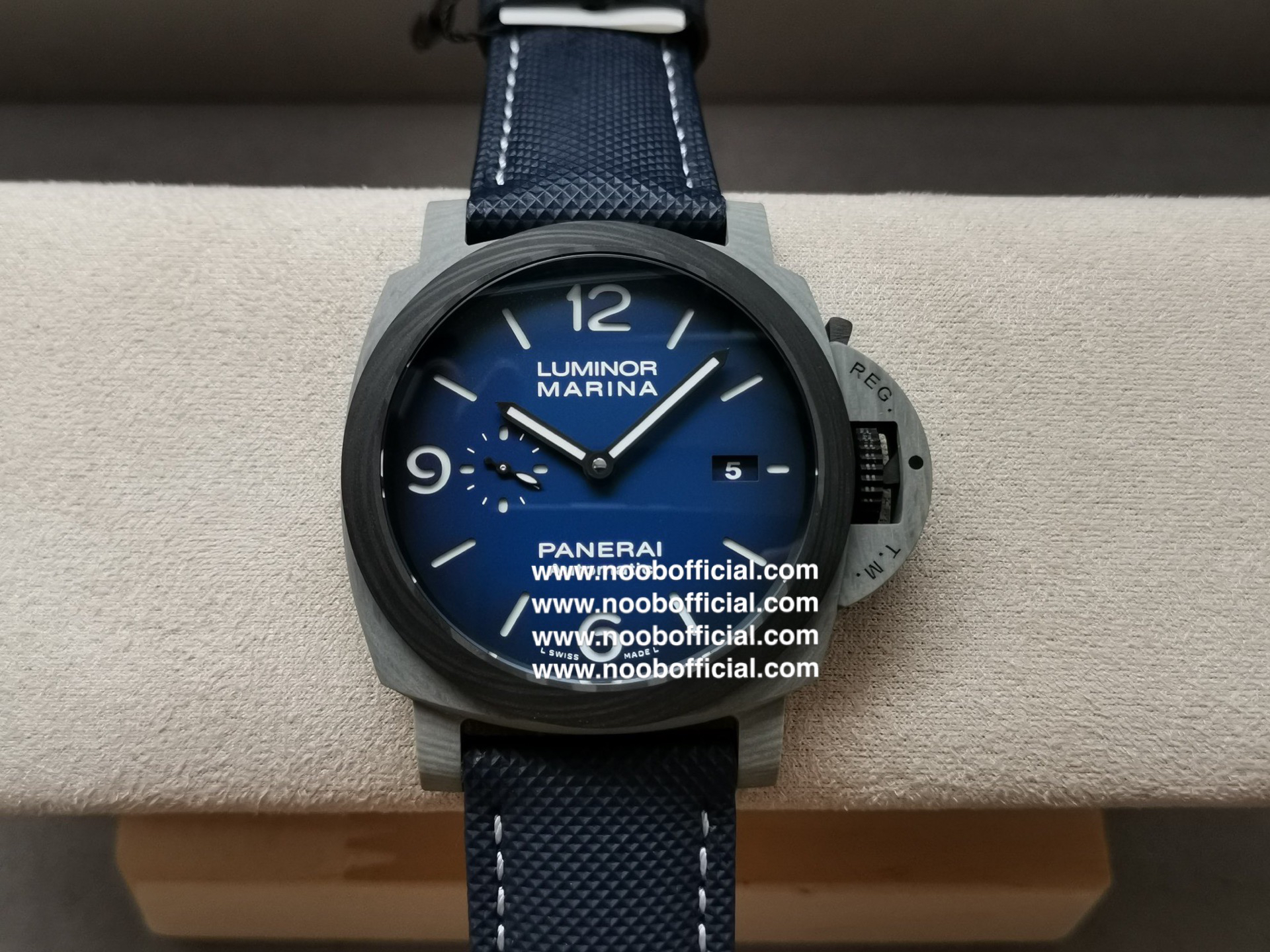VS沛na海pam1663,44mm碳纤维横纹质地表壳,渐变“烟熏蓝”面盘,男士腕表,尼龙表带,自动机械机芯密底,整个手表基于正品original原版开模的super copy版本,做工精细打磨精良❕