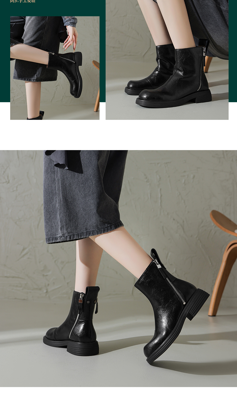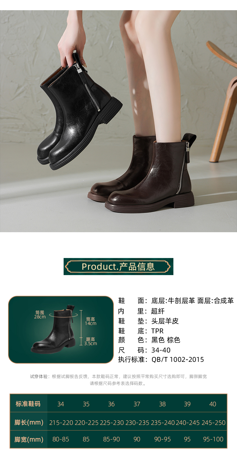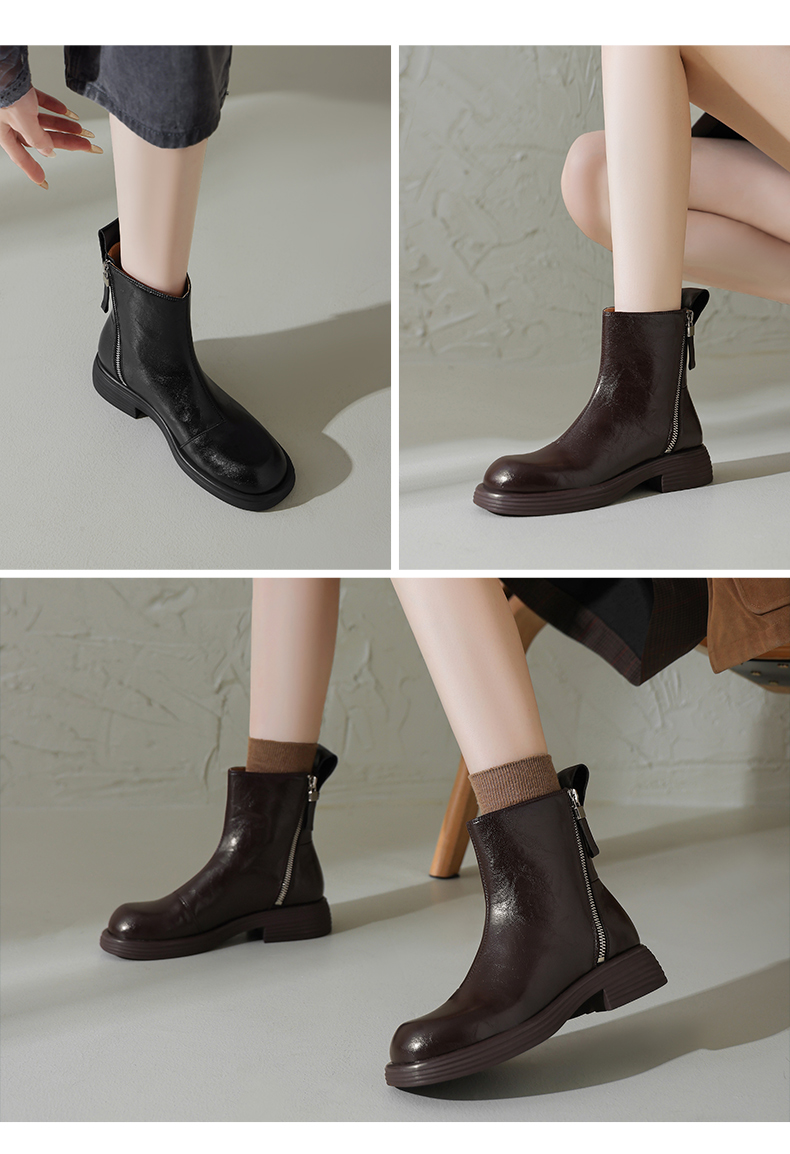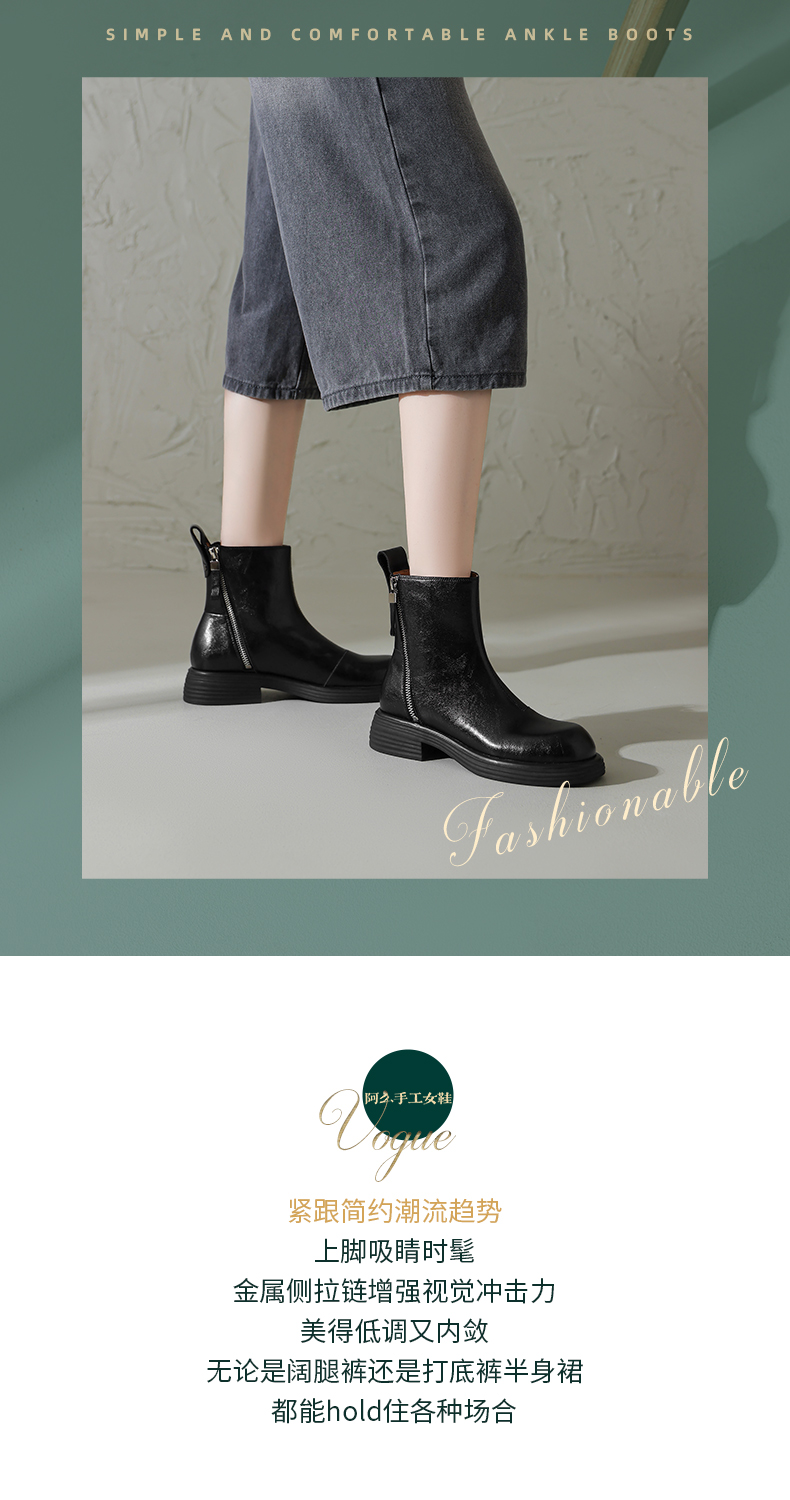 阿么手工女鞋低筒休闲短靴秋冬英伦风2025新款圆头时装靴女3.5CM