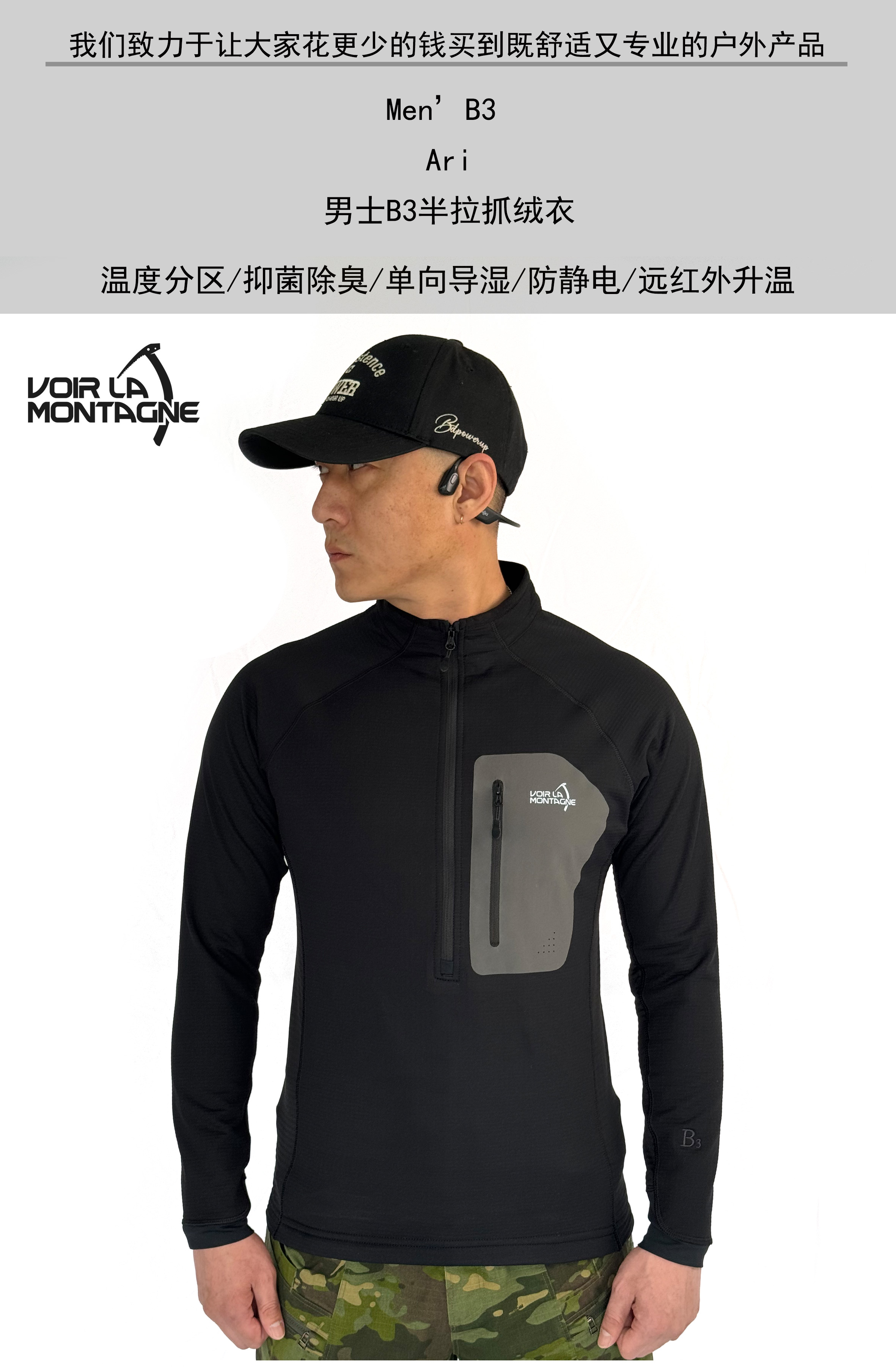 【终身保修】Voir La Montagne见山 男士B3半拉链套头保暖抓绒衣2.0排汗透气
