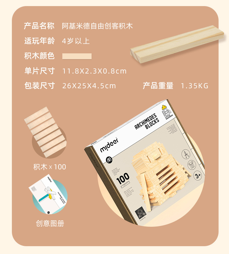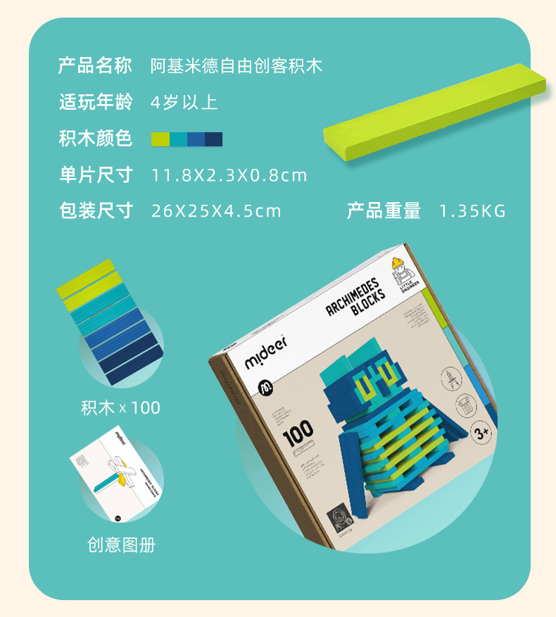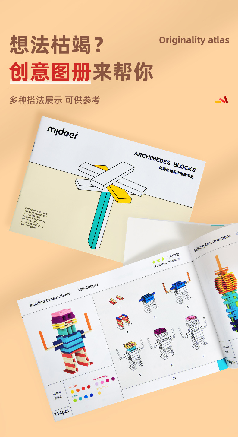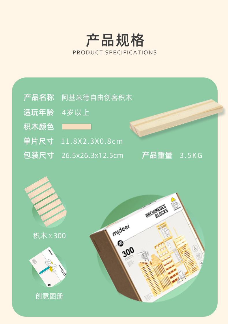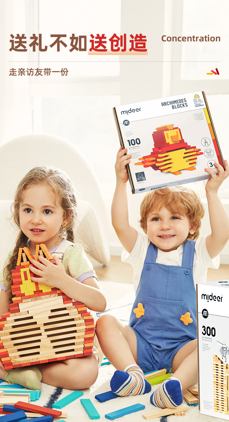 mideer弥鹿积木300片儿童拼插阿基米德积木玩具stem木质叠叠乐3+