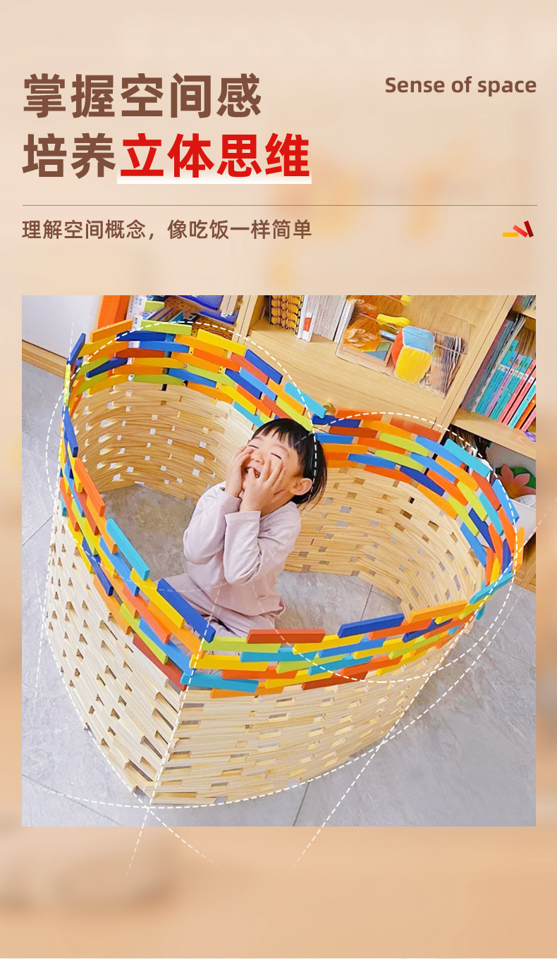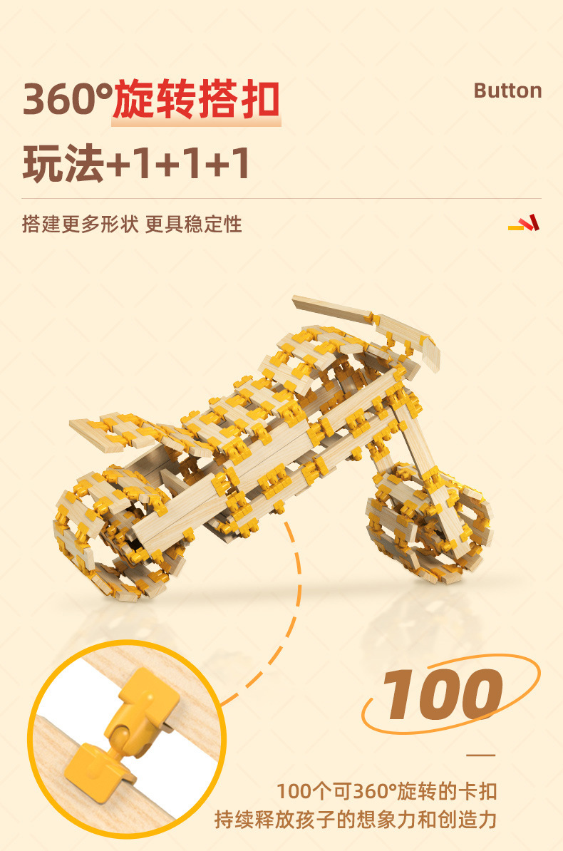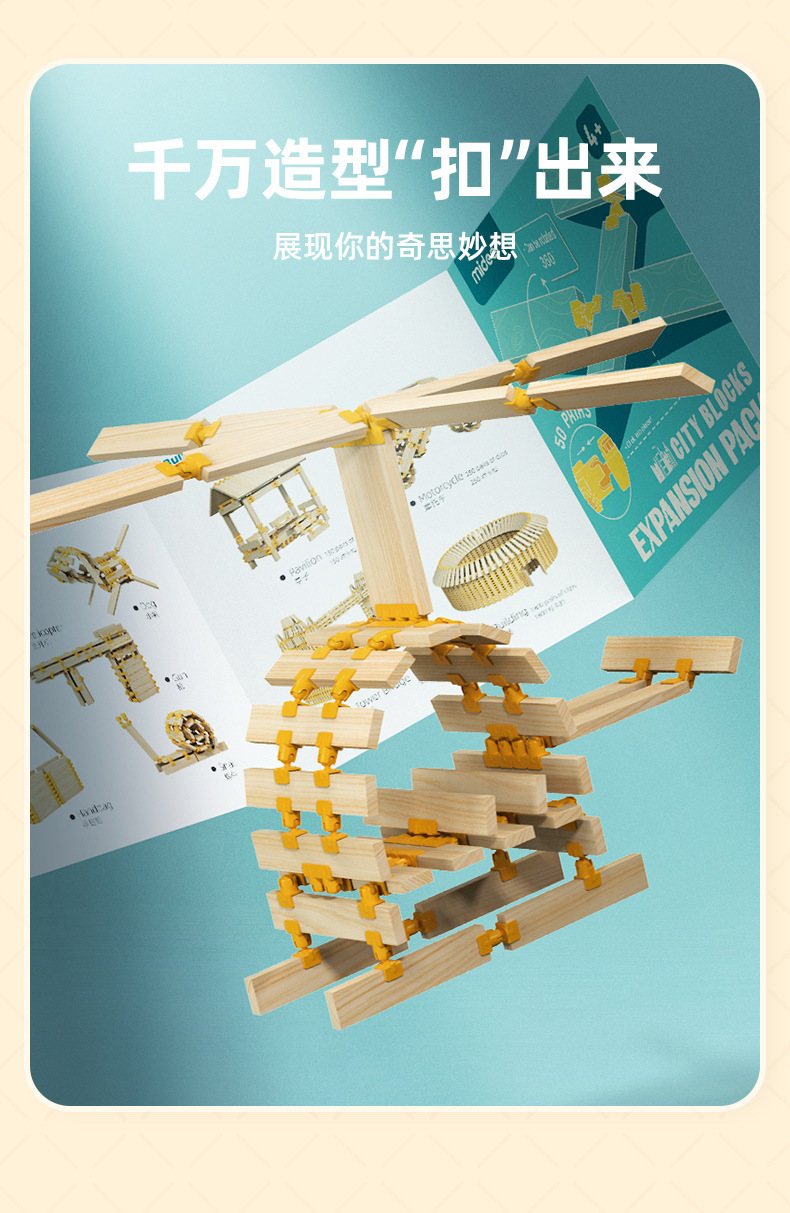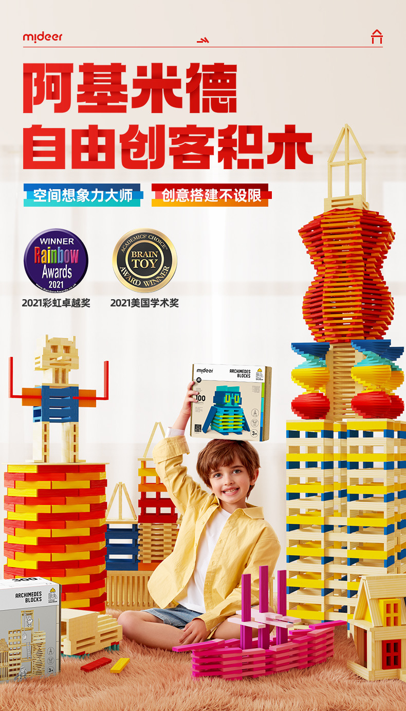 mideer弥鹿积木300片儿童拼插阿基米德积木玩具stem木质叠叠乐3+