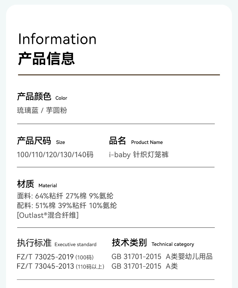 【秒杀】ibaby×outlast太空科技恒温儿童夏季春夏防叮咬针织灯笼裤【组合商品 不支持单退】