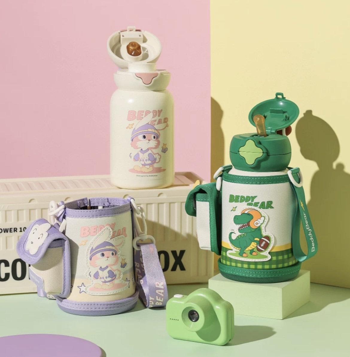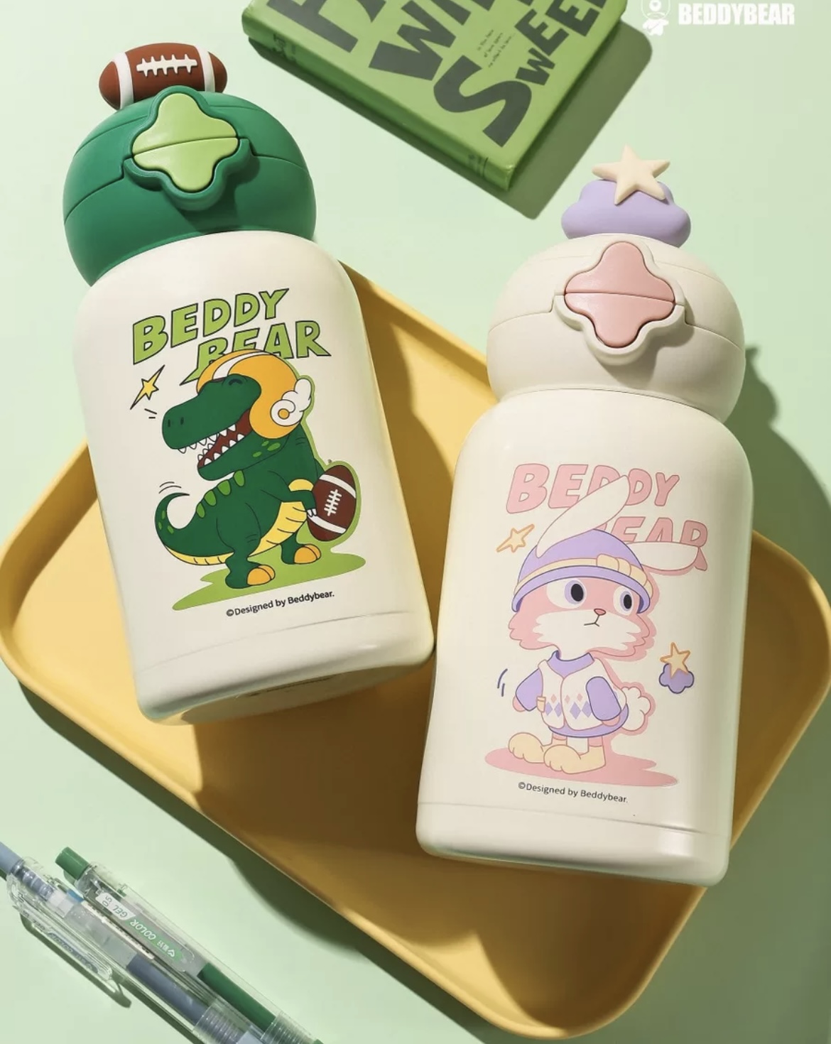 【品牌直发】【杯具熊星辰双饮杯保温杯】吸管直饮双饮杯600ml 儿童上学大容量便携水壶316不锈钢