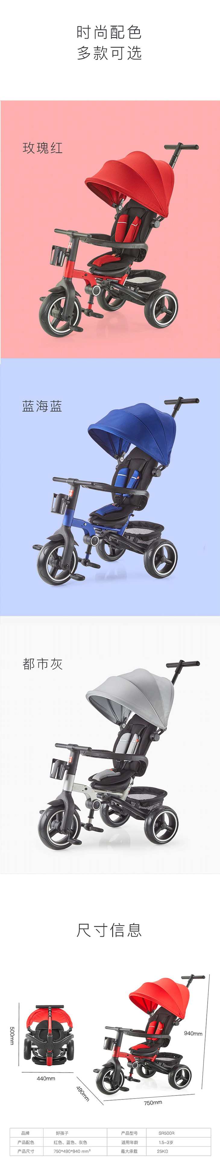 好孩子红色推骑两用儿童三轮车SR500R-G002RJPY带授权招加盟代理