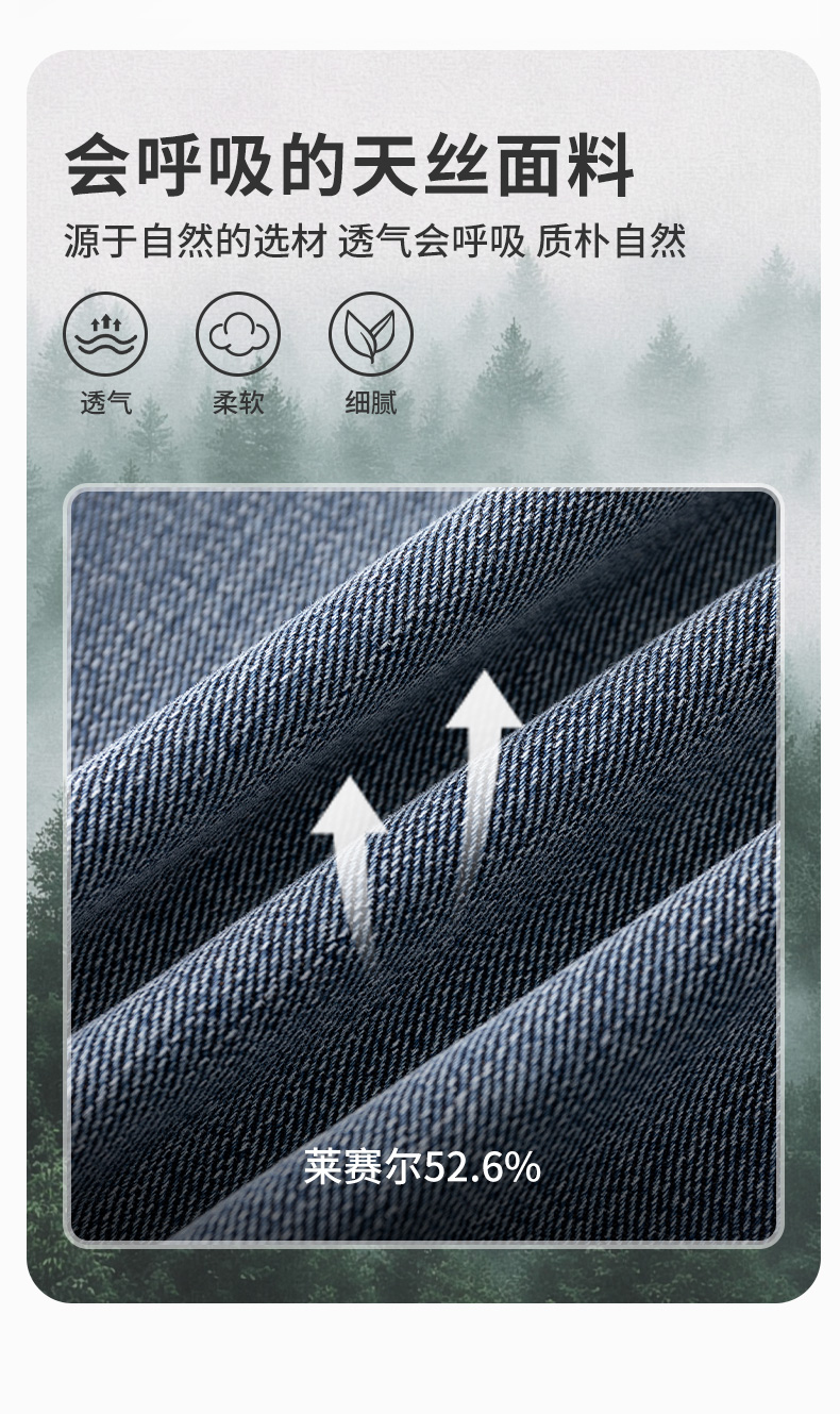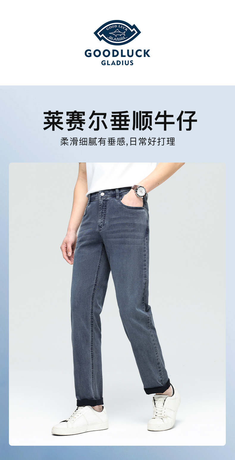 【莱赛尔】德鲨鲨鱼男装直筒牛仔裤2026春夏新款舒适休闲弹力长裤