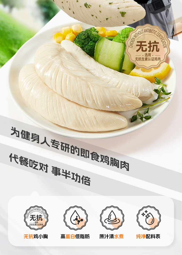 【满减专区】新品无抗生素低脂水煮鸡胸40g
