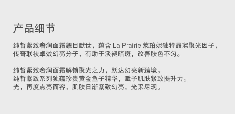 La prairie/莱伯妮LP 白鱼子酱眼霜/美白面霜/精华水!白到发光