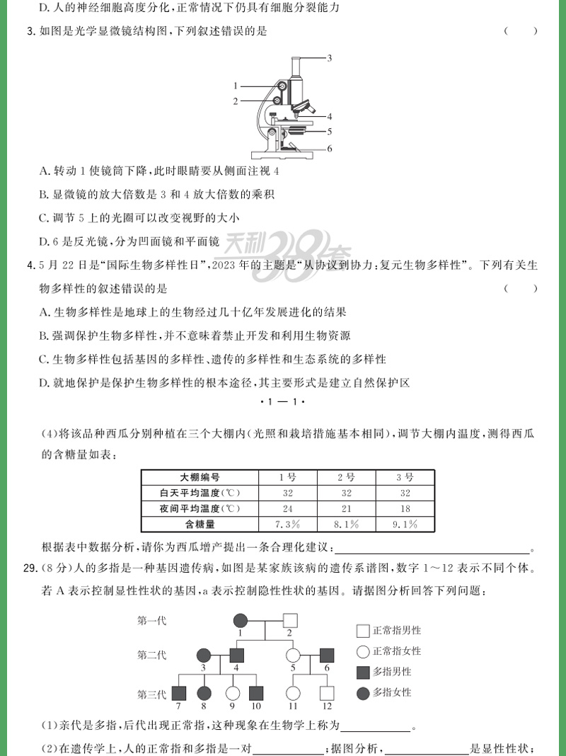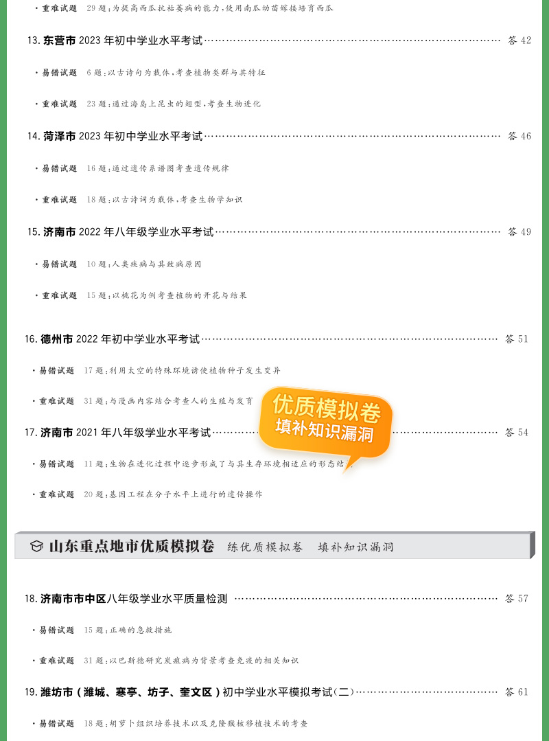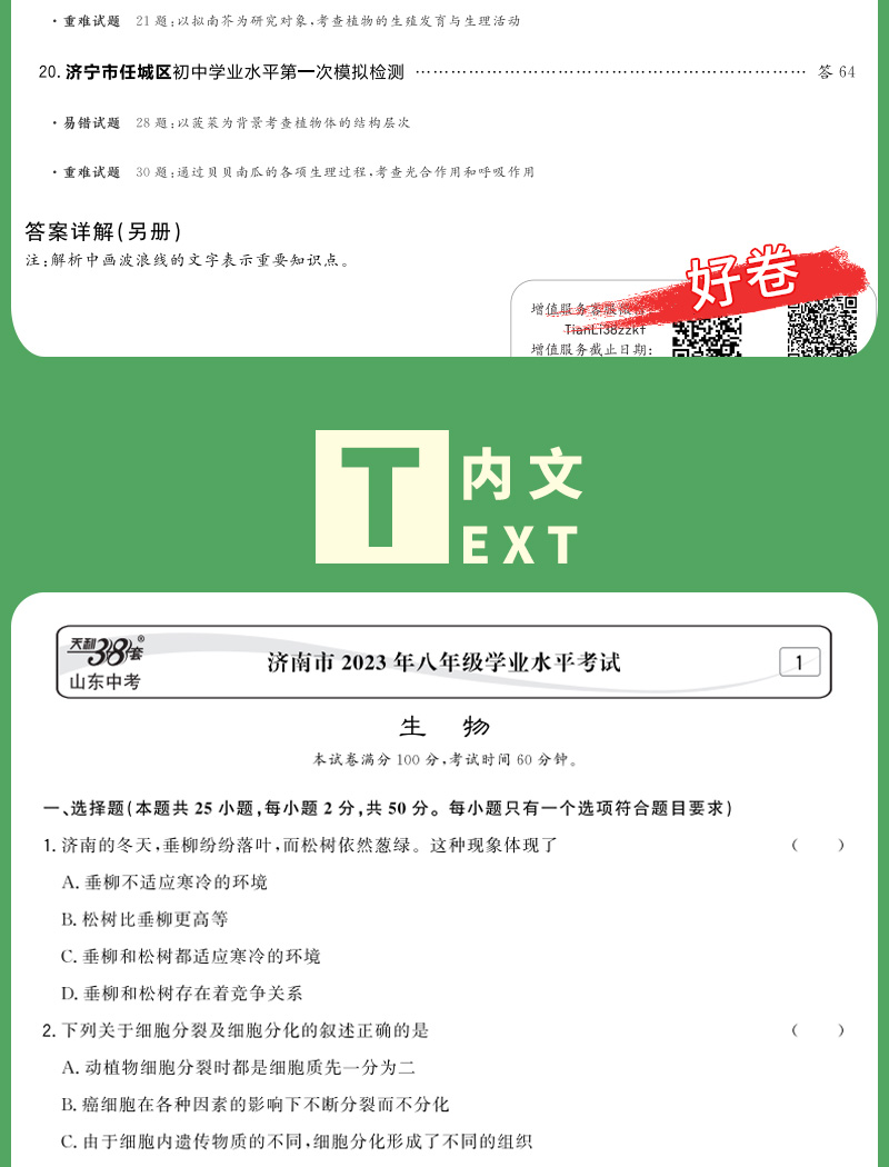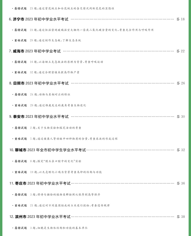天利38套 2024山东中考试题精选生物+地理