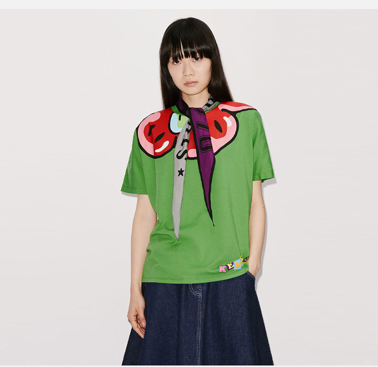 KENZO 高田贤三 女士棉质博克花卉徽标印花圆领短袖T恤 绿色 FD52 TS022 4SG 57