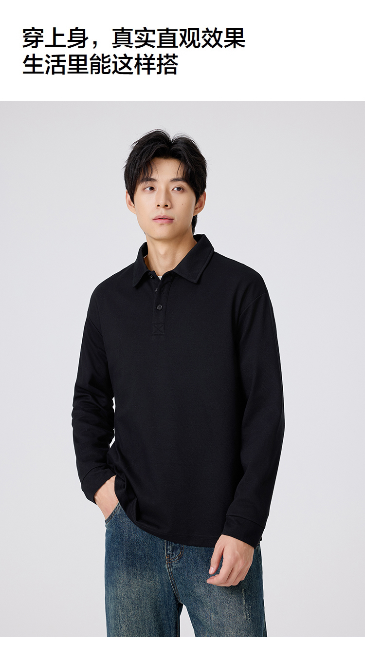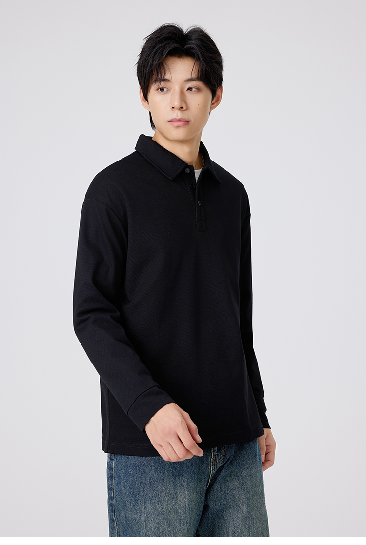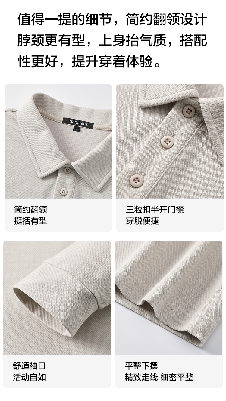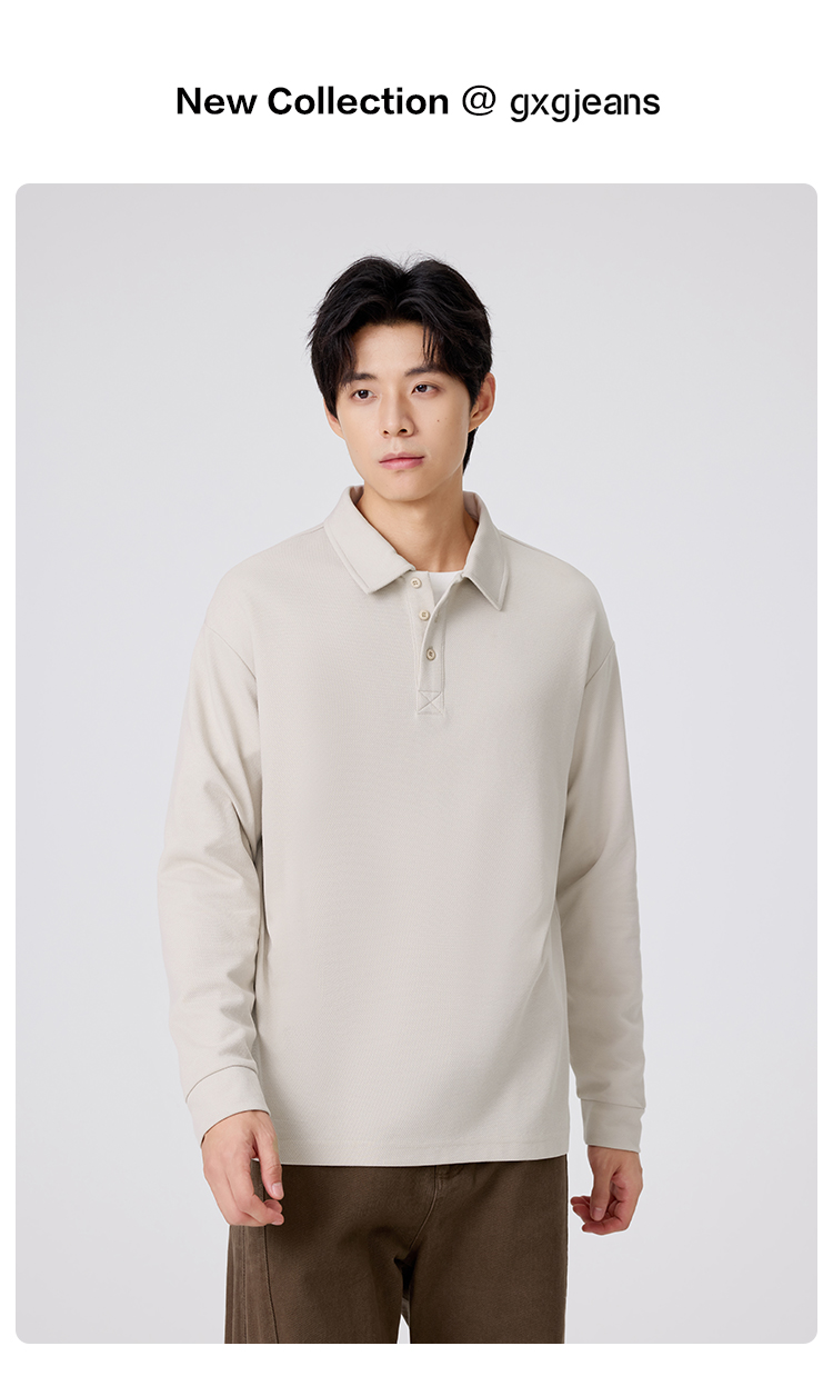 gxgjeans 男装男士长袖POLO衫25秋款纯色百搭校园通勤青少年打底衫上衣K&C