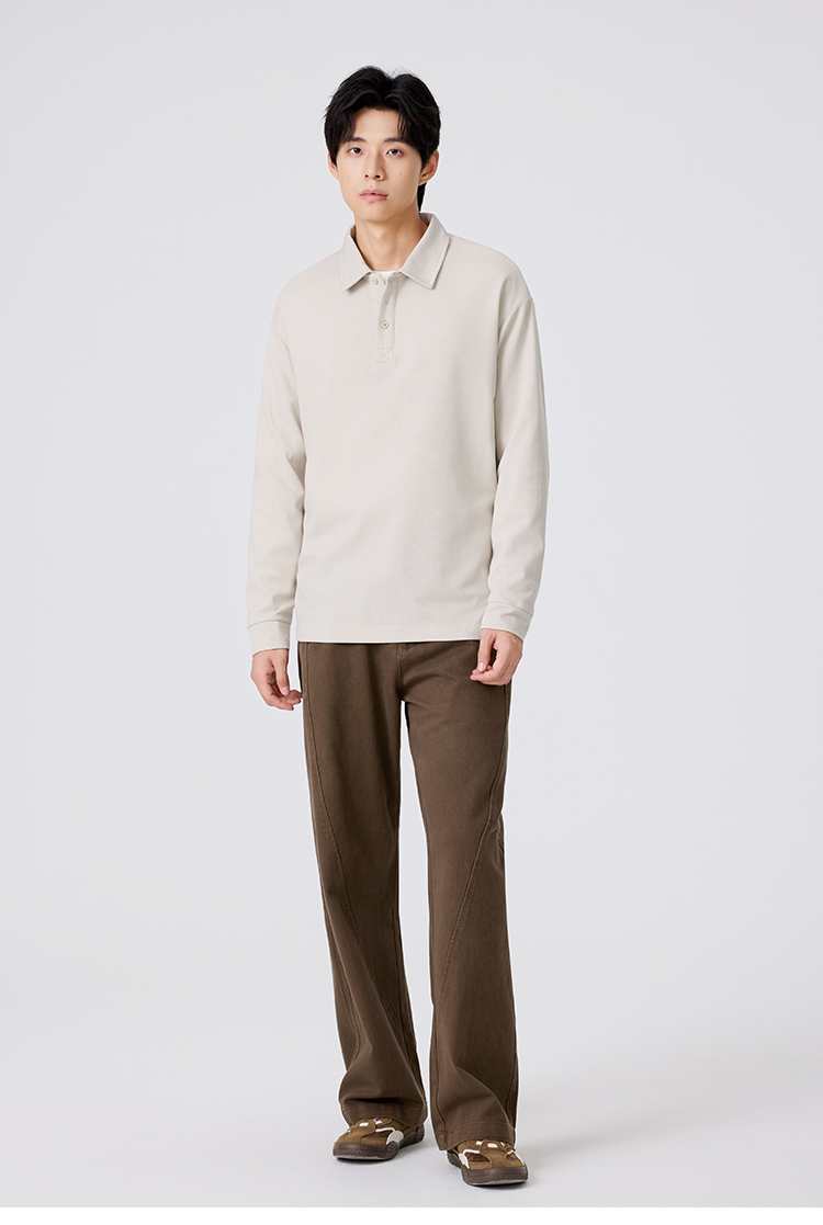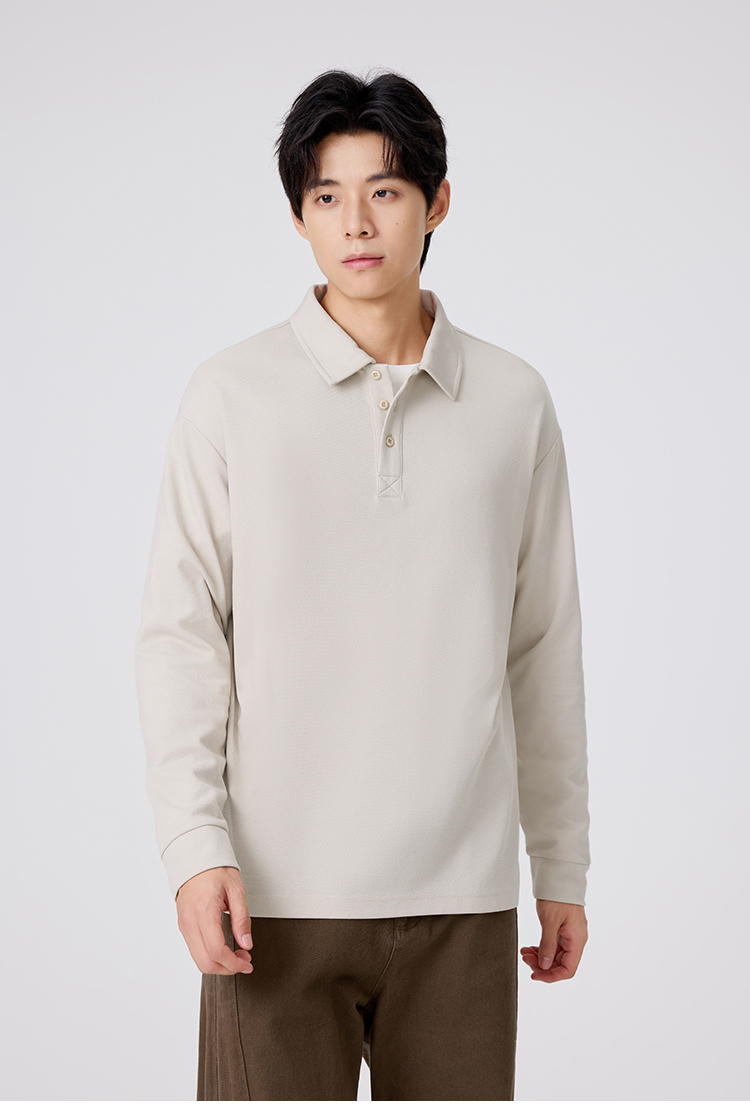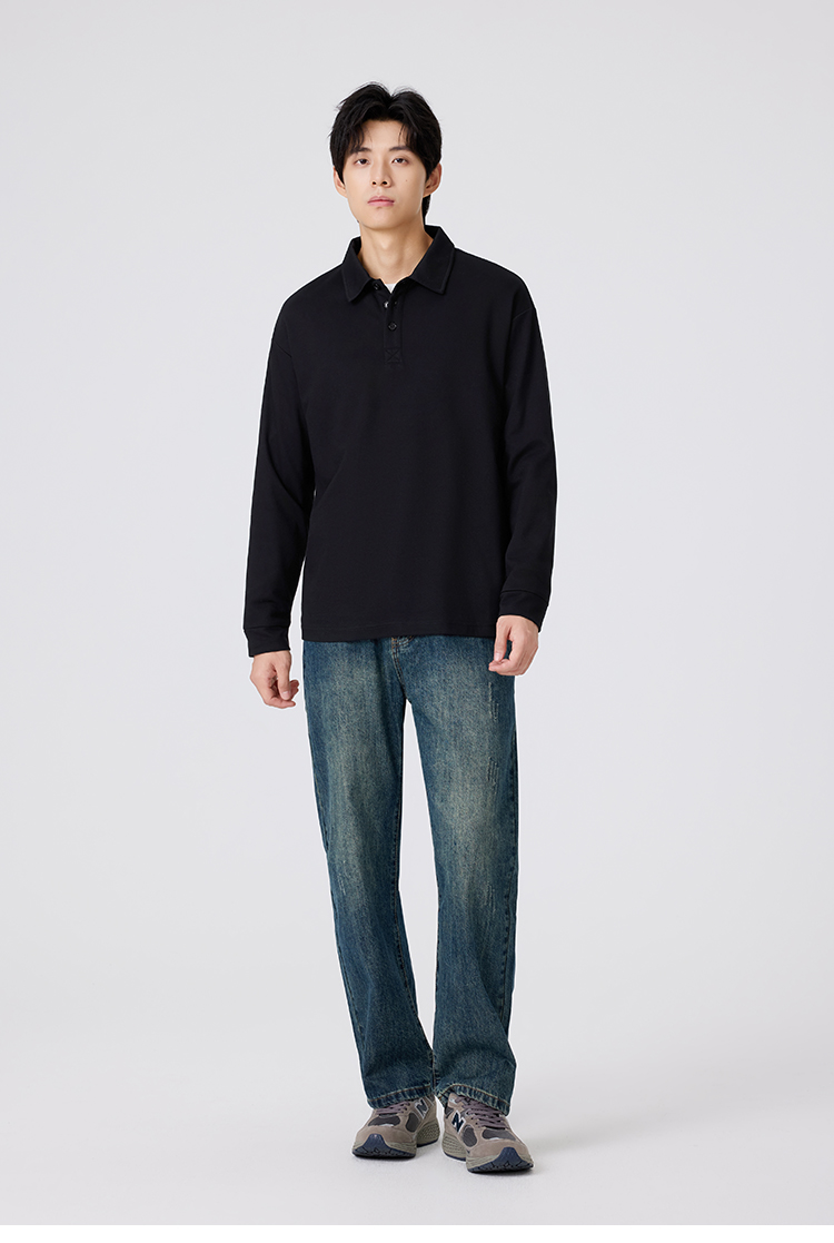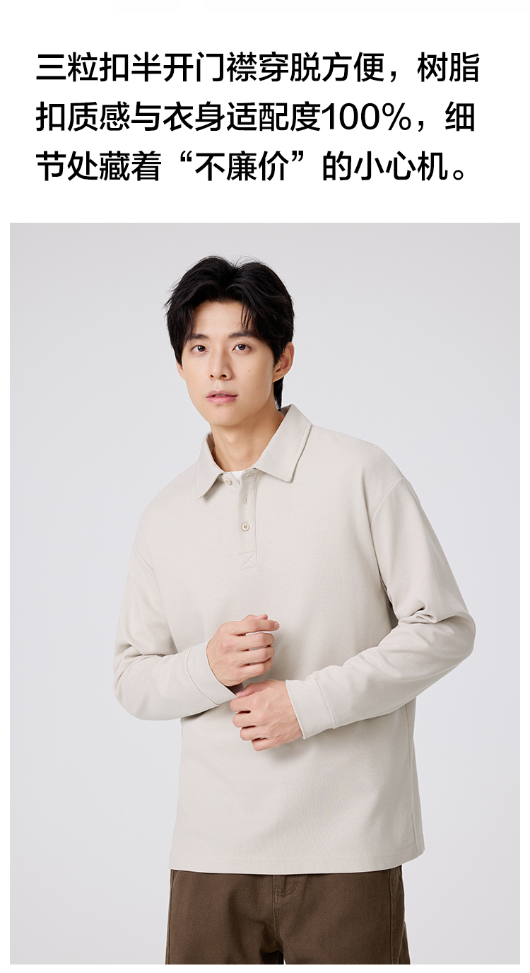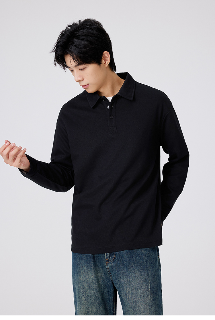 gxgjeans 男装男士长袖POLO衫25秋款纯色百搭校园通勤青少年打底衫上衣K&C