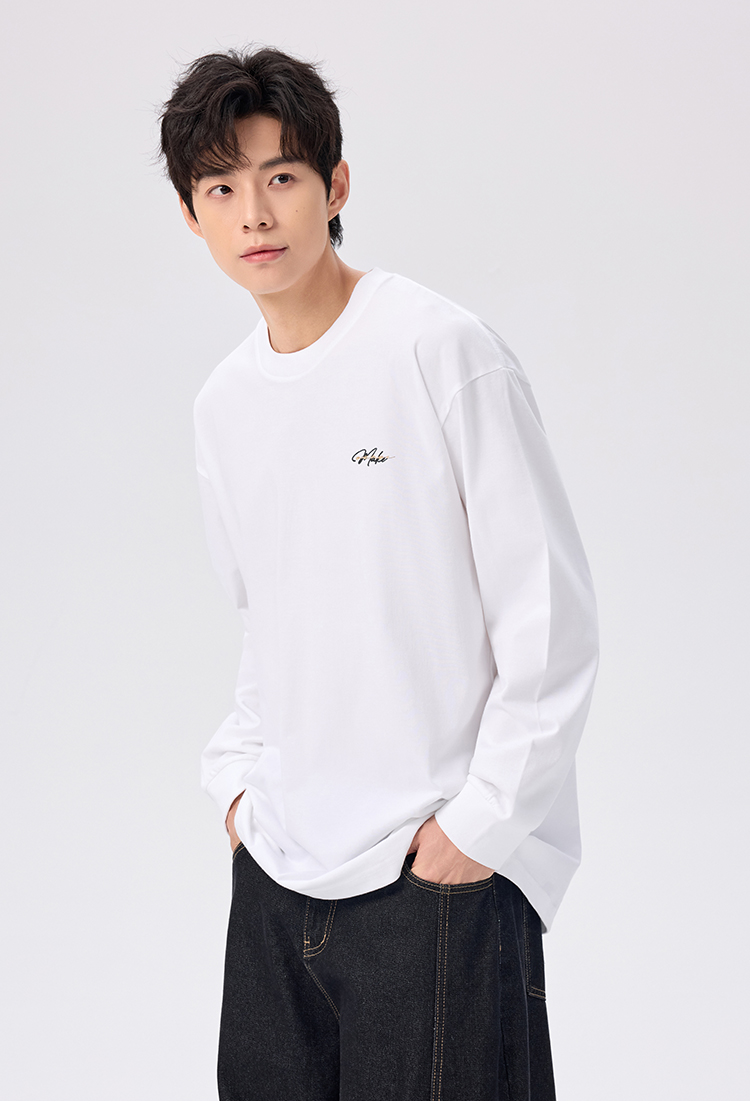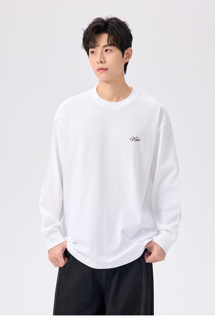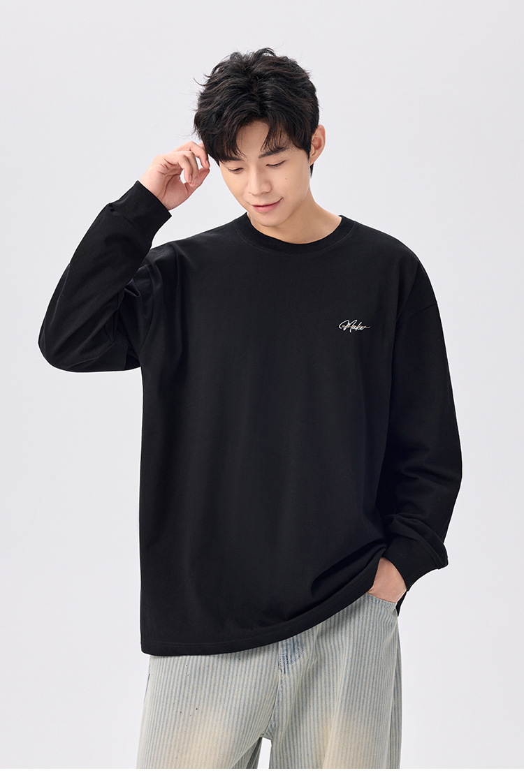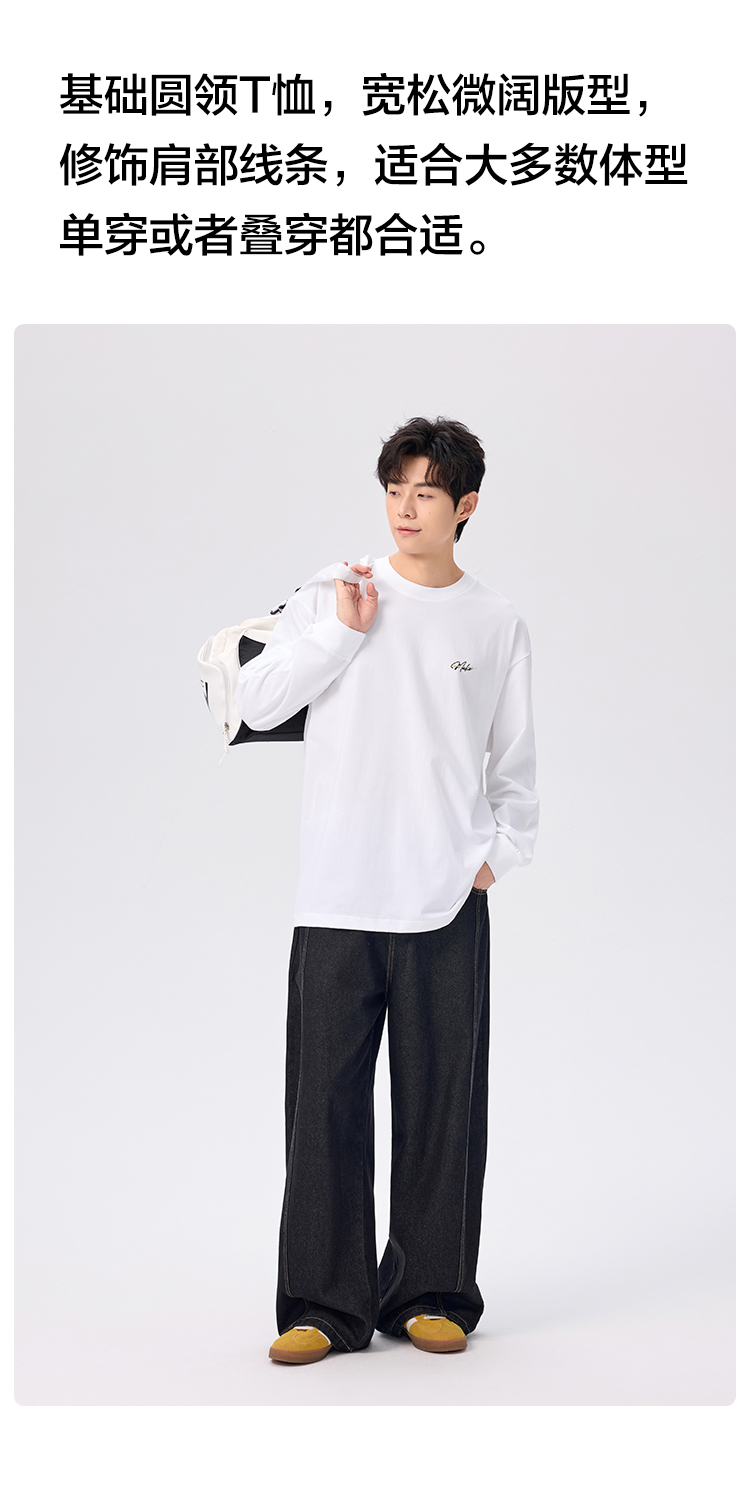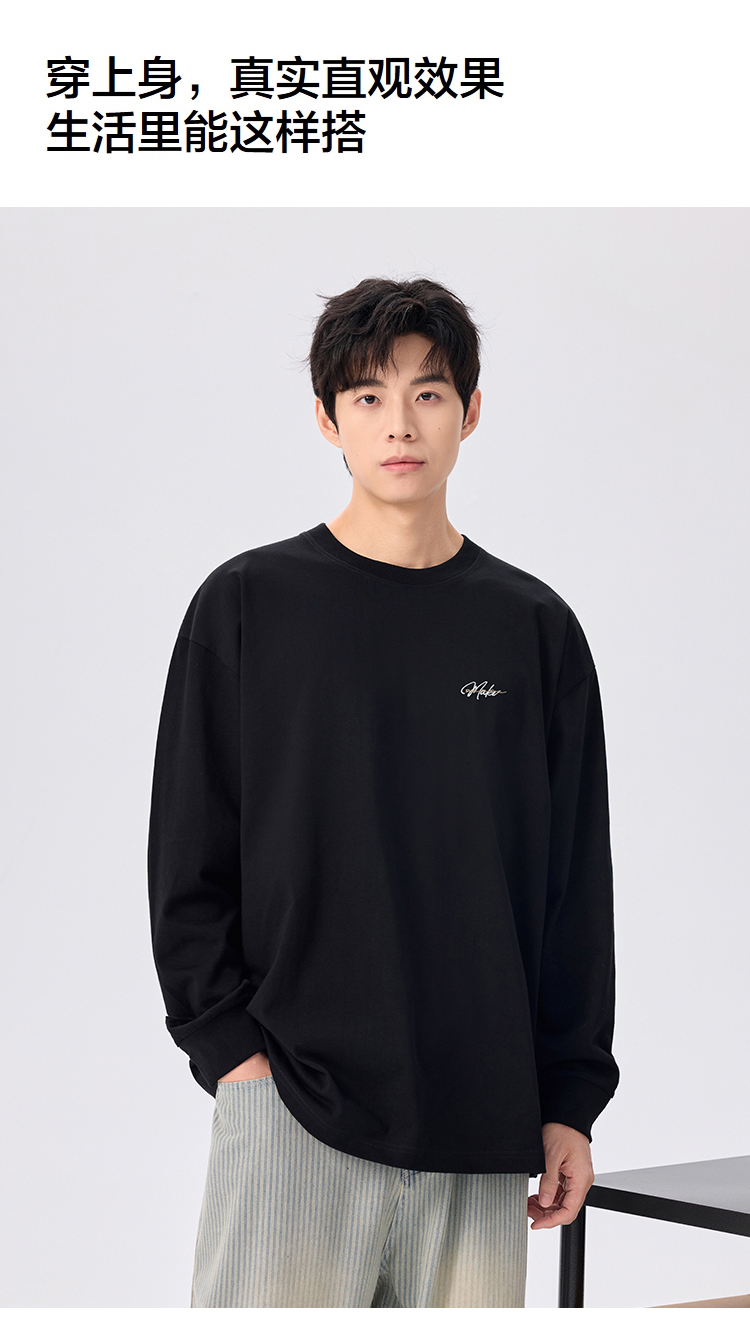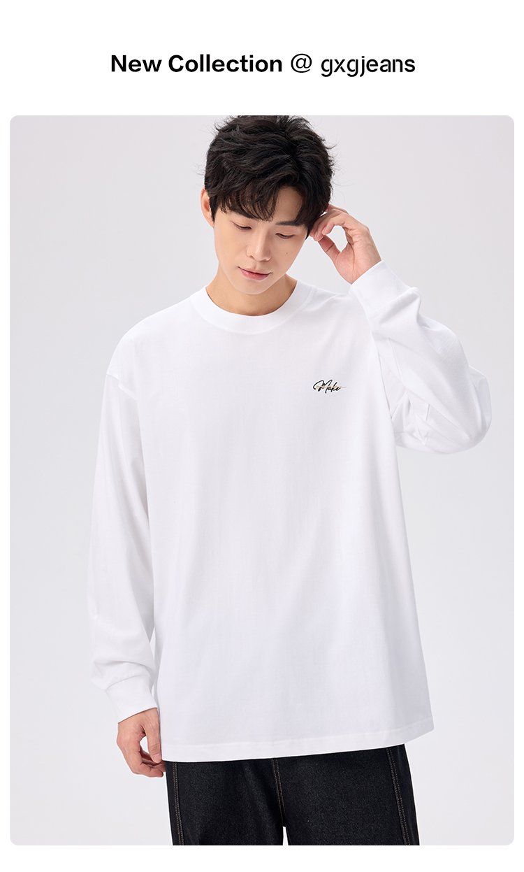 gxgjeans 男装【重磅棉100%】男士绣花长袖T恤25秋款时尚百搭打底衫男K&C