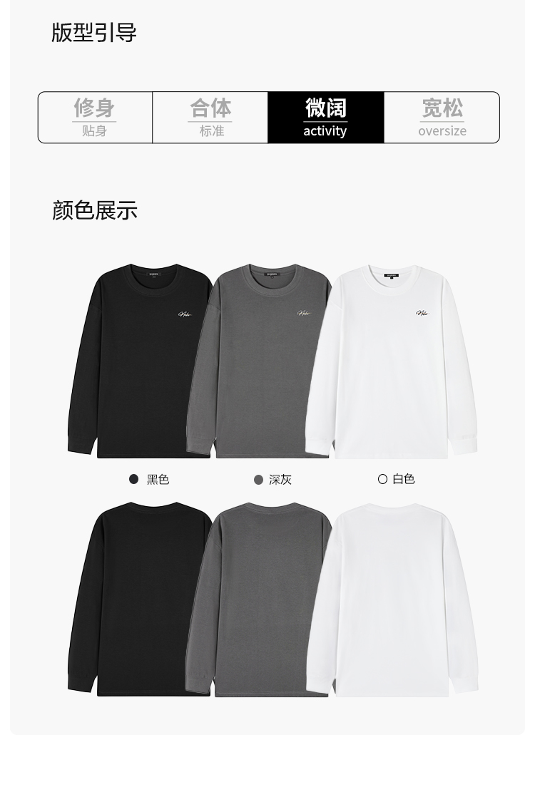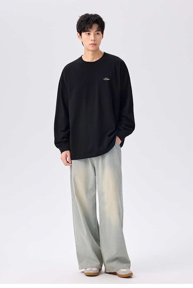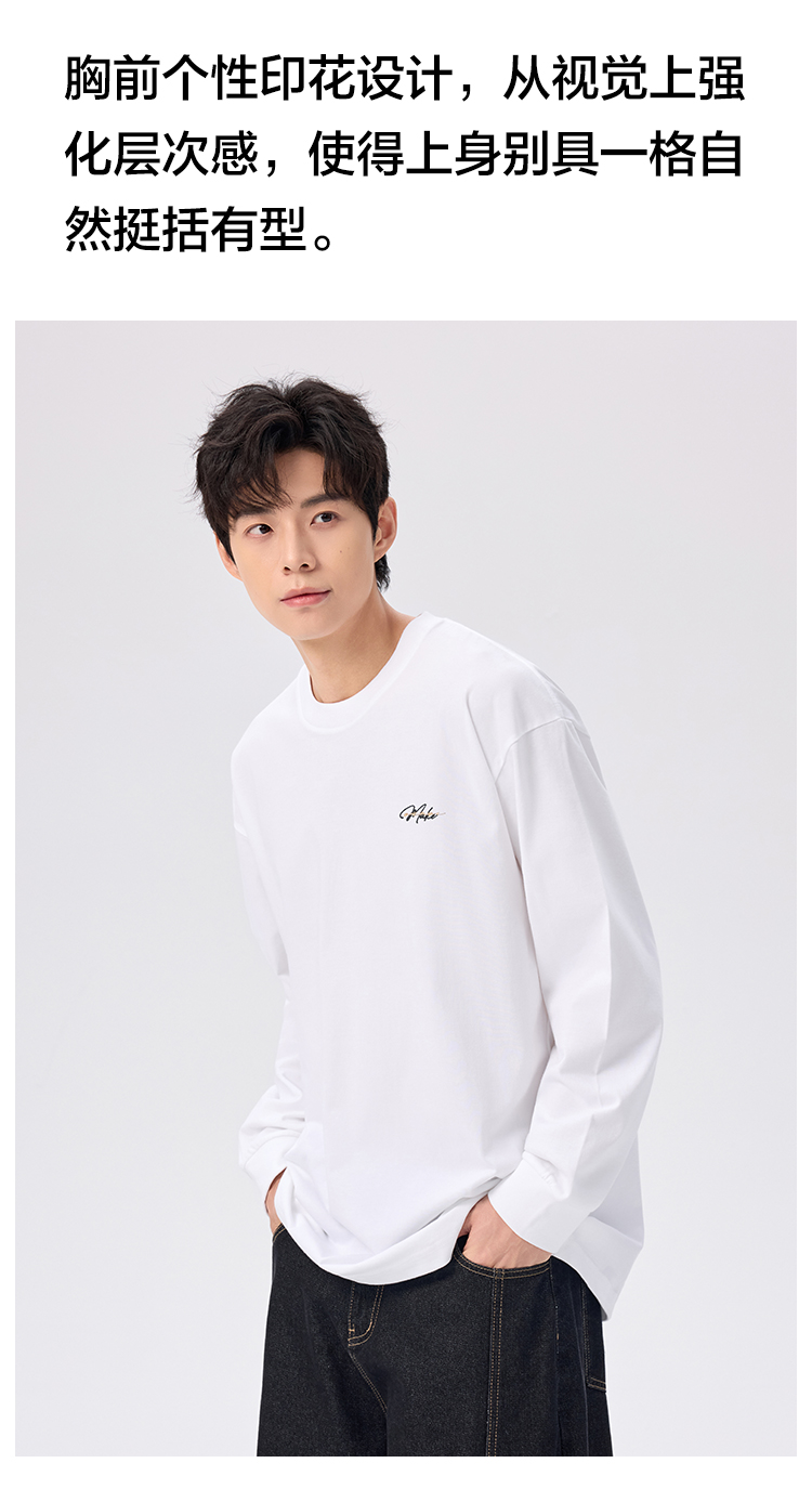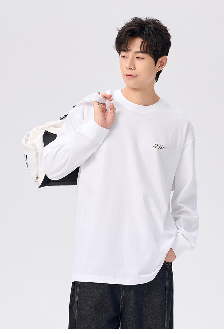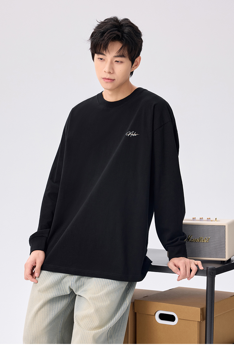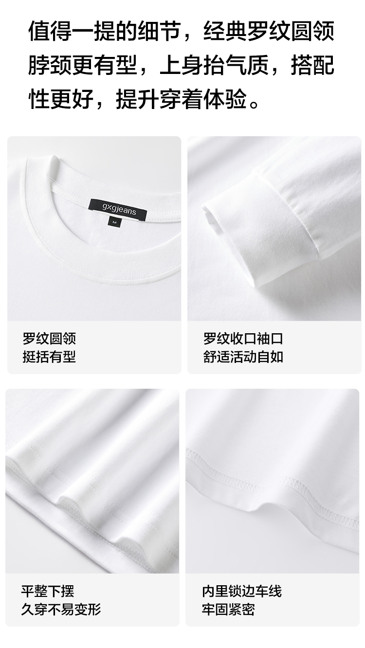gxgjeans 男装【重磅棉100%】男士绣花长袖T恤25秋款时尚百搭打底衫男K&C