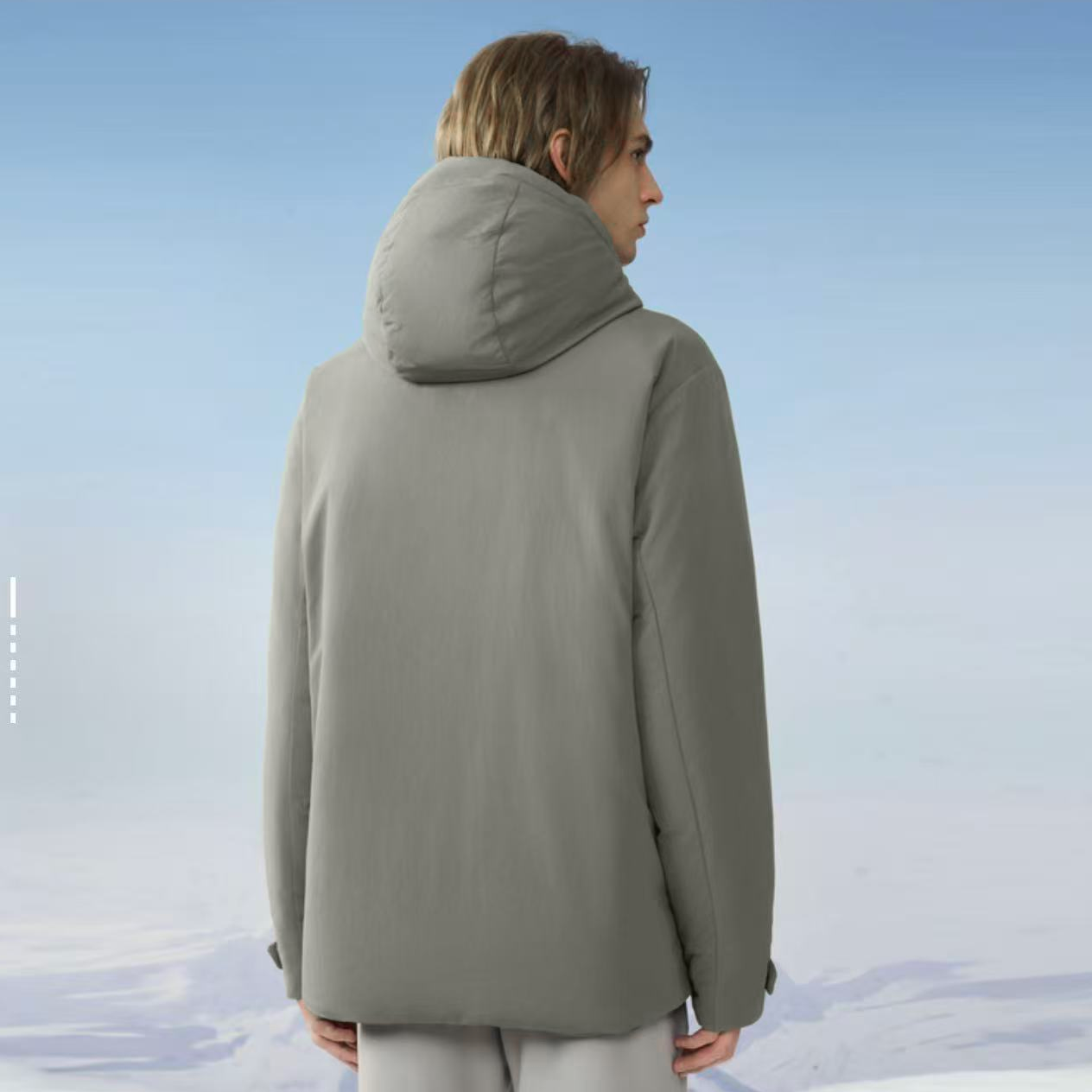 新款男士连帽羽绒服外套!韩国代购款,客供科技尼龙防风防水面料,内里90%白鸭绒填充,轻盈蓬松,保暖舒适!