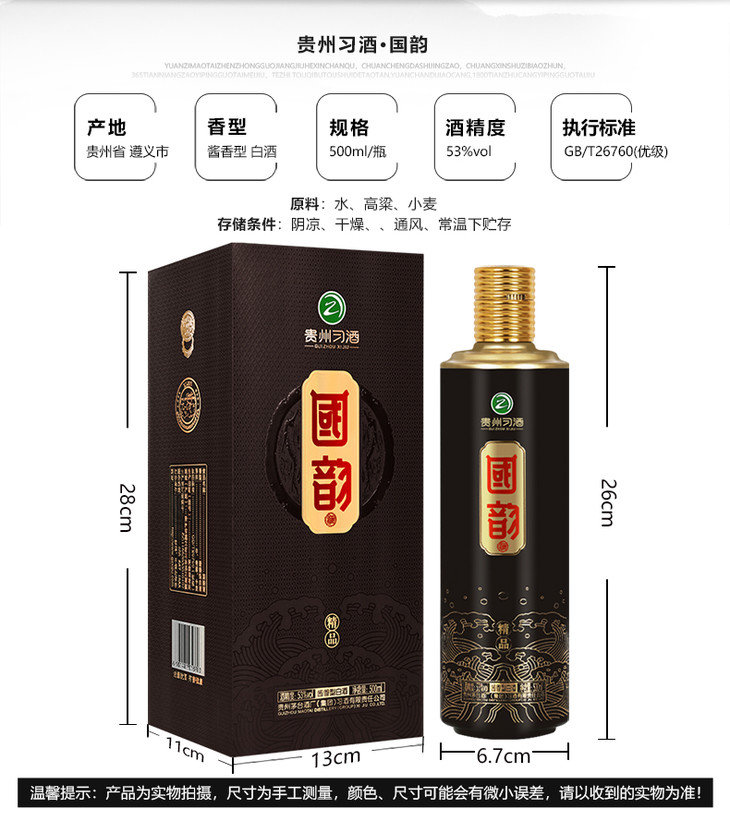贵州习酒国韵精品酱香型高度粮食白酒53度500ml/1瓶/6瓶整箱