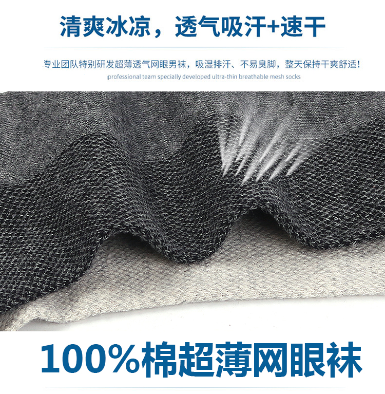 【10双】男士纯棉袜子100%精梳棉春秋季网眼透气休闲袜 防臭吸汗