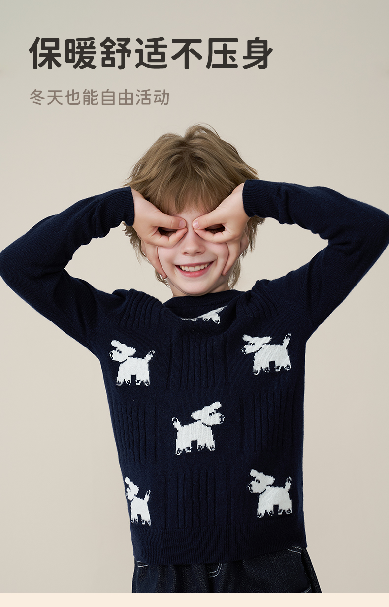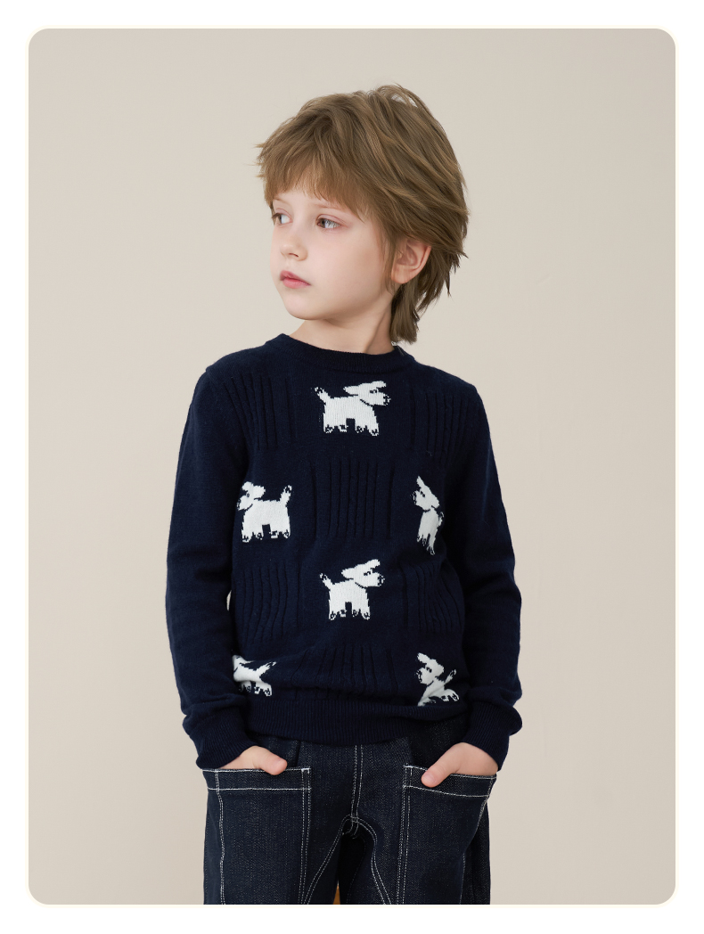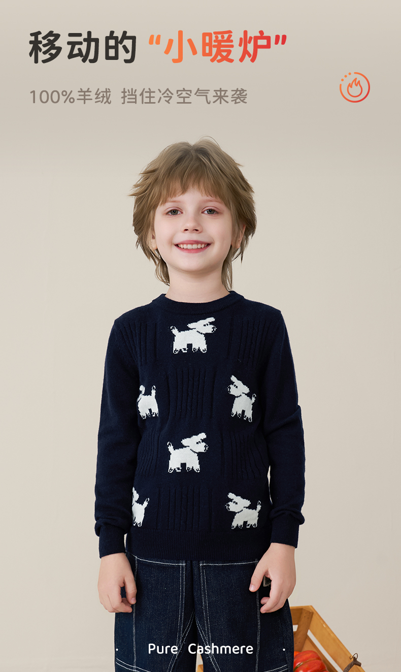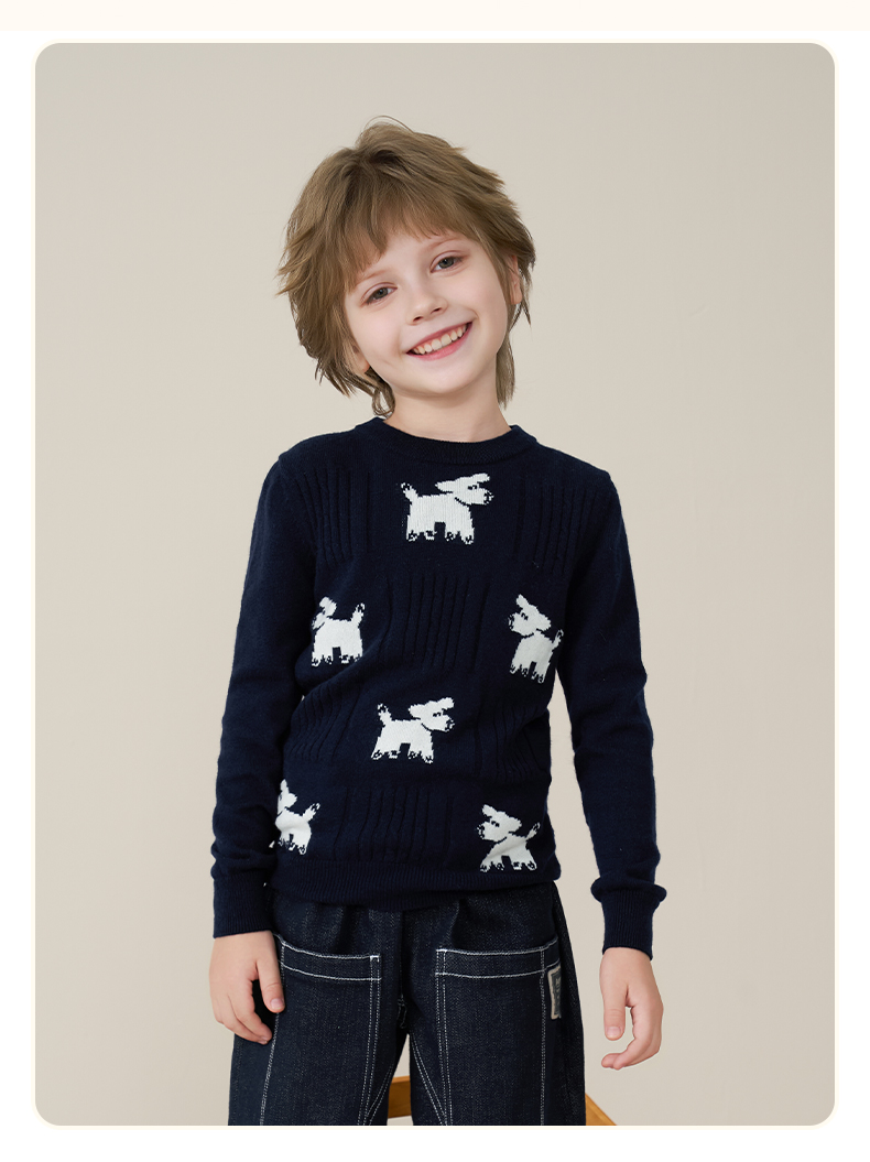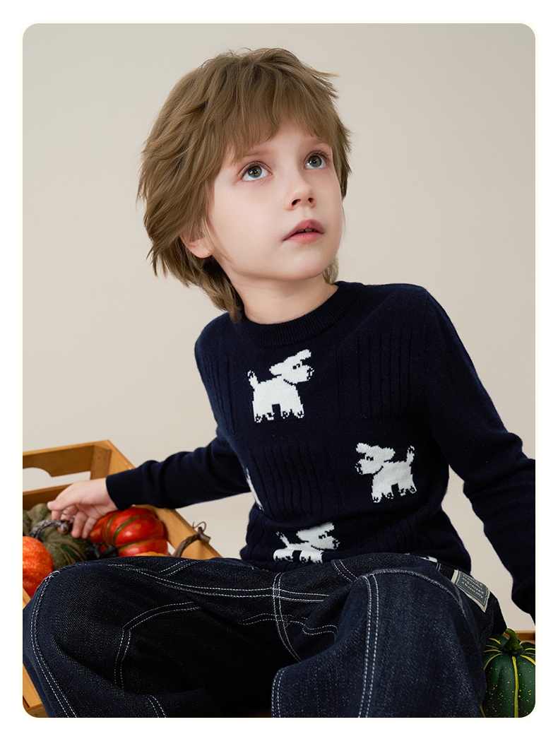 mettekids儿童100%羊绒衫2025秋冬男童卡通小狗套头童装针织毛衣