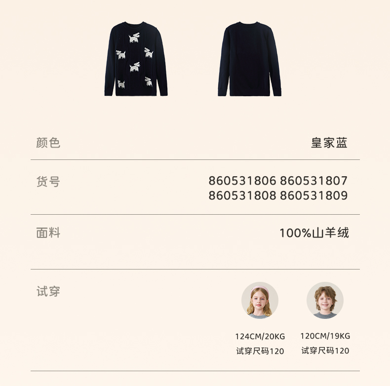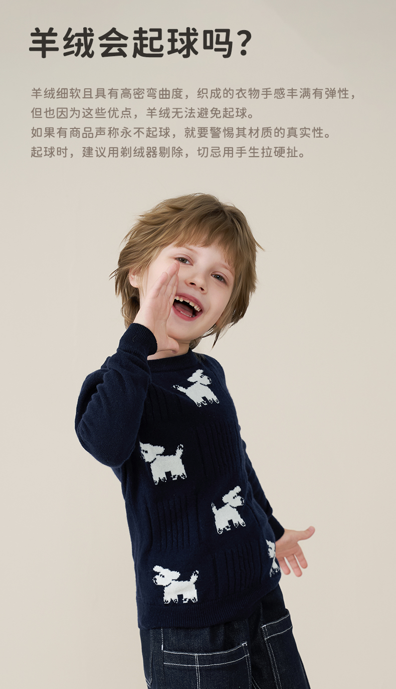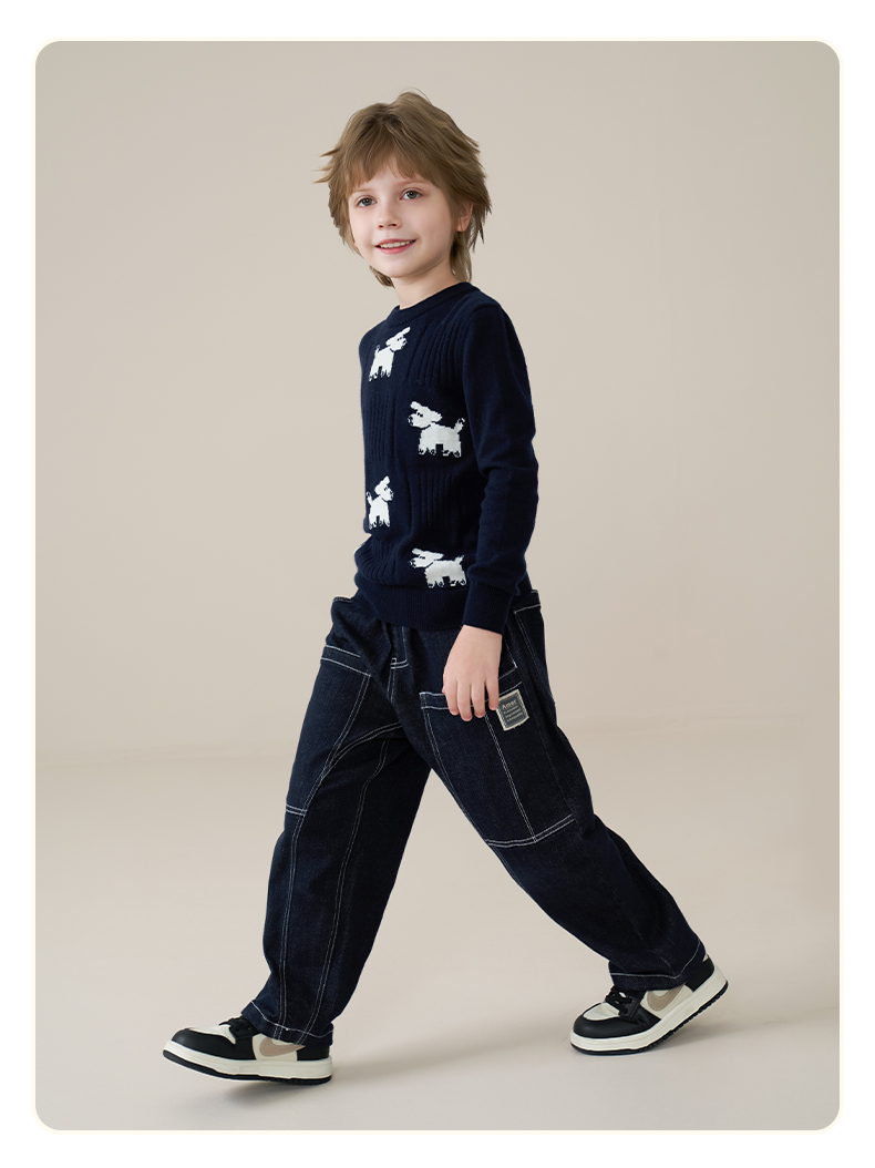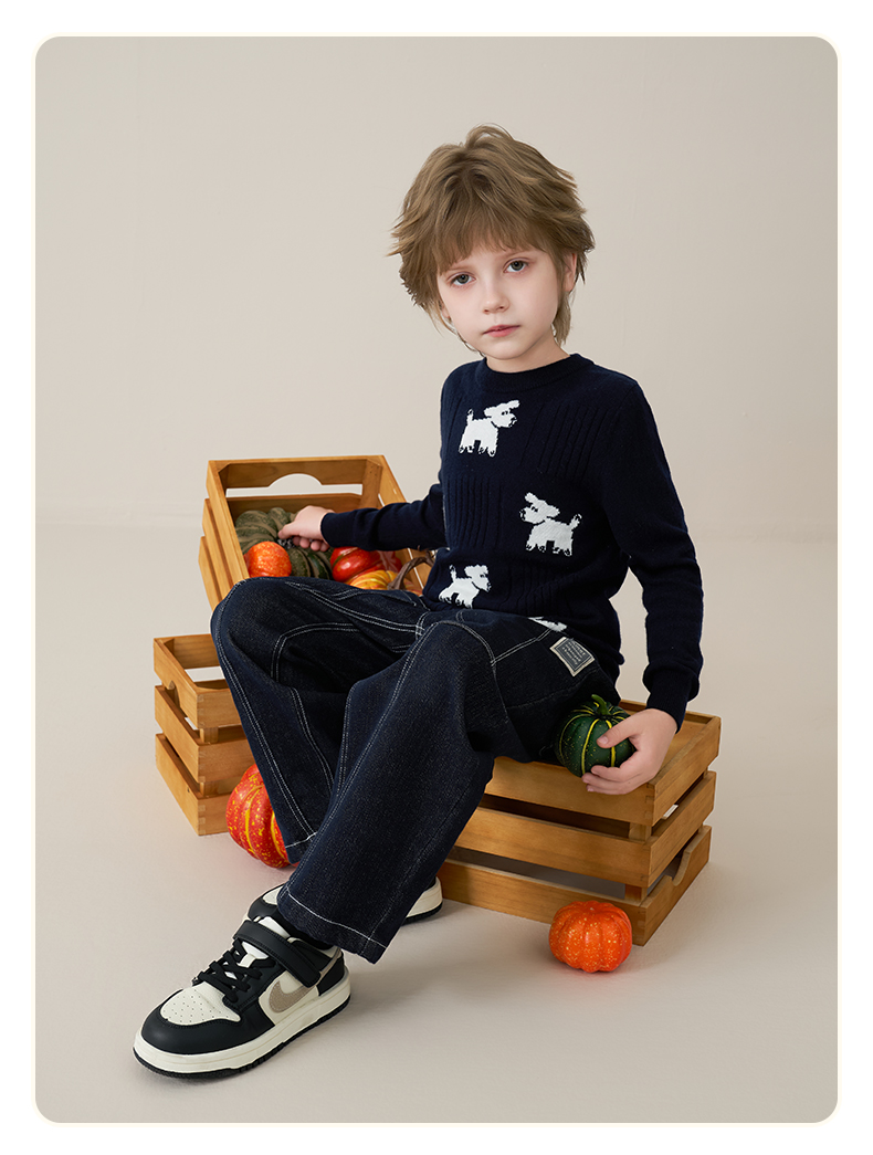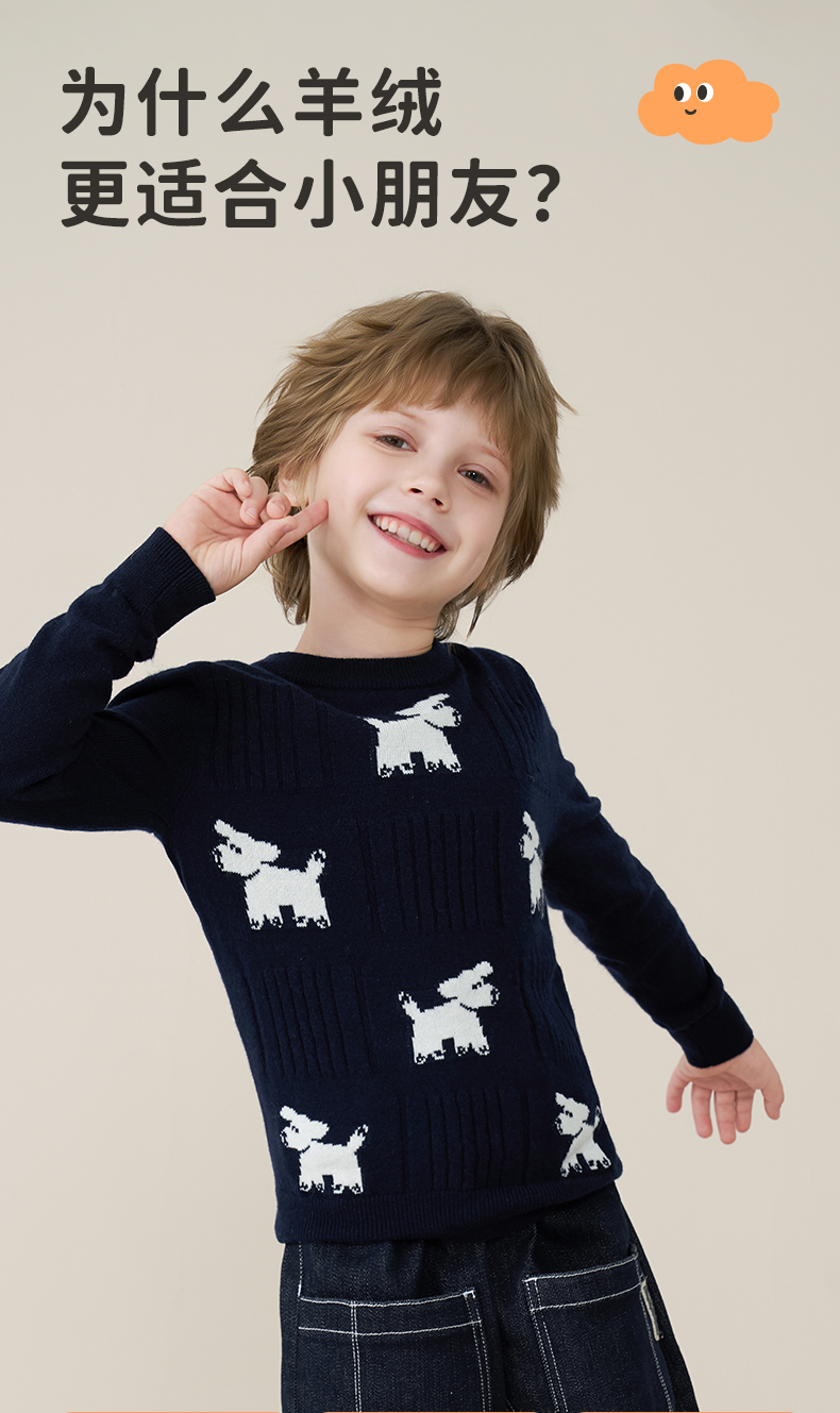 mettekids儿童100%羊绒衫2025秋冬男童卡通小狗套头童装针织毛衣