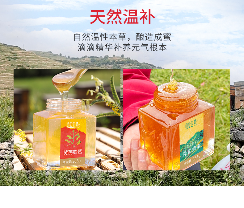 【元气暖胃组合】元气黄芪+暖胃茴香 田野牧蜂天然蜂蜜 金奖蜂蜜自然封盖蜜 稀缺本草纯蜜 高原直采