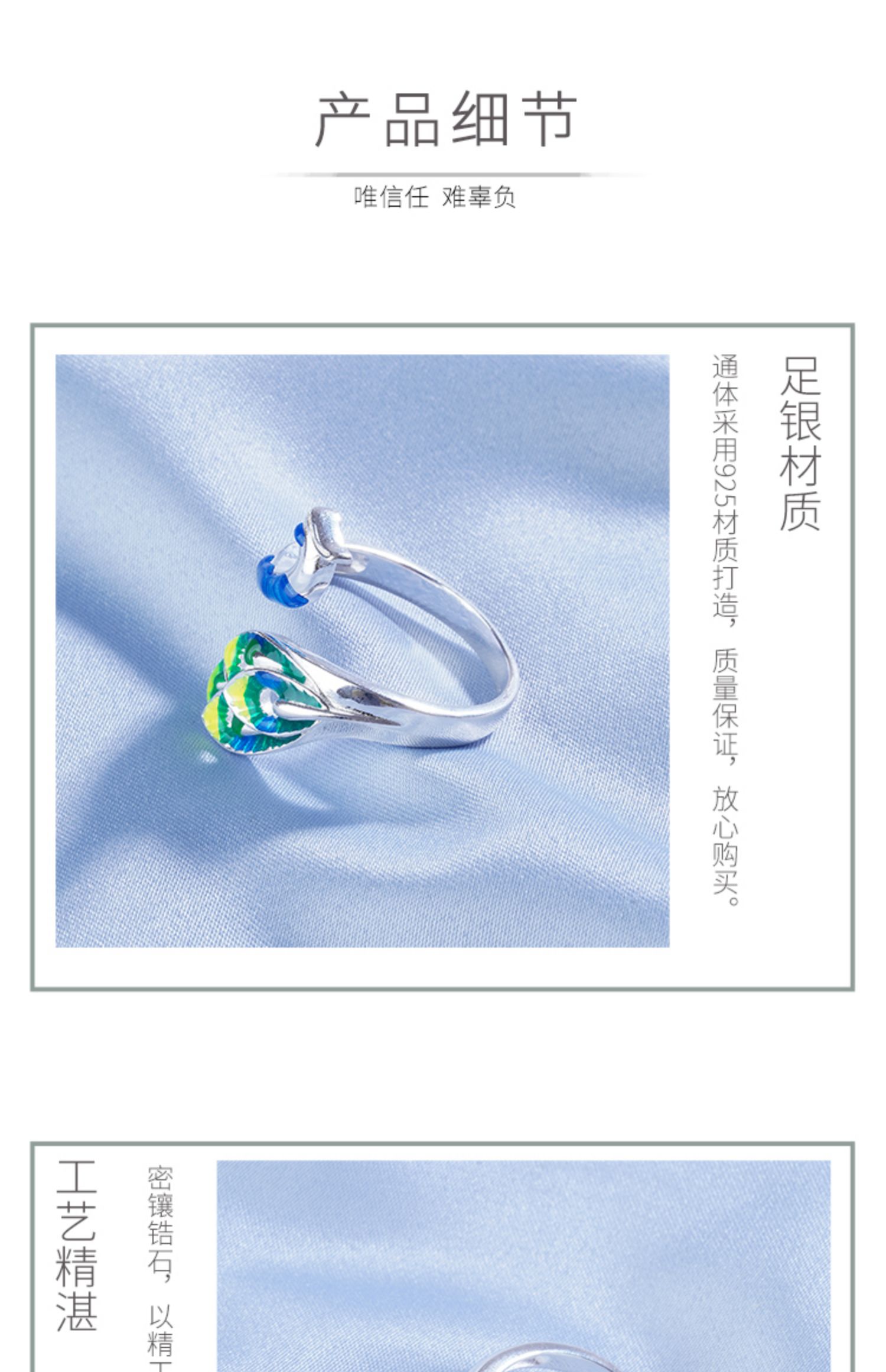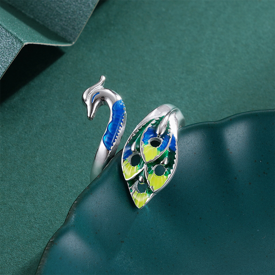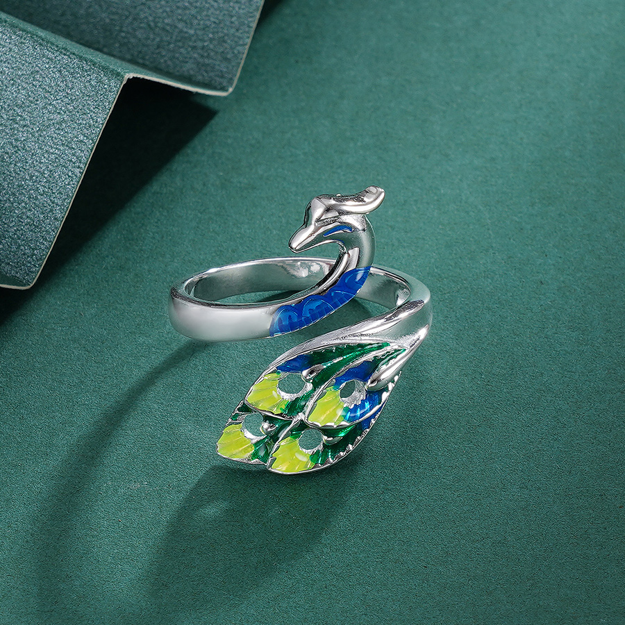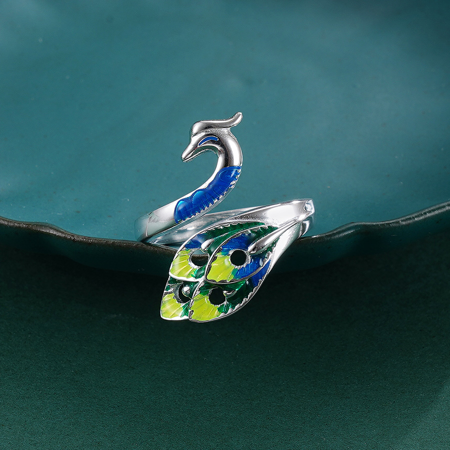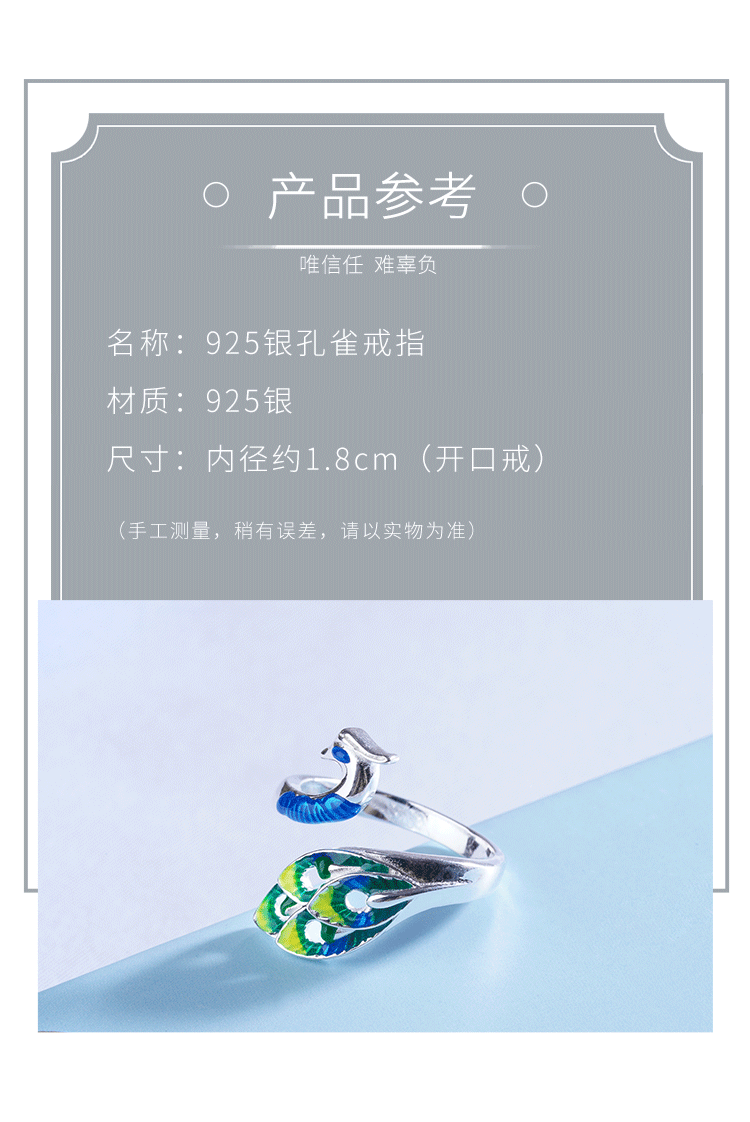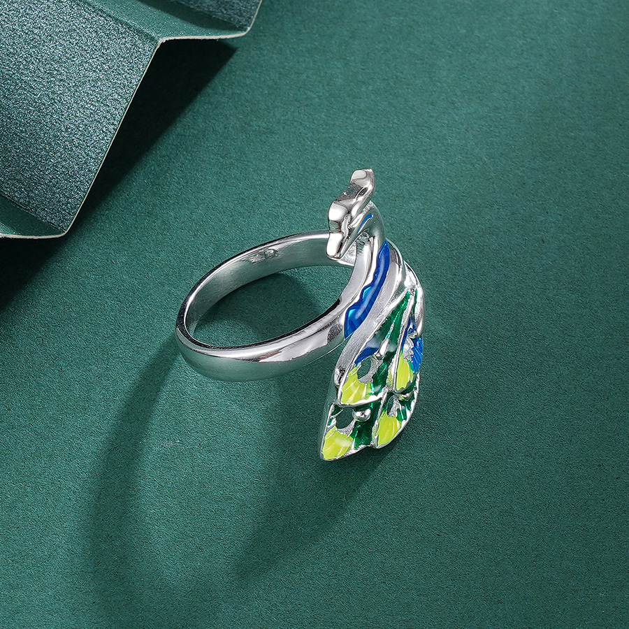 【寓意】:灵韵随风起,翠屏展翅归。戒指以孔雀为灵感设计,珐琅渲染出渐变色彩,层次分明,神韵毕现。寓意孔雀开屏,吉祥降临。