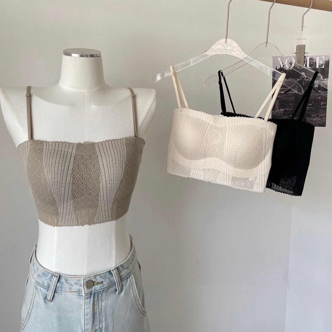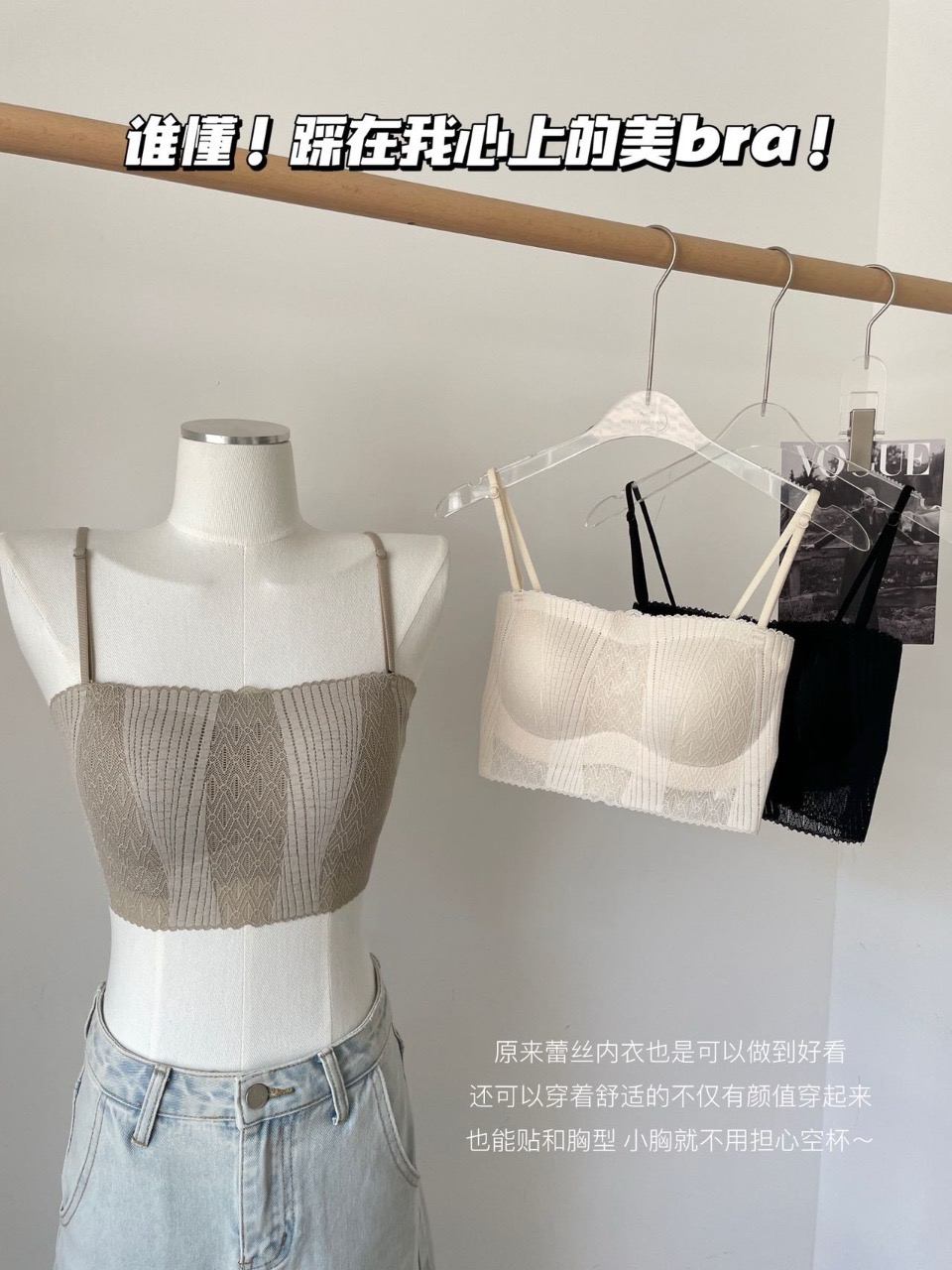 老米优品🎈2件包邮!夏日内搭宝藏单品!《复古菱格纹自带胸垫蕾丝吊带》抹胸式设计,软糯高弹力,内搭太赞了~~NY240423A