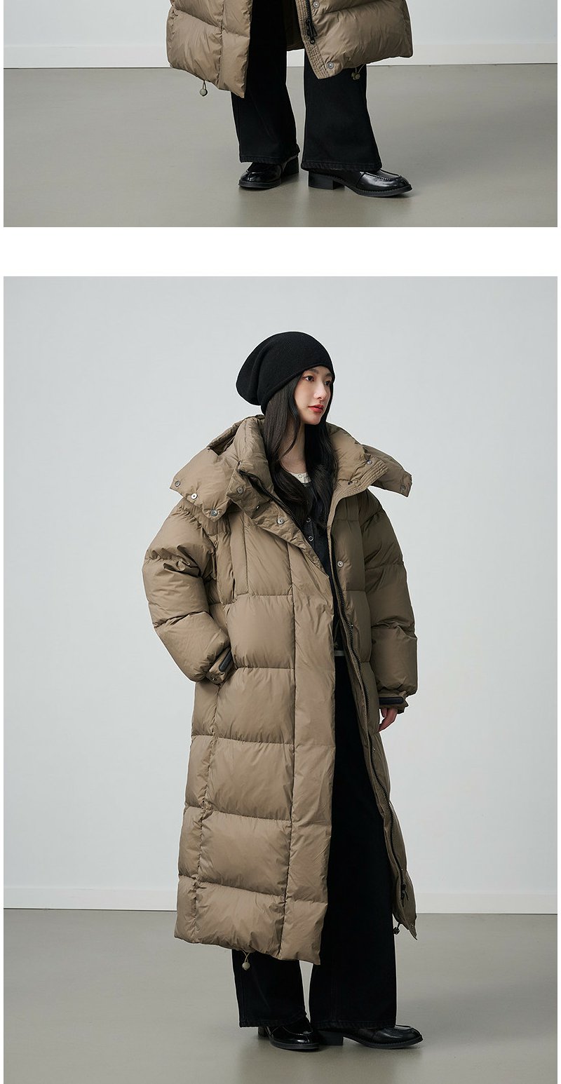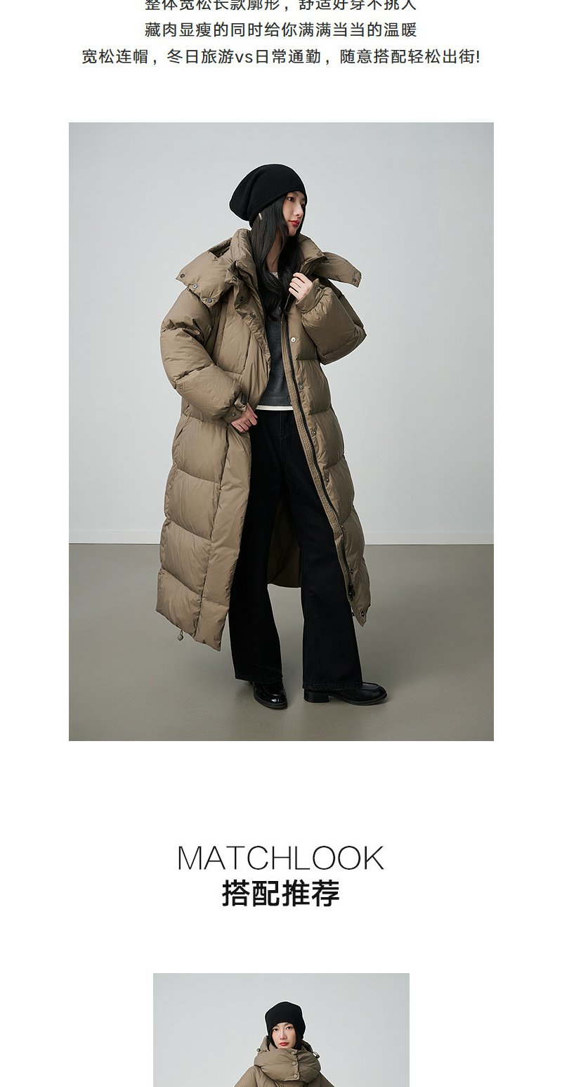 NEELLY纳俪商场同款冬新款时尚连帽长款羽绒服女百搭通勤廓形外套N25114L06604
