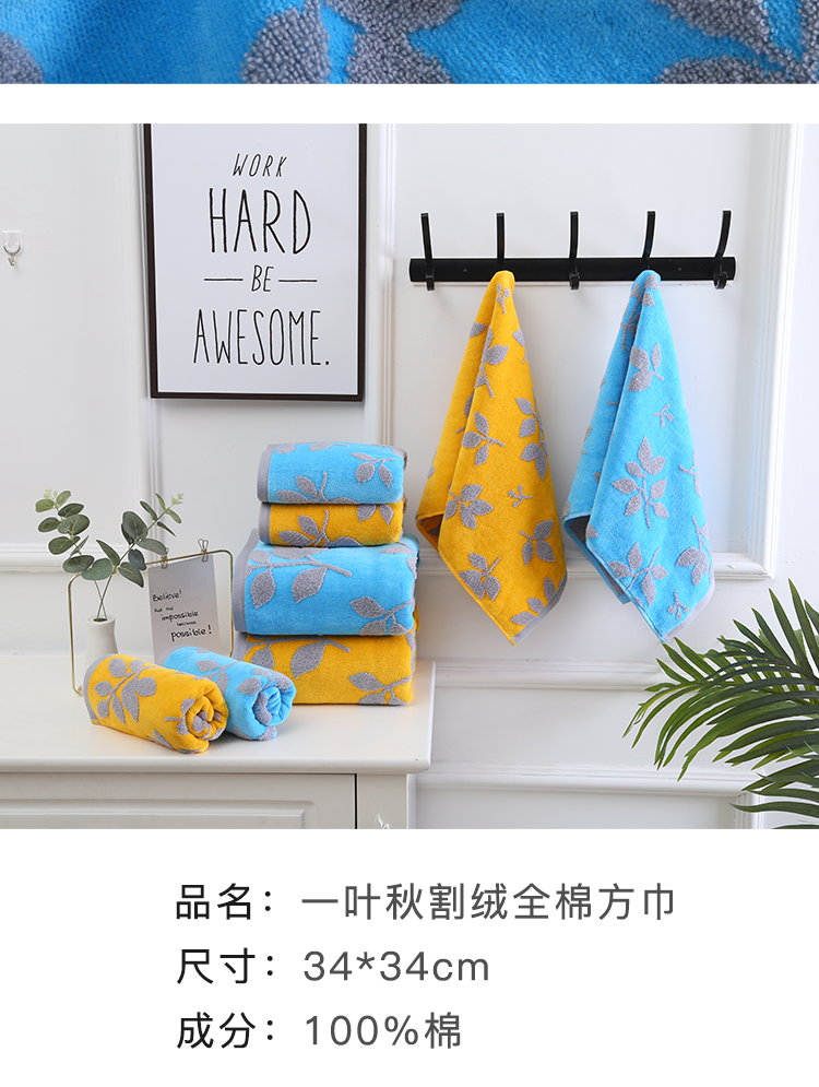 (乡村振兴商品)百布堂一叶秋割绒全棉方巾(随机发货) 34*34*5 商品图4