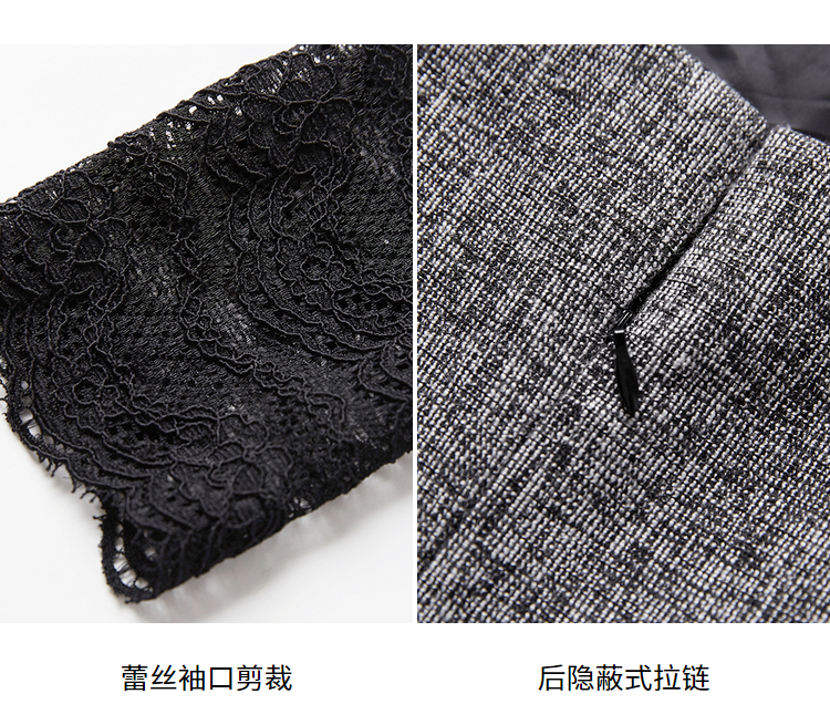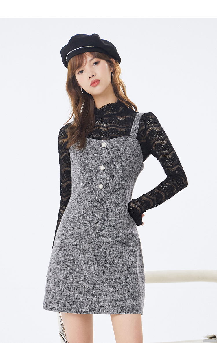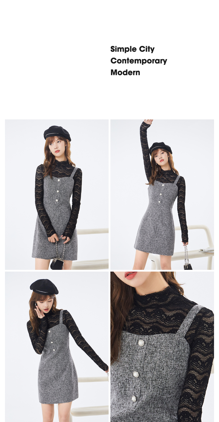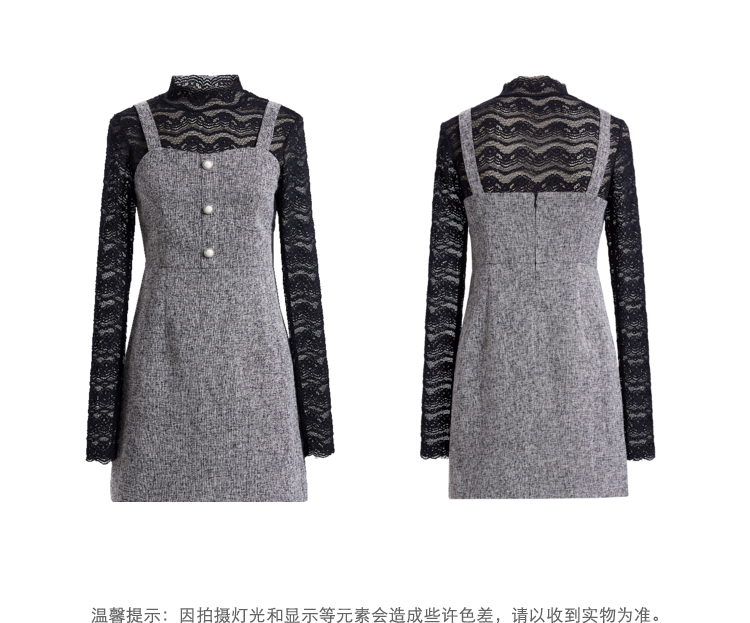 NEELLY纳俪半高领微透视蕾丝内搭两件套A字裙收腰显瘦韩版小个子NM2008DY370