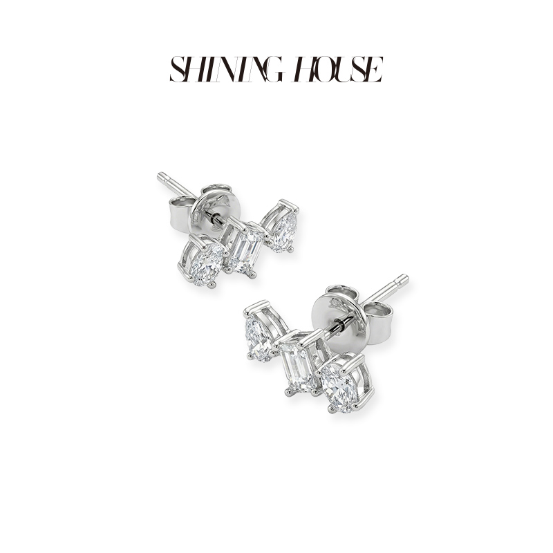 ShiningHouse[培育] 18k金钻石耳饰 刻面形人工真钻人造钻石K金耳钉时尚钻石耳饰耳环悦己送礼臻选【此商品不支持7天无理由退货退款】预计3日发货