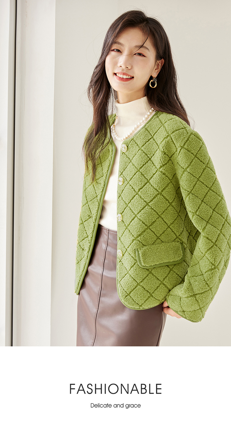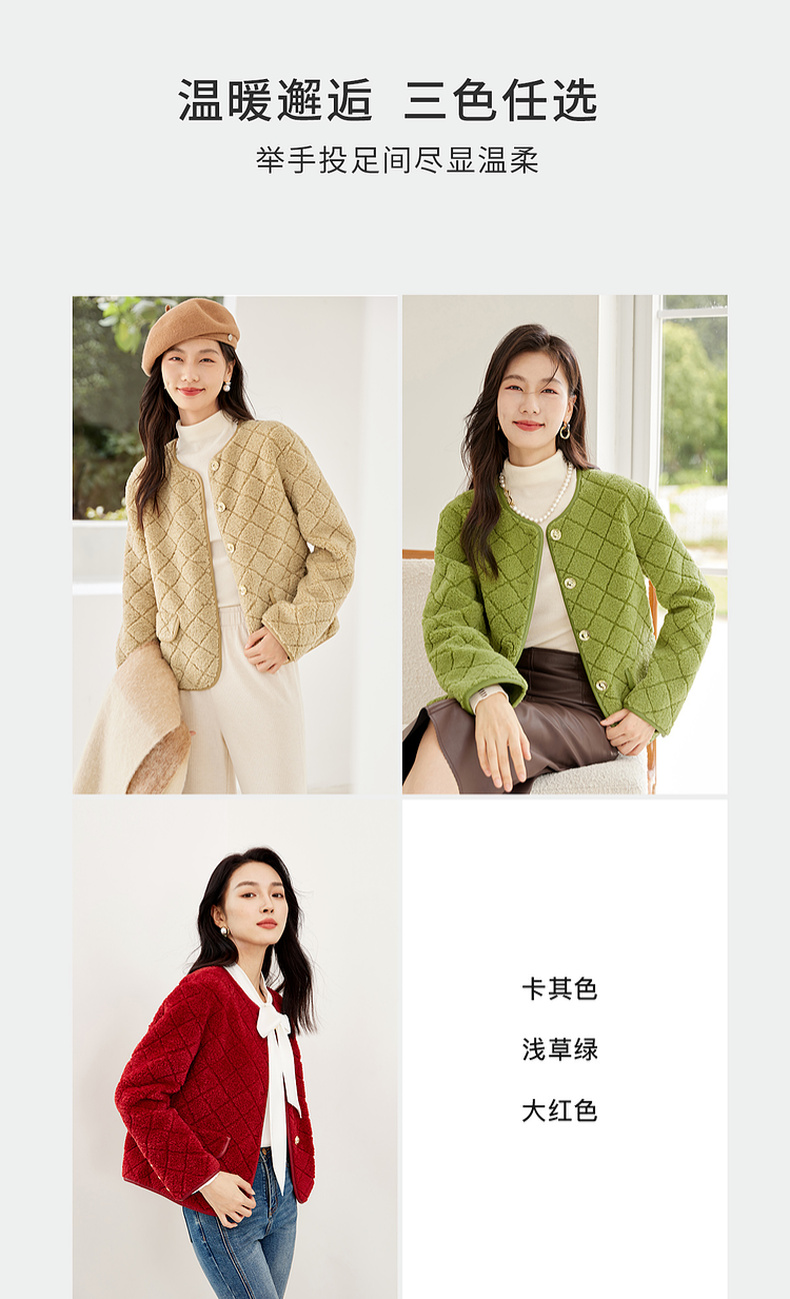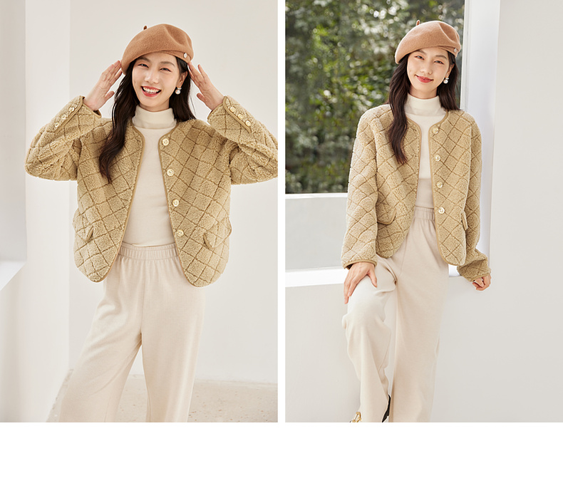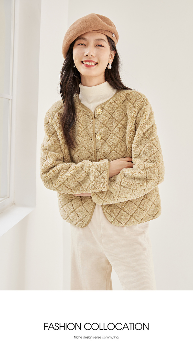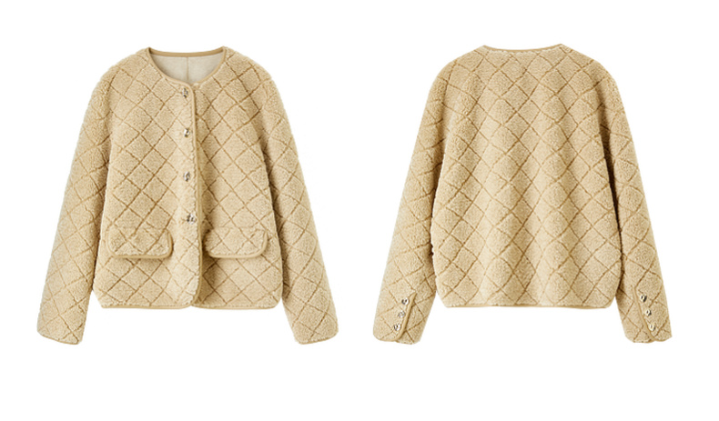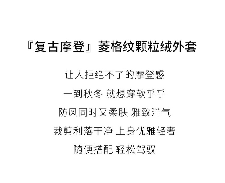 【内购】【轻奢保暖颗粒绒外套女】秋冬新时尚菱格纹毛绒上衣-W54WM3630X