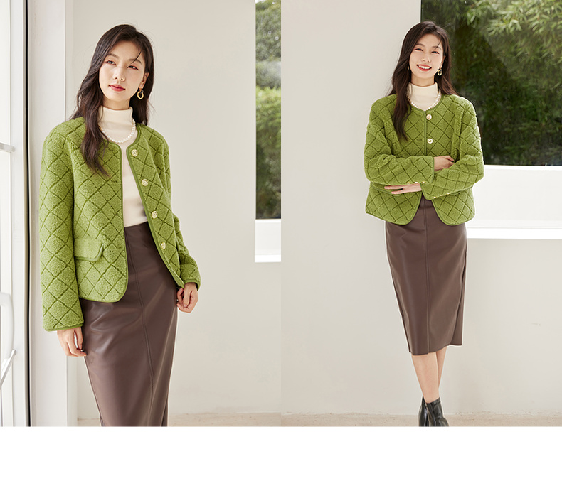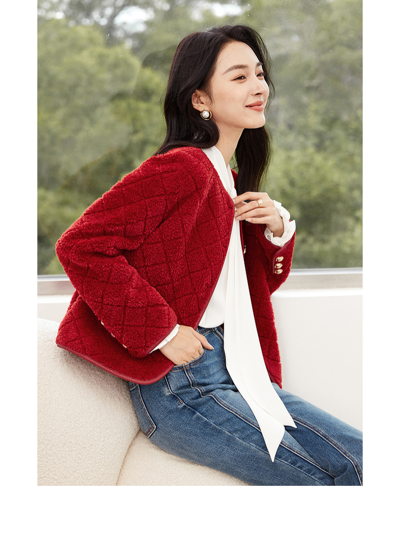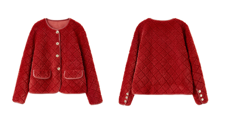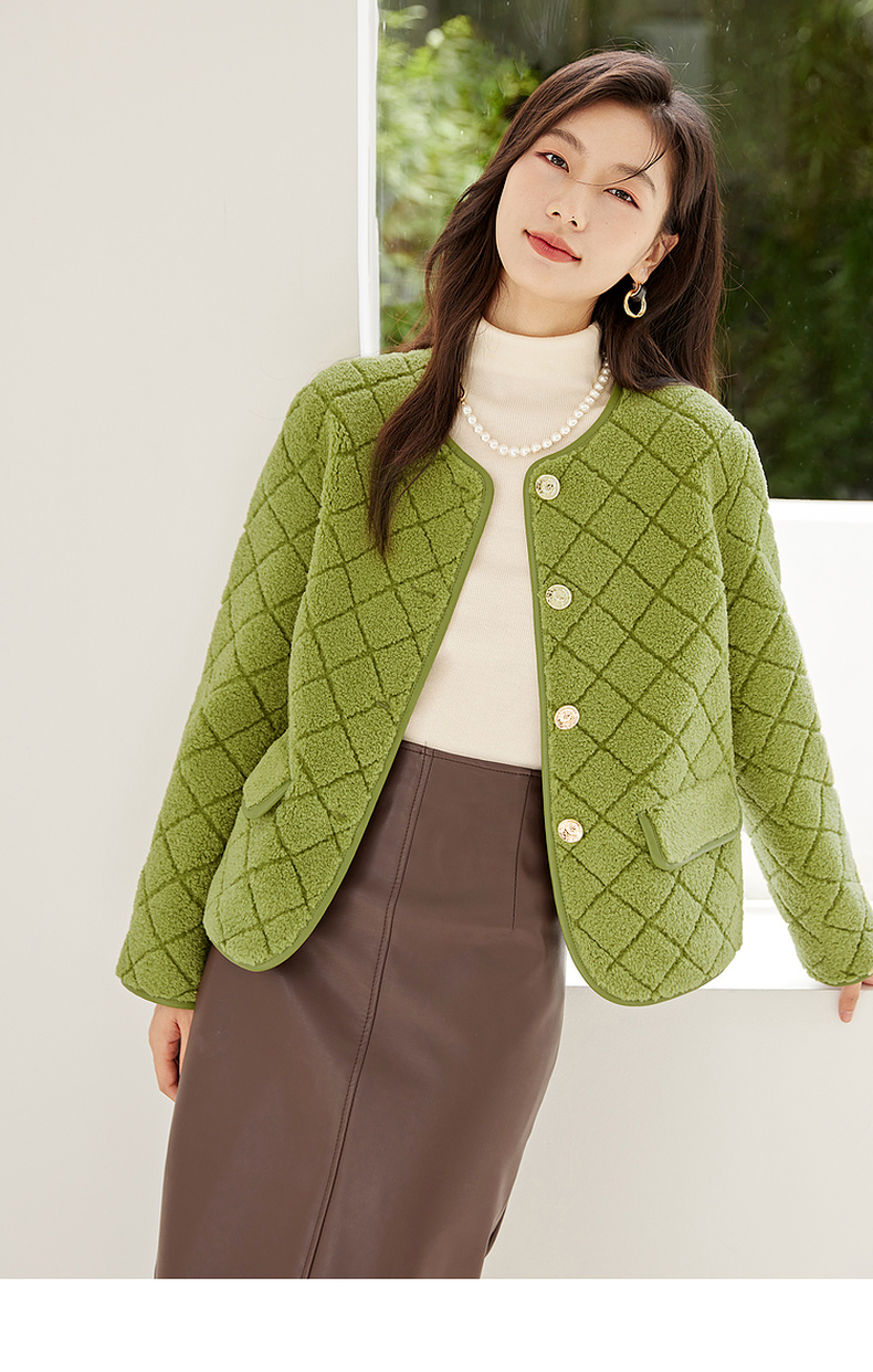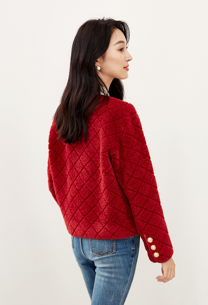 【内购】【轻奢保暖颗粒绒外套女】秋冬新时尚菱格纹毛绒上衣-W54WM3630X