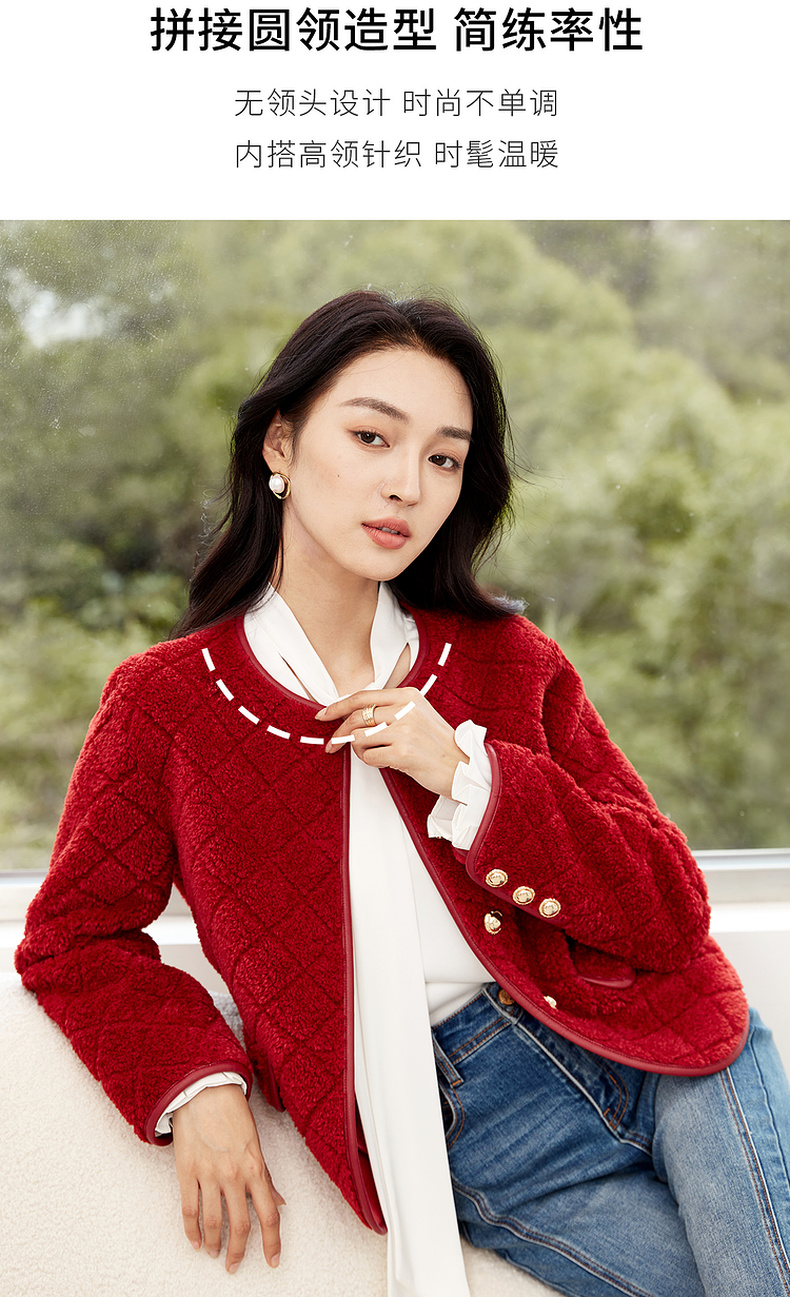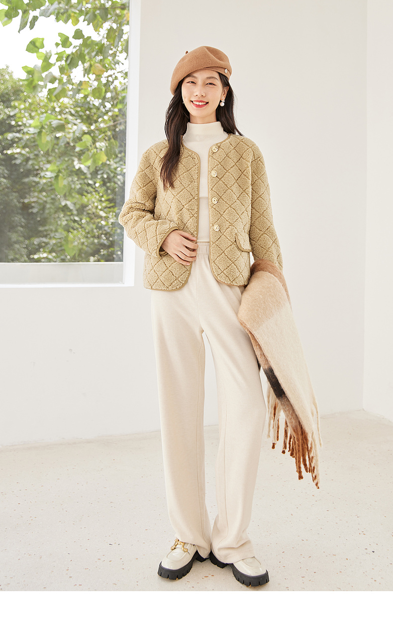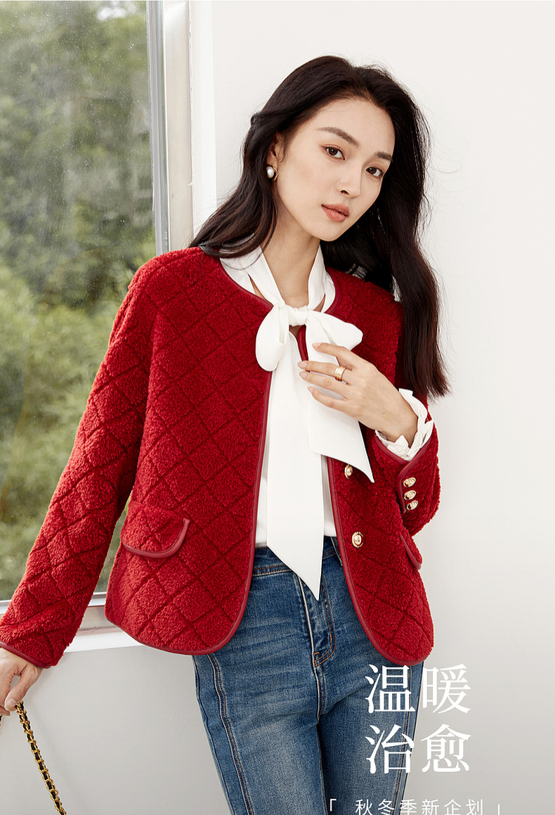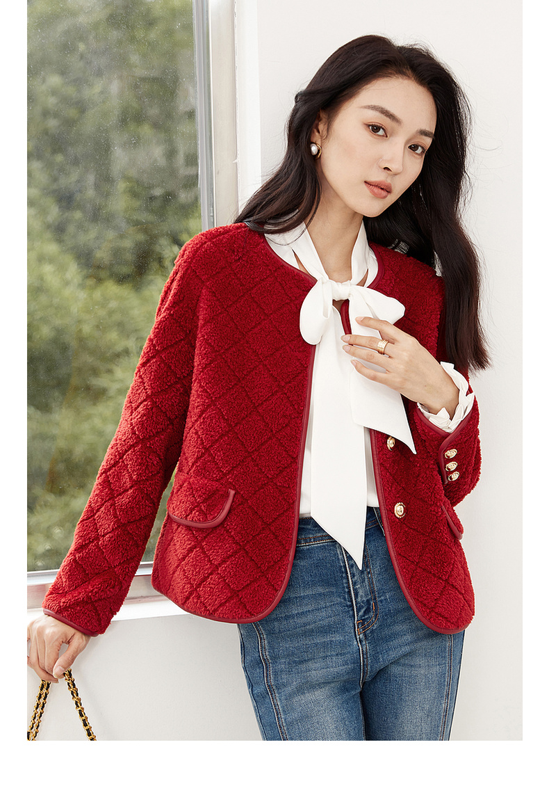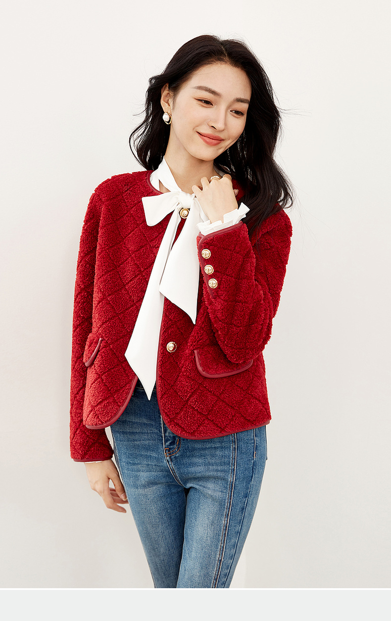 【内购】【轻奢保暖颗粒绒外套女】秋冬新时尚菱格纹毛绒上衣-W54WM3630X