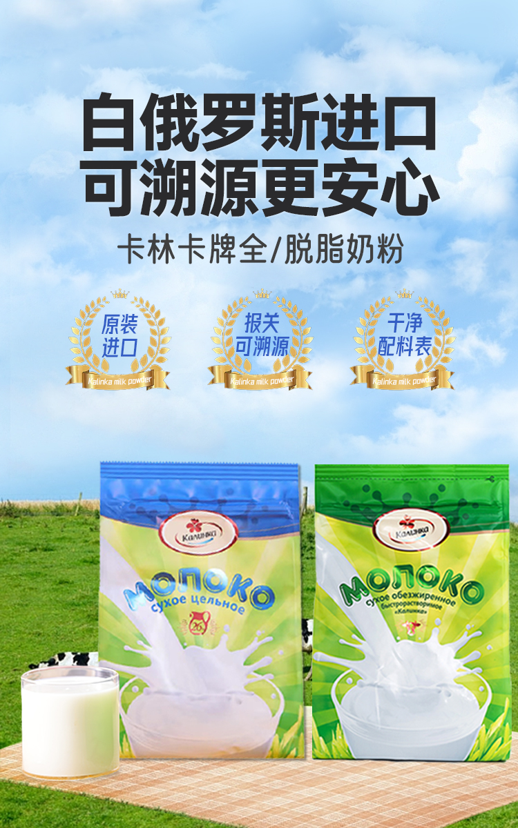白俄罗斯卡林卡牌脱脂/全脂牛奶粉500g 东欧奶源国配料表干净 120217/120216