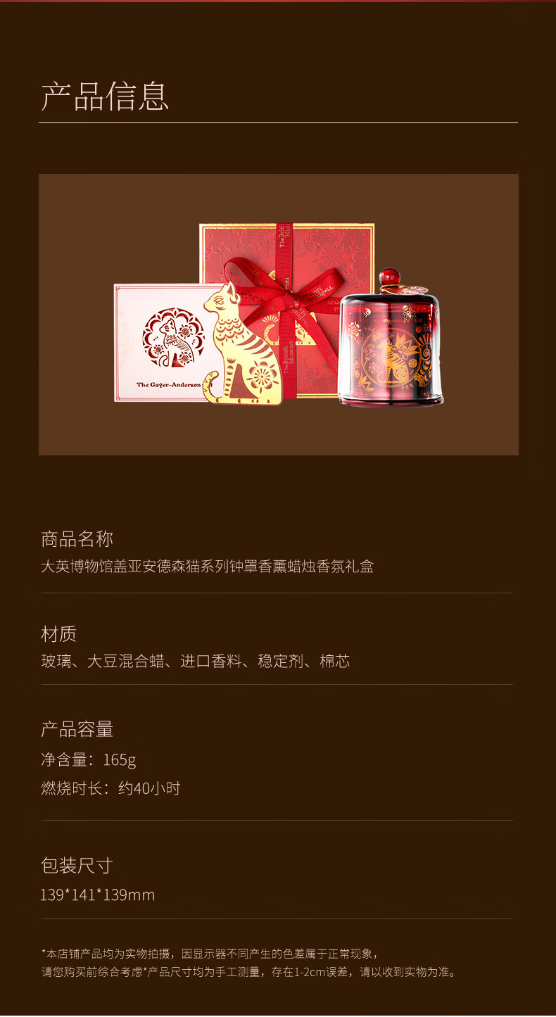 大英博物馆盖亚·安德森猫系列 钟罩香薰蜡烛香氛礼盒新年礼物
