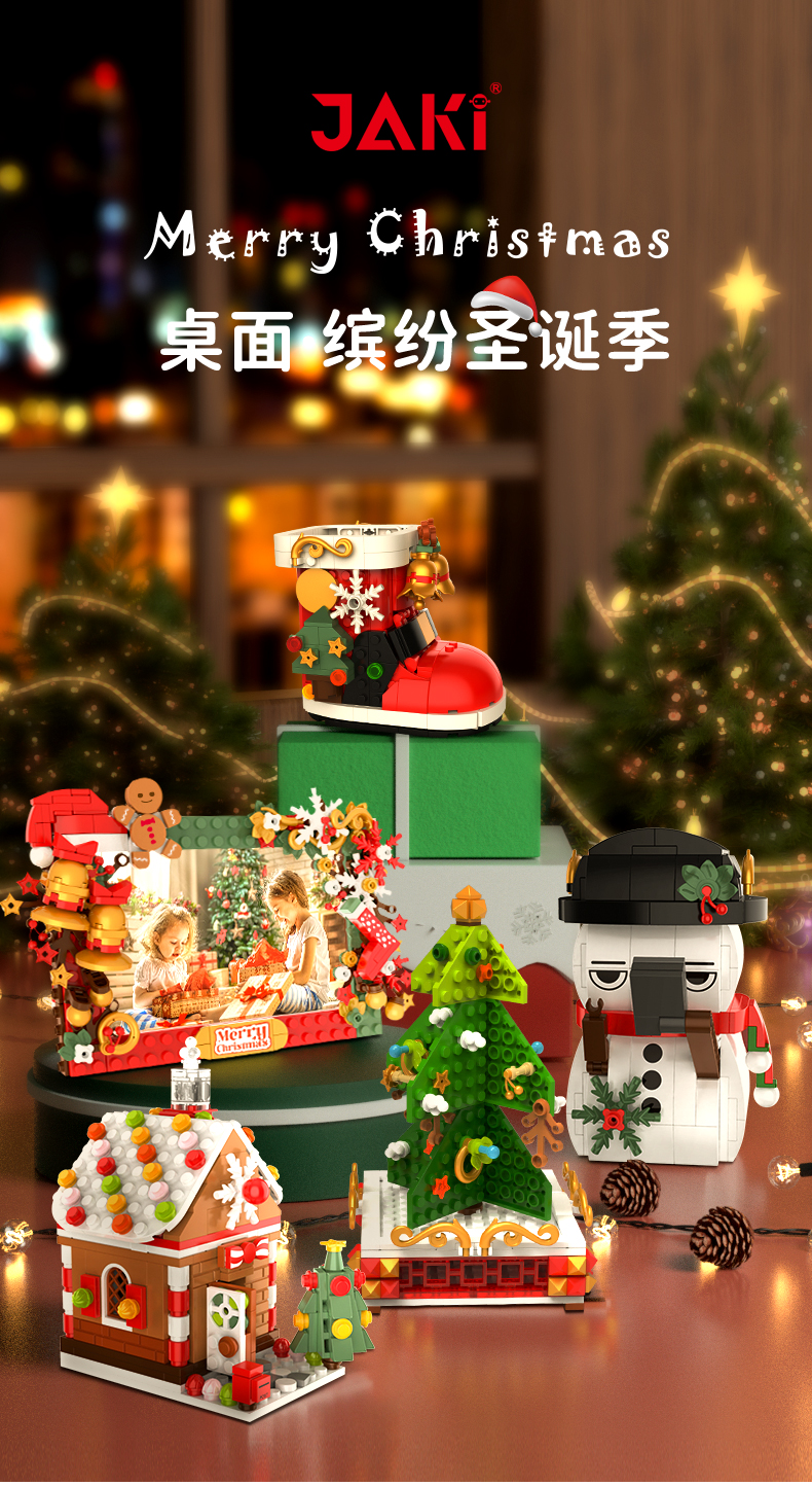 JAKI佳奇积木相框圣诞系列玩具桌面摆件雪地靴节日礼物
