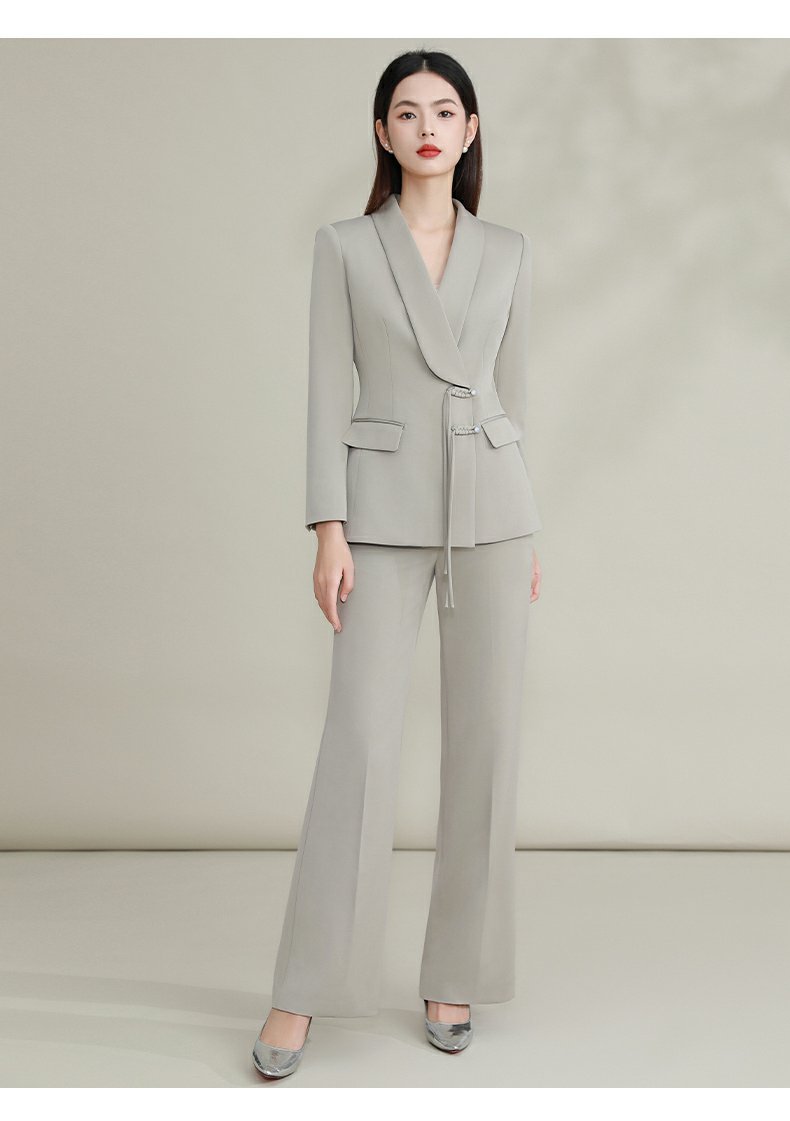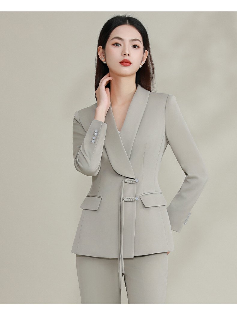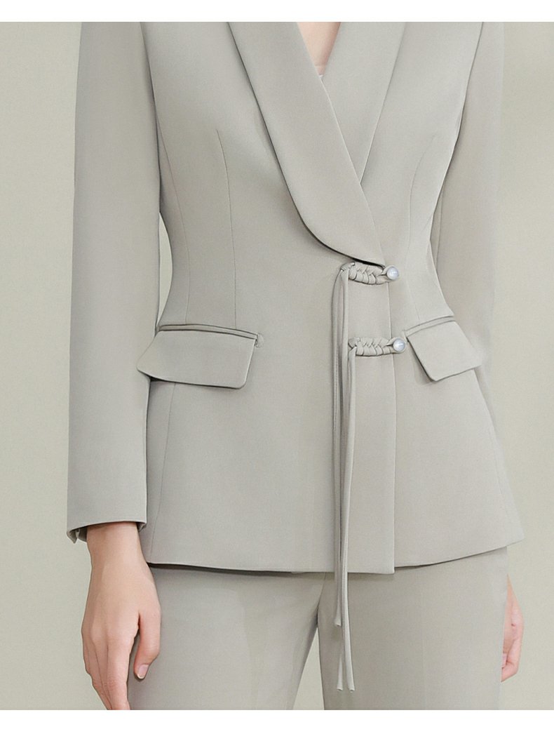 IWY/ 高级灰新中式套装盘扣中国风西装外套秋冬高端主持人正装FYC224+FYP225