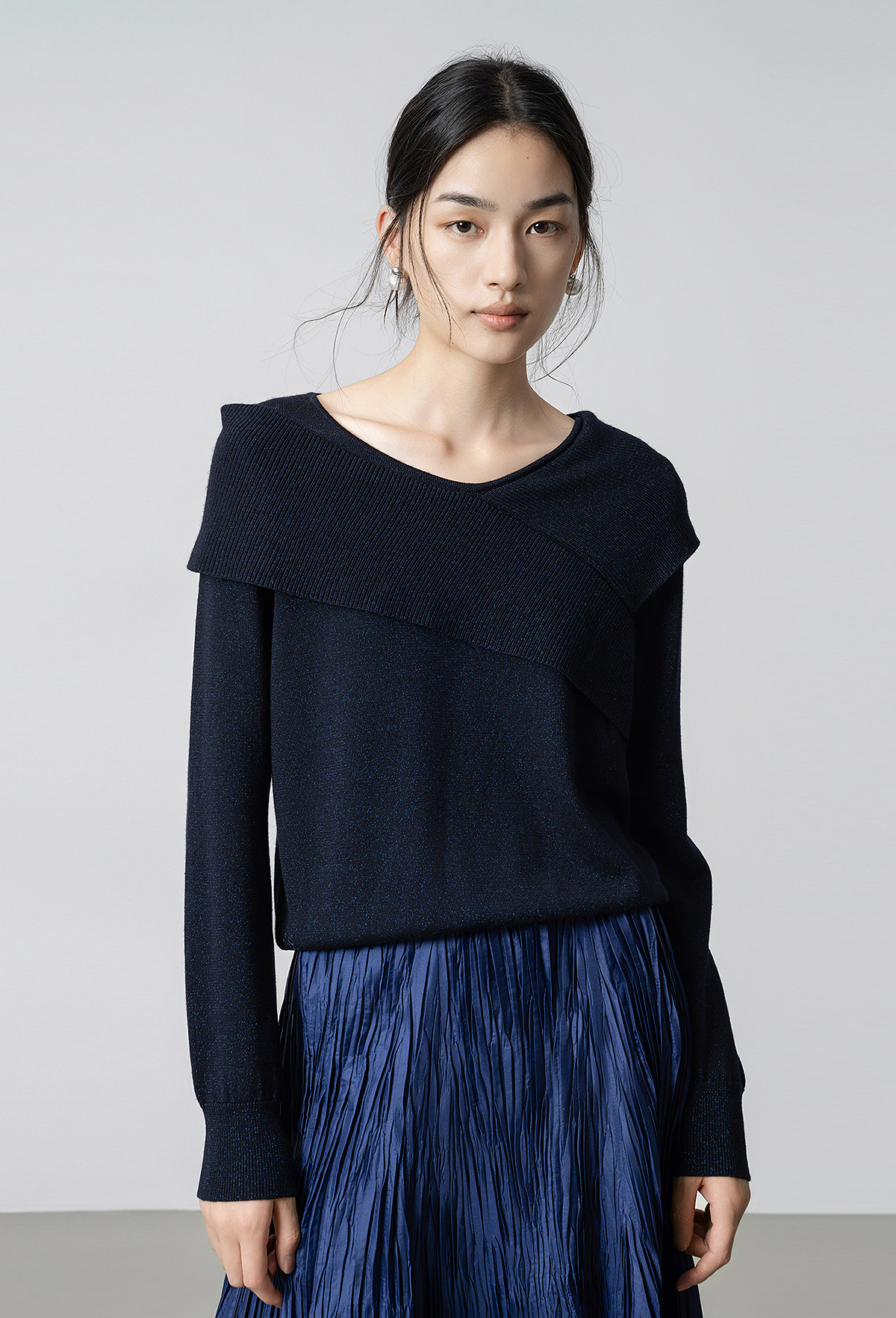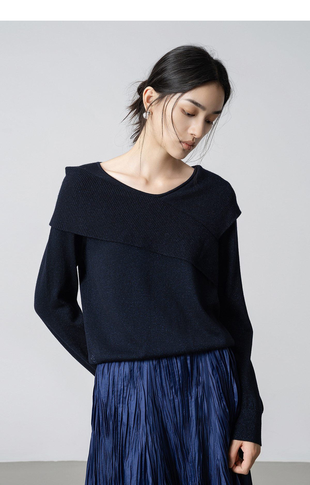 【林栖设计小店】(现货)优雅毛织上衣不规则百搭修身显瘦2025秋冬新款针织衫女1954016