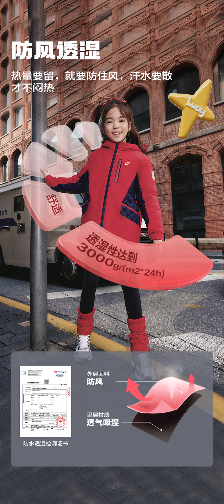 【商场同款】Asics/亚瑟士童装儿童三防外套春夹棉保暖新年红色