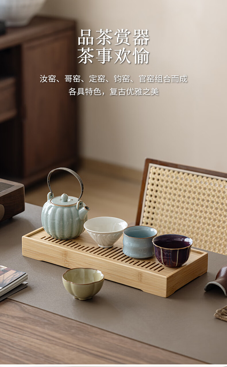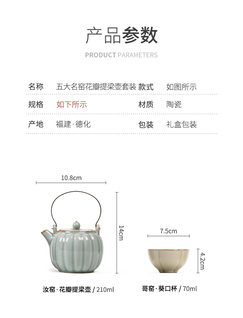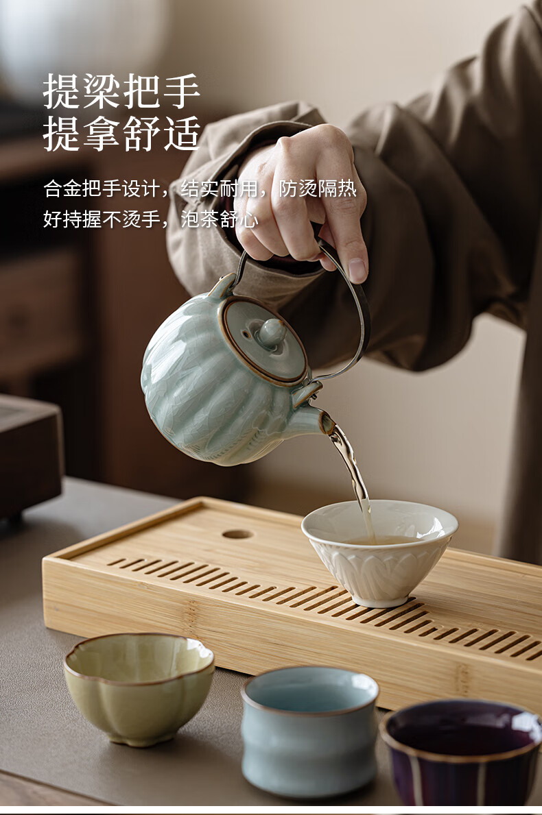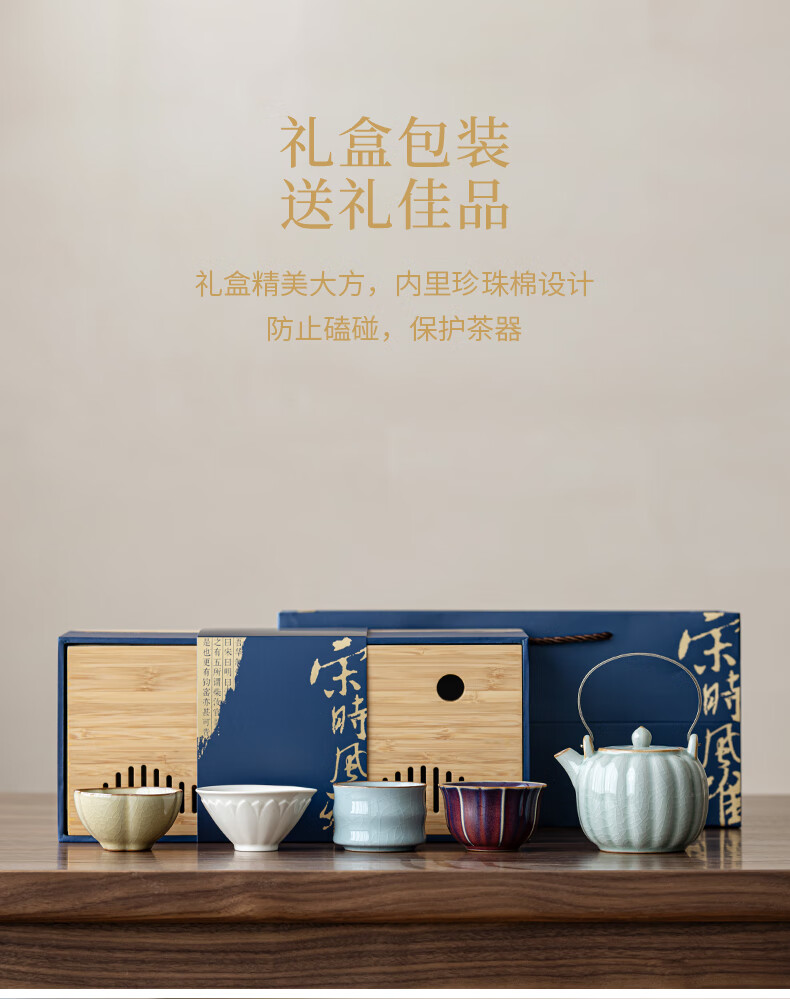 故宫文创宋时风雅五大名窑花瓣提梁茶具套装一壶四杯