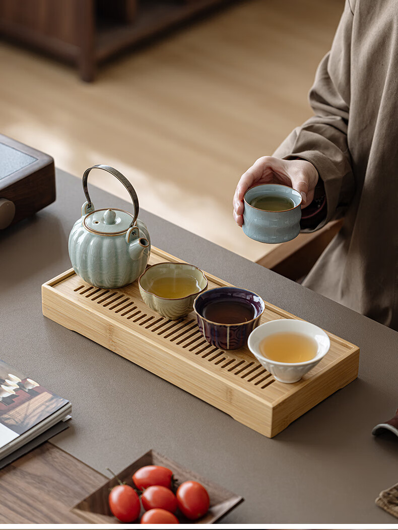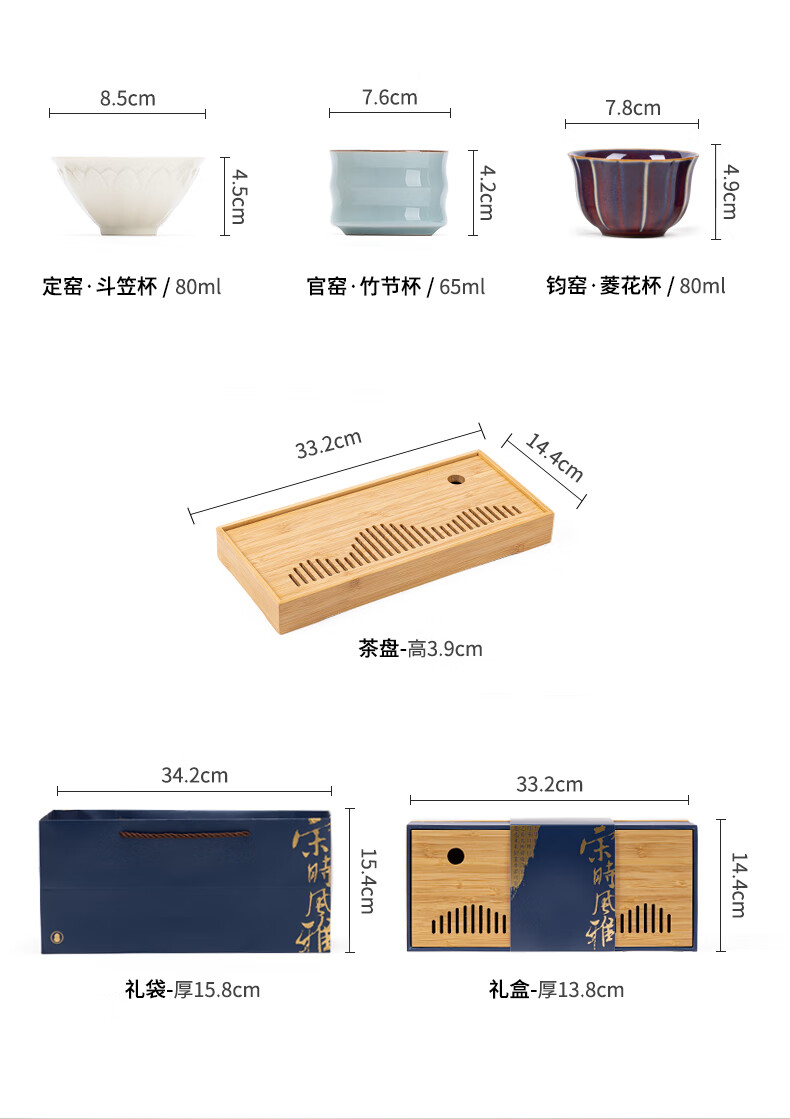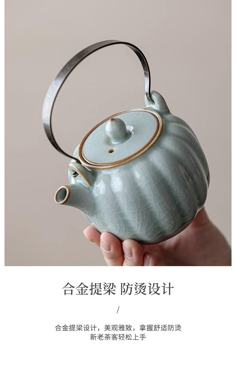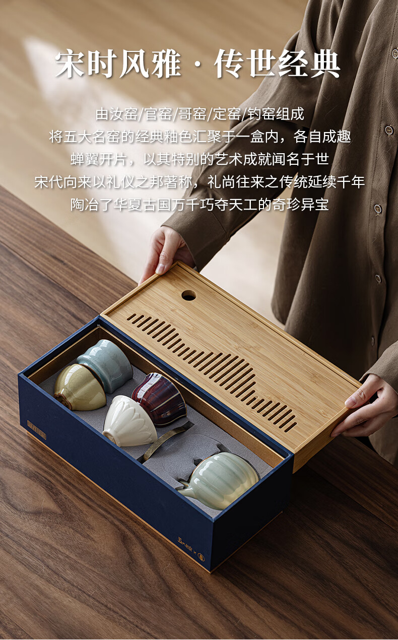 故宫文创宋时风雅五大名窑花瓣提梁茶具套装一壶四杯