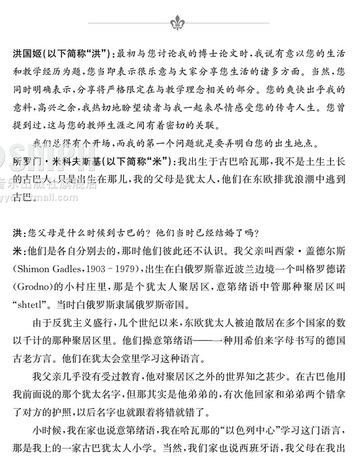 本书是当代著名钢琴教育家所罗门·米科夫斯基的采访录,记述者为其博士研究生、韩国青年钢琴家洪国姬。米科夫斯基教授至今培养了大量国际水准的钢琴演奏家,如今许多活跃在钢琴演奏一线的顶级演奏家都曾接受过米科夫斯基教授的指点,而周广仁教授、钢琴家郎朗也应邀为本书撰写了序言或评论。