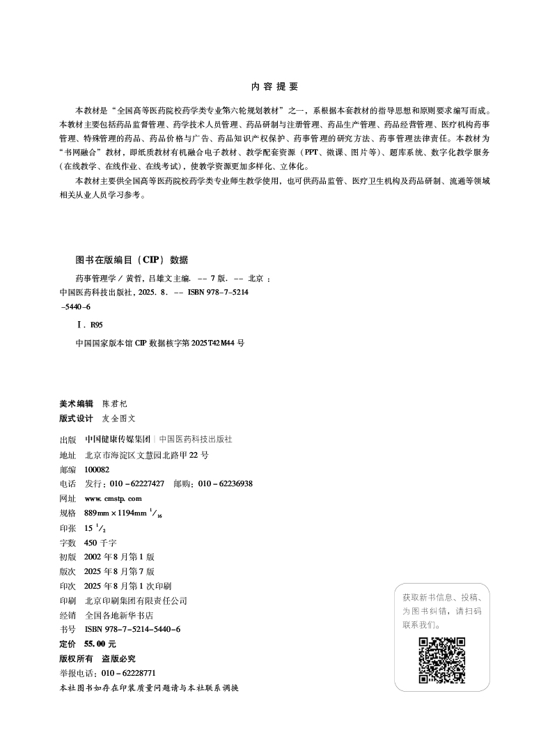 药事管理学 第7七版(全国高等医药院校药学类专业第六轮规划教材)黄哲 吕雄文 供药学类专业使用9787521454406中国医药科技出版社