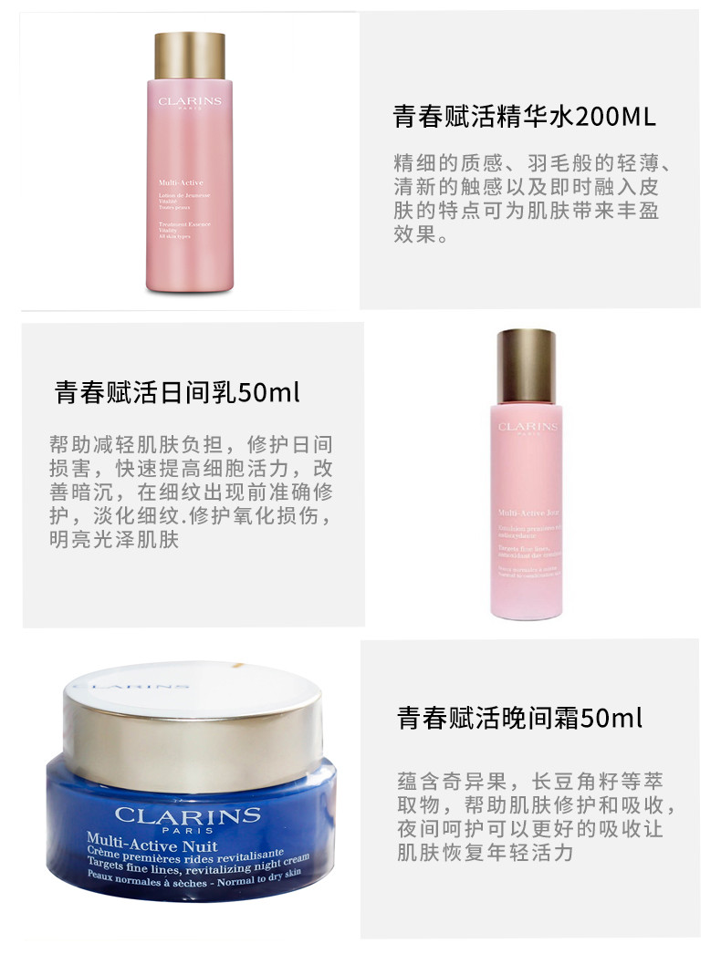CLARINS/娇韵诗 青春赋活套装(水200ML+乳液50ML+晚霜50ML)