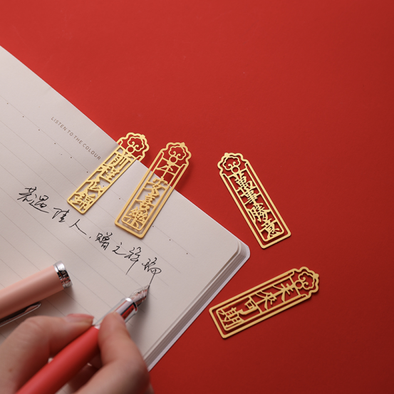 金属镂空励志文字书签礼品 中国古风文艺书签夹 镂空的金属文字 带来美好的寓意 多种款式祝福可以选择 高颜值好寓意好看又实用