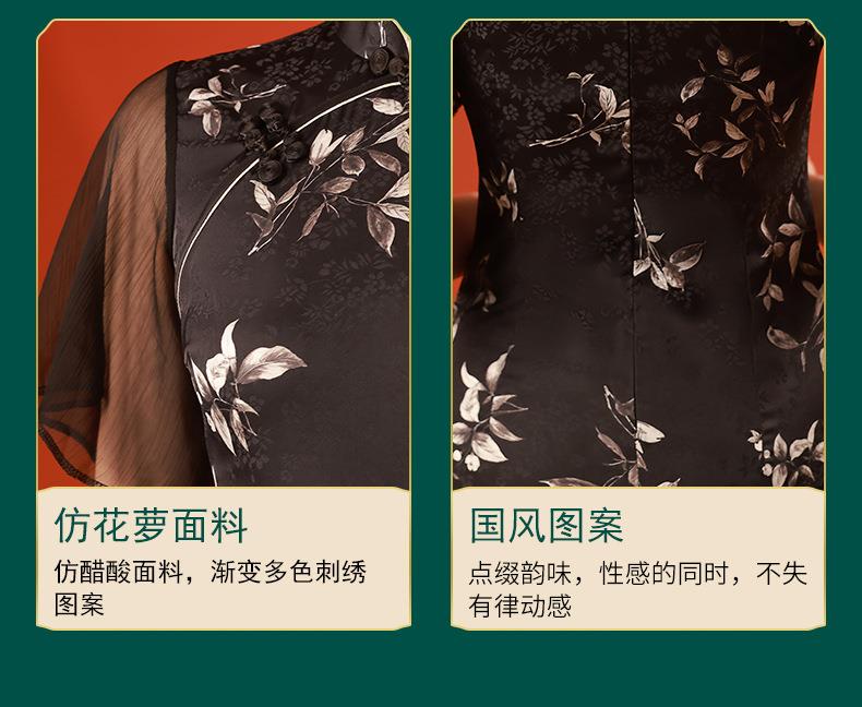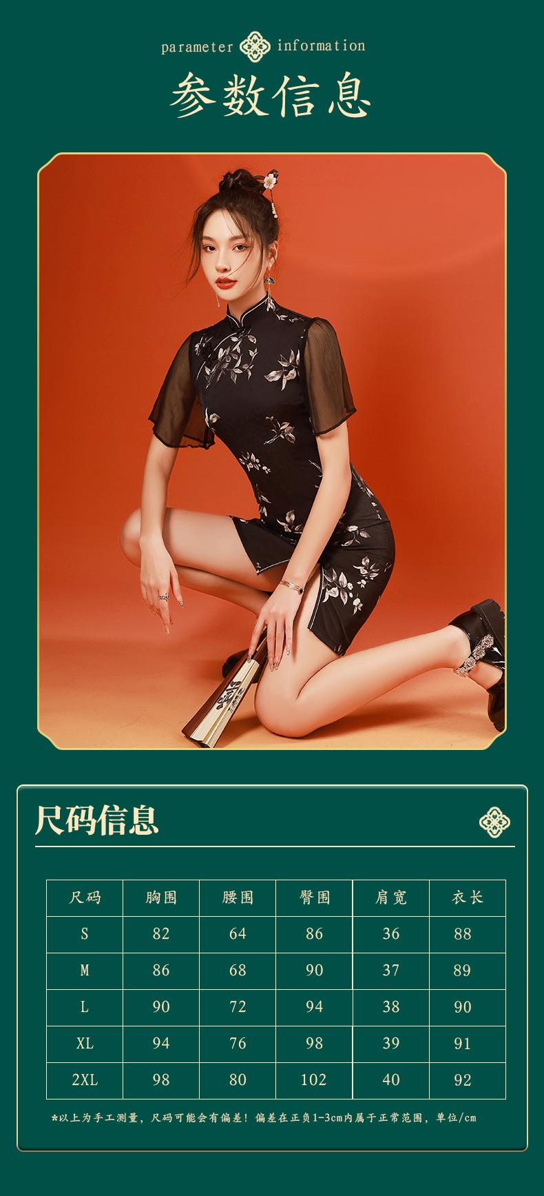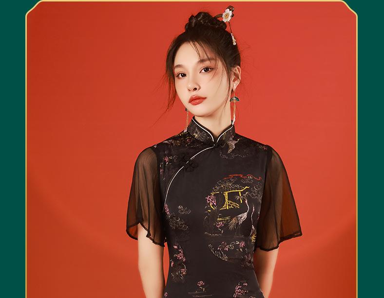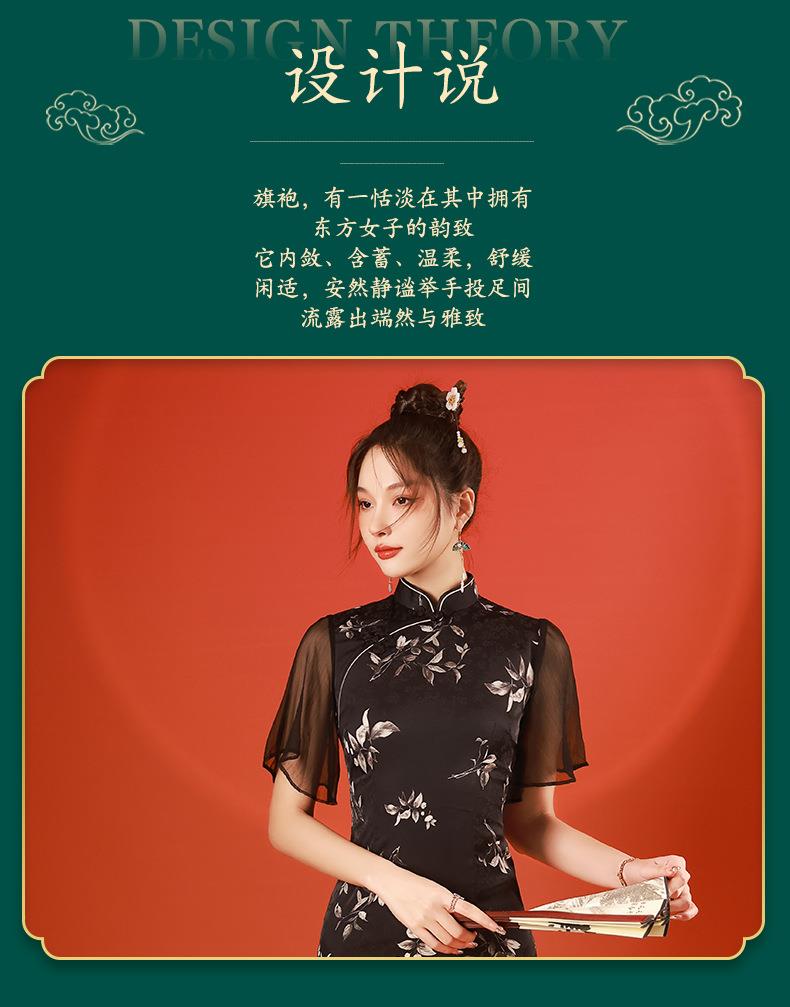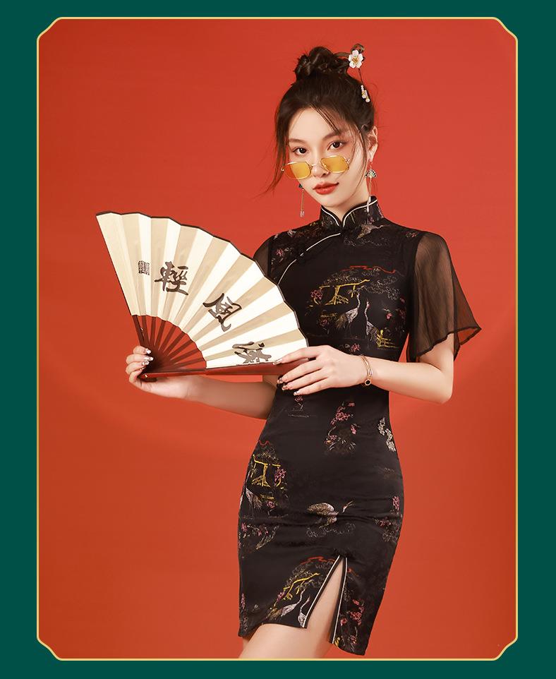2023春夏新款飞飞袖前开叉短款旗袍连衣裙现代版改良旗袍中国风